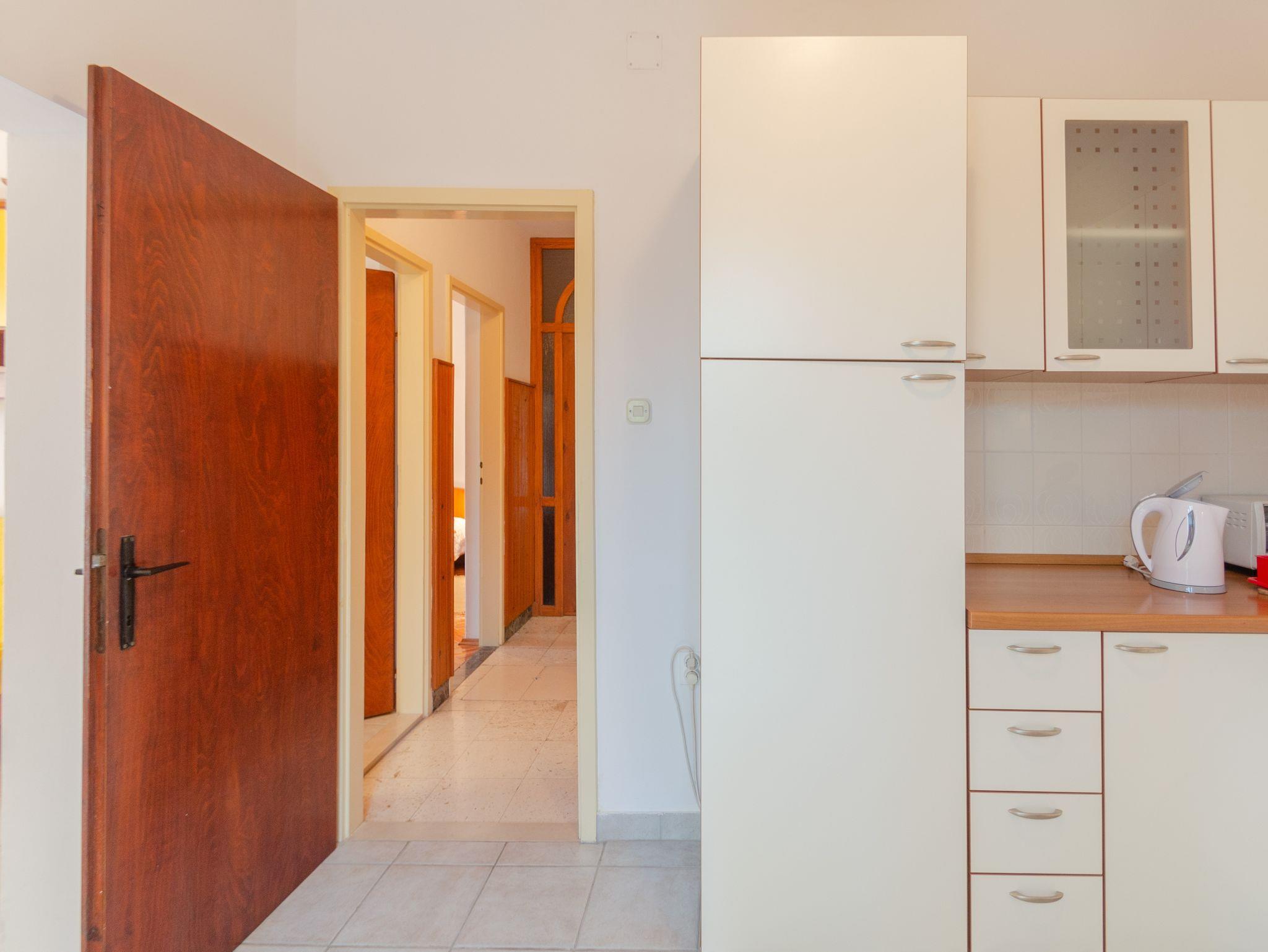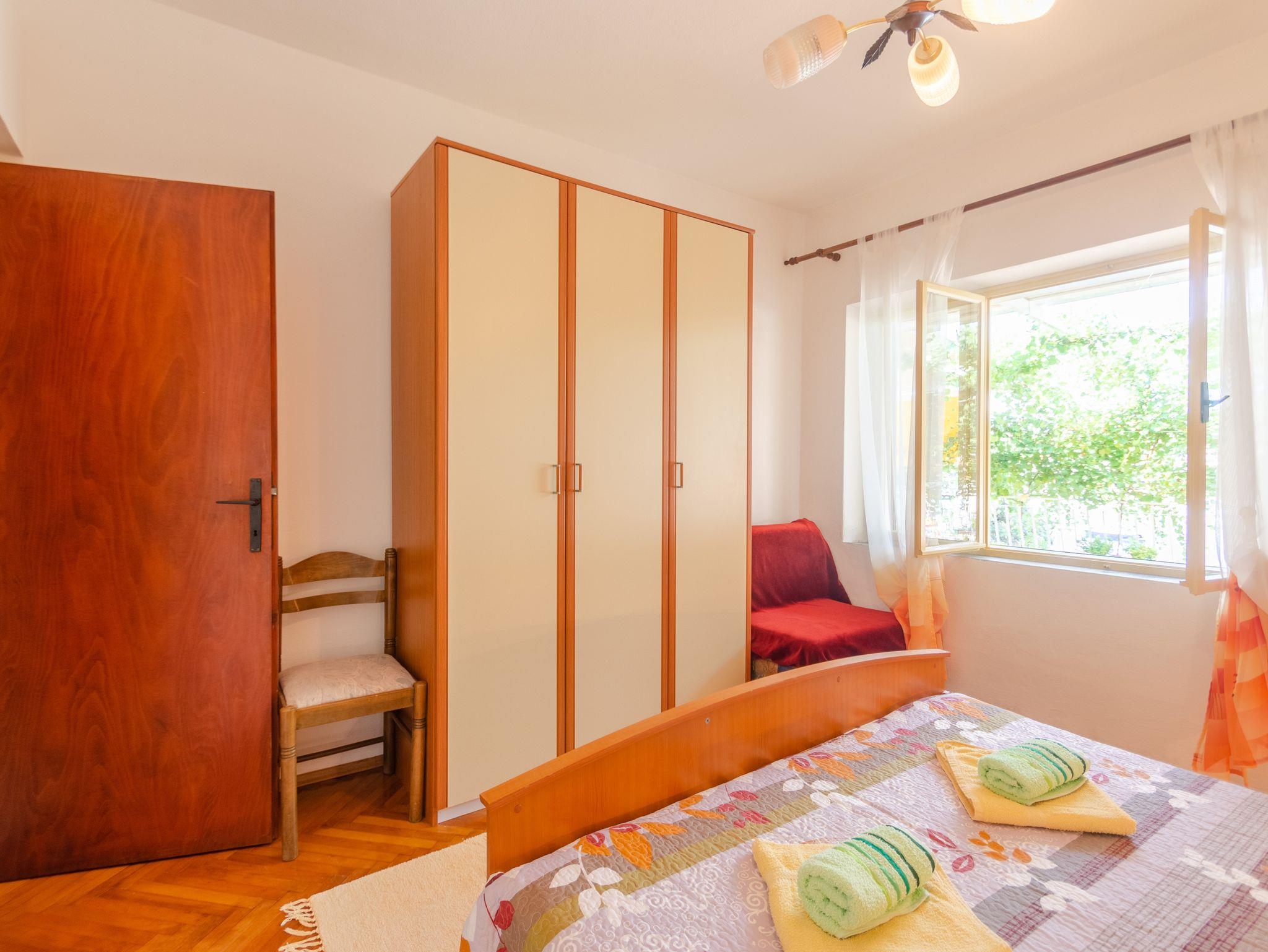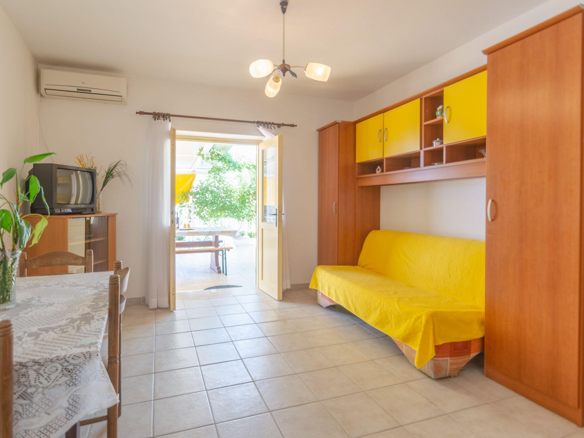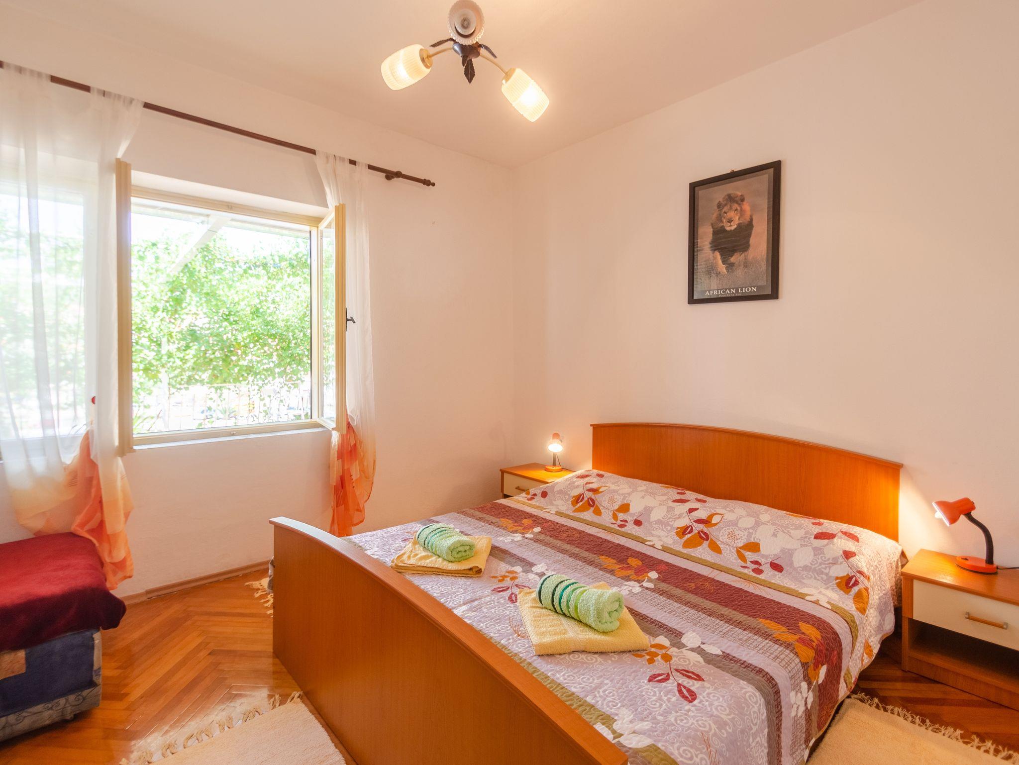 Ferienwohnung bietet Platz für 2 Gäste. Die Betten sind in Schlafzimmern, die es 1 gibt, innerhalb einer Gesamtfläche von 41m2, angeordnet. Das Apartment bietet Meerblick. Es ist erlaubt, Speisen auf dem Gemeinschafts-Grill vorzubereiten. Die reservierte Unterkunftseinheit verfügt über einen gemeinsame Terrasse. IM PREIS INBEGRIFFEN: Kurtaxe, Endreinigung, Parkplatz, Internet, Kinderbett, Bügeleisen, Bügelbrett, Föhn, tragbarer Grill, 2 Kinderbettchen (im Preis enthalten). VERBINDLICHE ZUSÄTZLICHE KOSTEN: Aufzahlung für Kurzaufenthalte (prozentualer Zuschlag pro Nächtigungsanzahl: 30% - 1, 20% - 2, 10% - 3). UNVERBINDLICHE ZUSÄTZLICHE KOSTEN: Klimatisierung (5,00 € pro Nacht), Wäschewaschen (5,00 € Waschen), Bootsanlegeplatz (5,00 € pro Nacht). Die Verfügbarkeit zusätzlicher Dienstleistungen in Ihrem reservierten Termin und die Preise derselben (falls nicht aufgeführt) müssen im Voraus überprüft werden. Zusätzliche Dienstleistungen die in der Zahlungsaufforderung nicht aufgeführt sind werden direkt beim Vermieter bezahlt, angenommen der Gast nutzt auch diese. Ermäßigung auf den Grundpreis: Gratistag 14=13 (bei einem Aufenthalt von 14 Tagen oder mehr erhalten Sie einen Gratistag für den Aufenthalt bis 31.12.26).