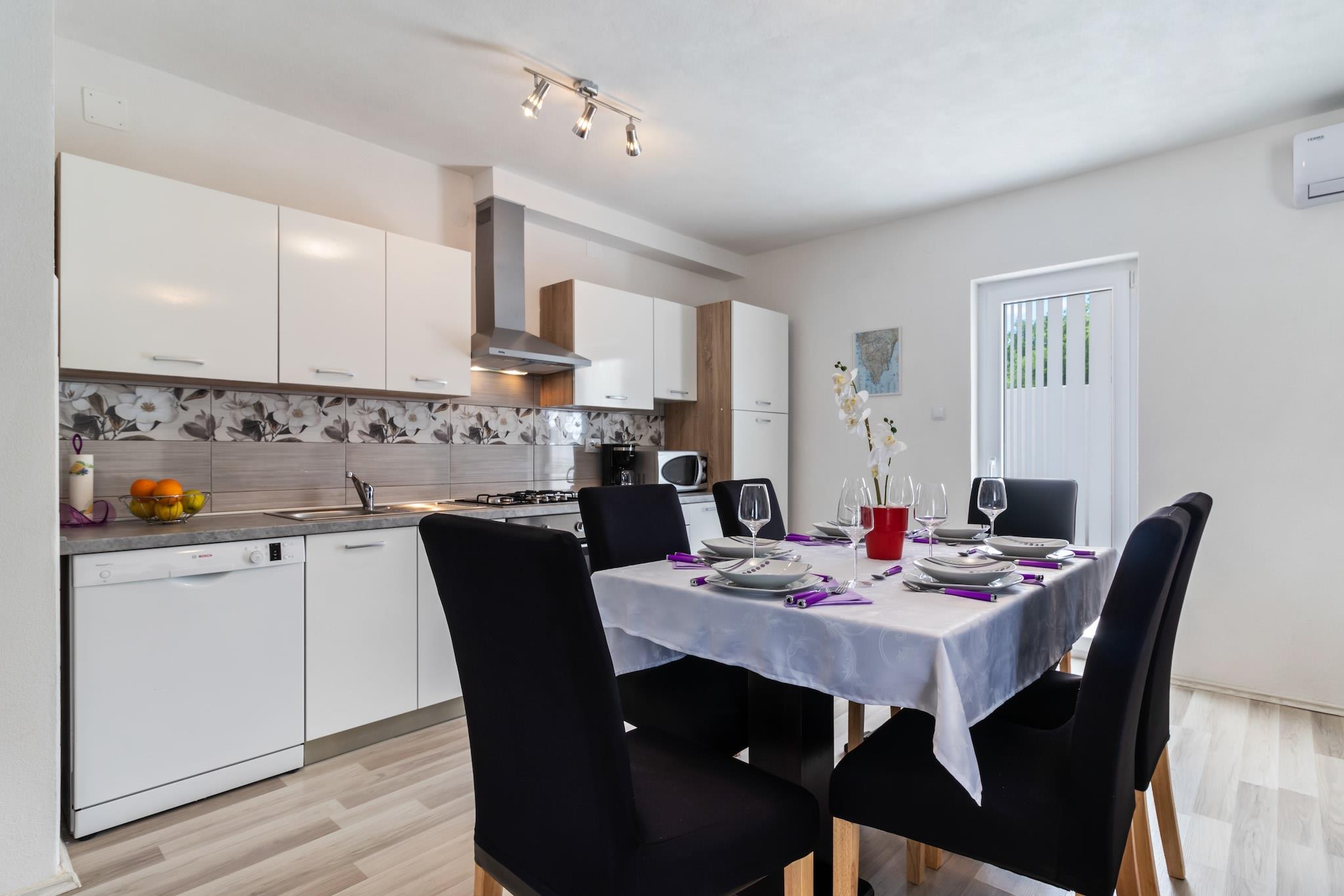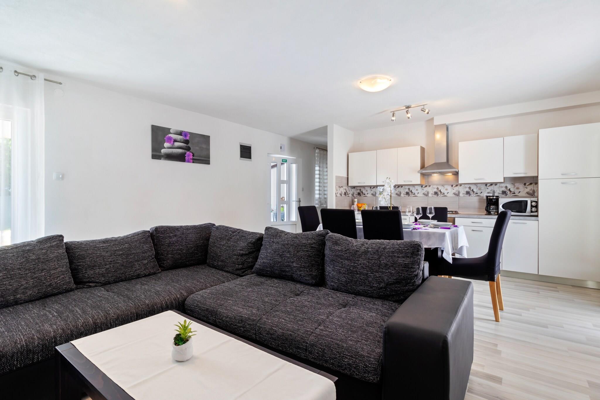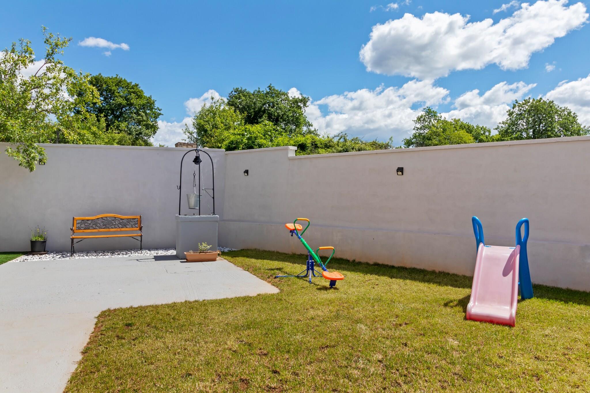 Dette feriehus til otte gæster tilbyder en afslappende ferie i Smoljanci, kun 100 meter fra byens centrum og 20 km fra havet. Dette feriested er designet til komfort og bekvemmelighed og tilbyder gratis WiFi, en privat swimmingpool og en trækulsgrill på terrassen, hvilket gør det ideelt for familier eller grupper. Uanset om du nyder de fredelige omgivelser eller udforsker nærliggende attraktioner, garanterer dette hjem et mindeværdigt ophold. Indenfor byder stueetagen på en rummelig stue og spisestue med en dobbelt sovesofa, TV og høj stol, samt et fuldt udstyret åbent køkken med kogende vandhane, komfur, kaffemaskine, mikrobølgeovn, opvaskemaskine og køleskab med fryser. Første sal indeholder tre soveværelser med dobbeltsenge og et badeværelse med bruser, håndvask og toilet, mens et ekstra badeværelse i stueetagen tilbyder ekstra bekvemmelighed med en vaskemaskine. Gæsterne kan slappe af i den private have med havemøbler og en gynge, perfekt til afslapning. I nærheden byder Dvigrad på fascinerende middelalderruiner, mens den middelalderlige temapark Sanc. Michael tilbyder interaktive historiske oplevelser. Til spisning serverer Villa Lav lækre lokale retter i charmerende omgivelser. Uanset om du udforsker historie eller nyder autentiske smagsoplevelser, er dette feriehus det perfekte tilflugtssted.