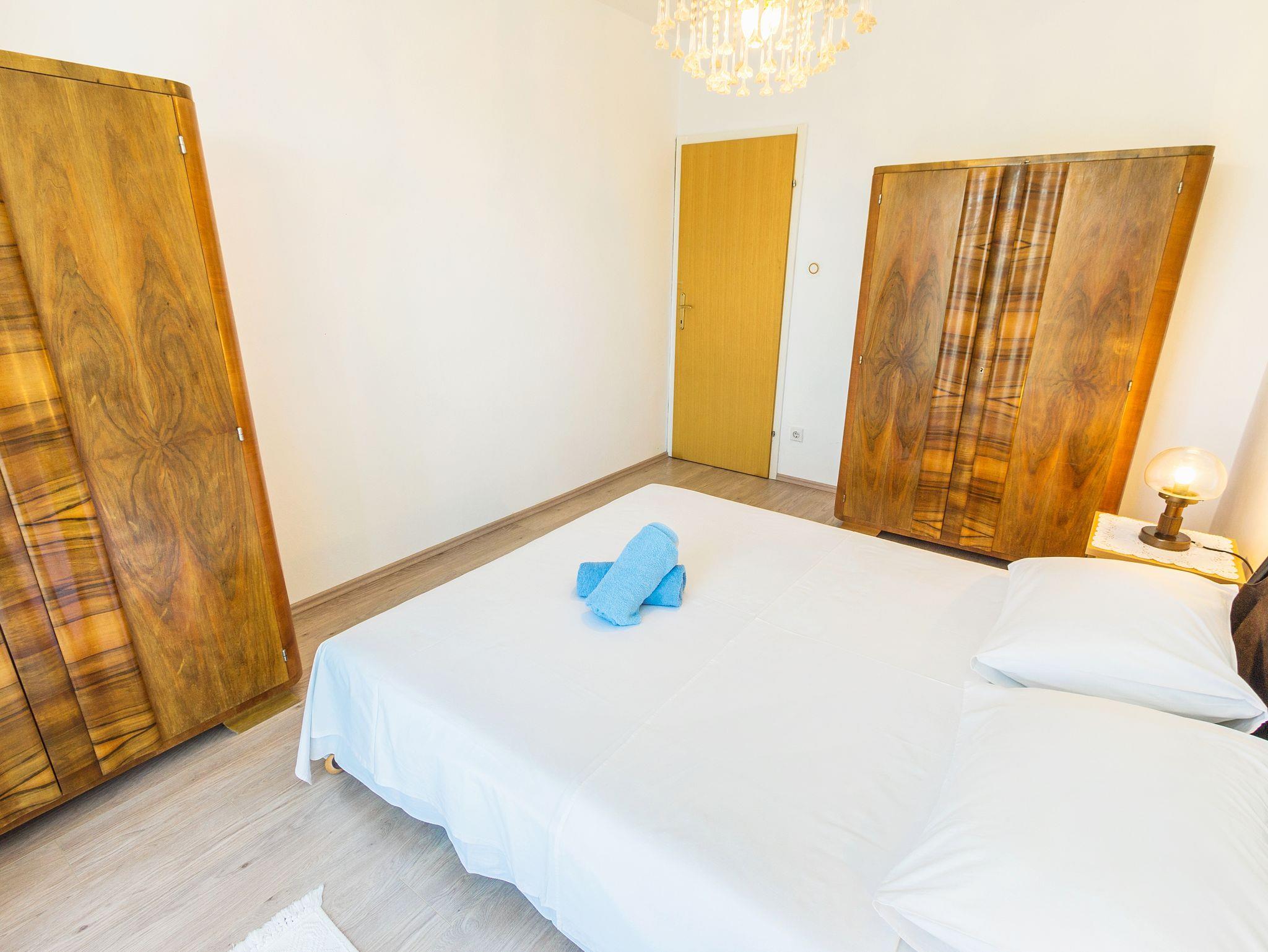 Ferienwohnung bietet Platz für 4 Gäste. Die Betten sind in Schlafzimmern, die es 2 gibt, innerhalb einer Gesamtfläche von 73m2, angeordnet. Die Gäste haben einen eigenen Balkon zur Verfügung, auf der sie in warmen Sommernächten genießen können. Das Apartment bietet Meerblick. Es ist erlaubt, Speisen auf dem Gemeinschafts-Grill vorzubereiten. IM PREIS INBEGRIFFEN: Kurtaxe, Endreinigung, Klimatisierung, Parkplatz, Internet, Bügeleisen, Bügelbrett, Föhn. VERBINDLICHE ZUSÄTZLICHE KOSTEN: Aufzahlung für Kurzaufenthalte (prozentualer Zuschlag pro Nächtigungsanzahl: 30% - 1, 20% - 2, 10% - 3). UNVERBINDLICHE ZUSÄTZLICHE KOSTEN: Wäschewaschen (5,00 € Waschen). Die Verfügbarkeit zusätzlicher Dienstleistungen in Ihrem reservierten Termin und die Preise derselben (falls nicht aufgeführt) müssen im Voraus überprüft werden. Zusätzliche Dienstleistungen die in der Zahlungsaufforderung nicht aufgeführt sind werden direkt beim Vermieter bezahlt, angenommen der Gast nutzt auch diese. Ermäßigung auf den Grundpreis: Gratistag 14=13 (bei einem Aufenthalt von 14 Tagen oder mehr erhalten Sie einen Gratistag für den Aufenthalt bis 31.12.26).