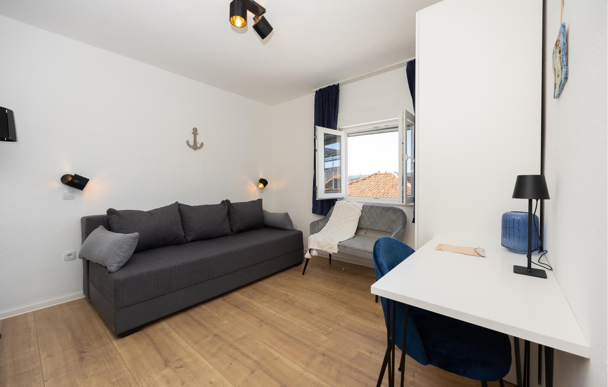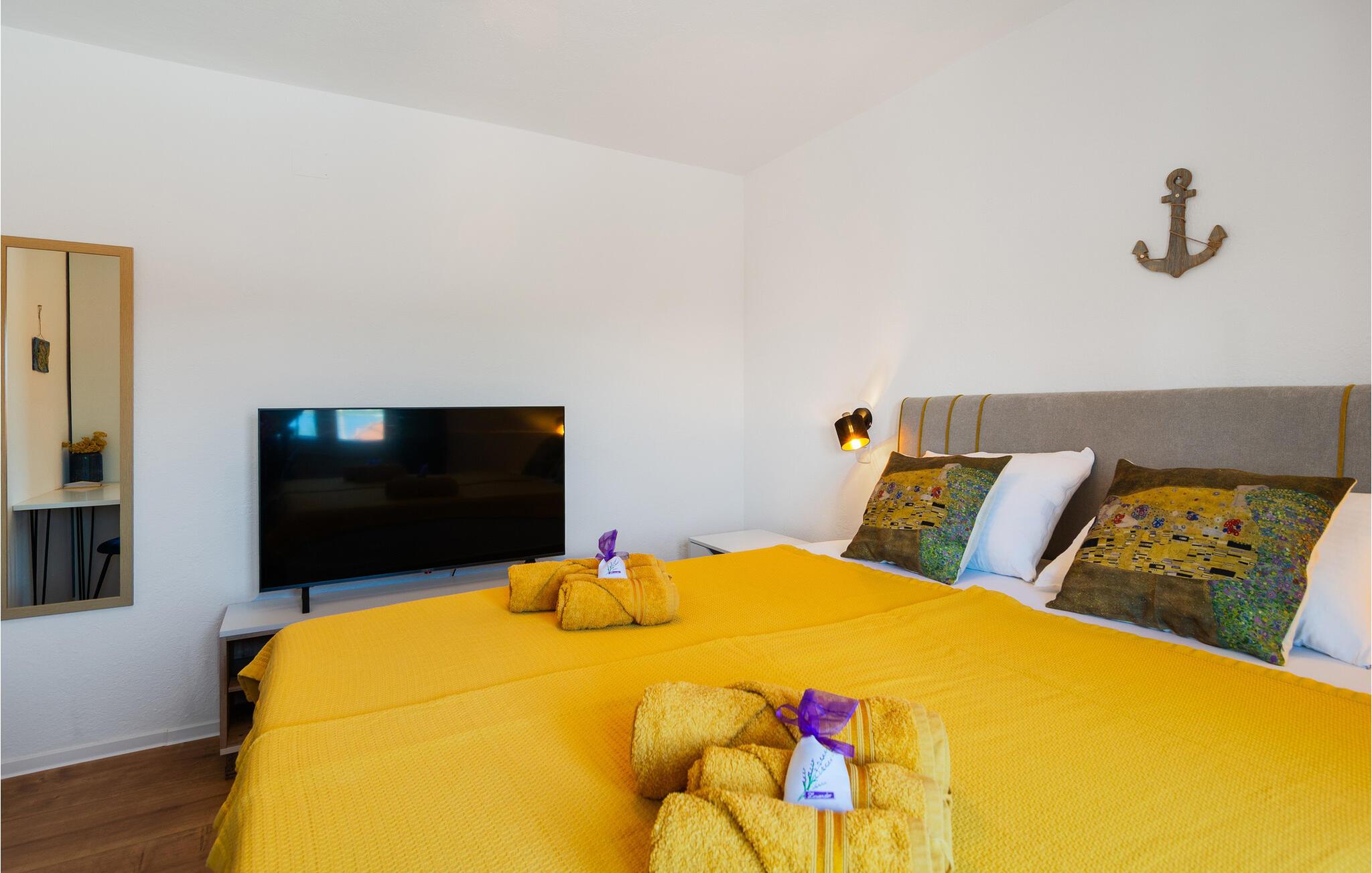 Dette smagfuldt indrettede lejlighed i Necujam har alt, hvad I behøver for en afslappende ferie. Den hyggelige atmosfære og gennemførte indretning gør det til det ideelle tilflugtssted. Forkæl jer selv med en tur i den private jacuzzi, mens I nyder den betagende udsigt over havet og det omkringliggende landskab. Lejlighedens beliggenhed tæt på stranden, butikker, caféer og restauranter gør det nemt at tilpasse ferien efter jeres ønsker.