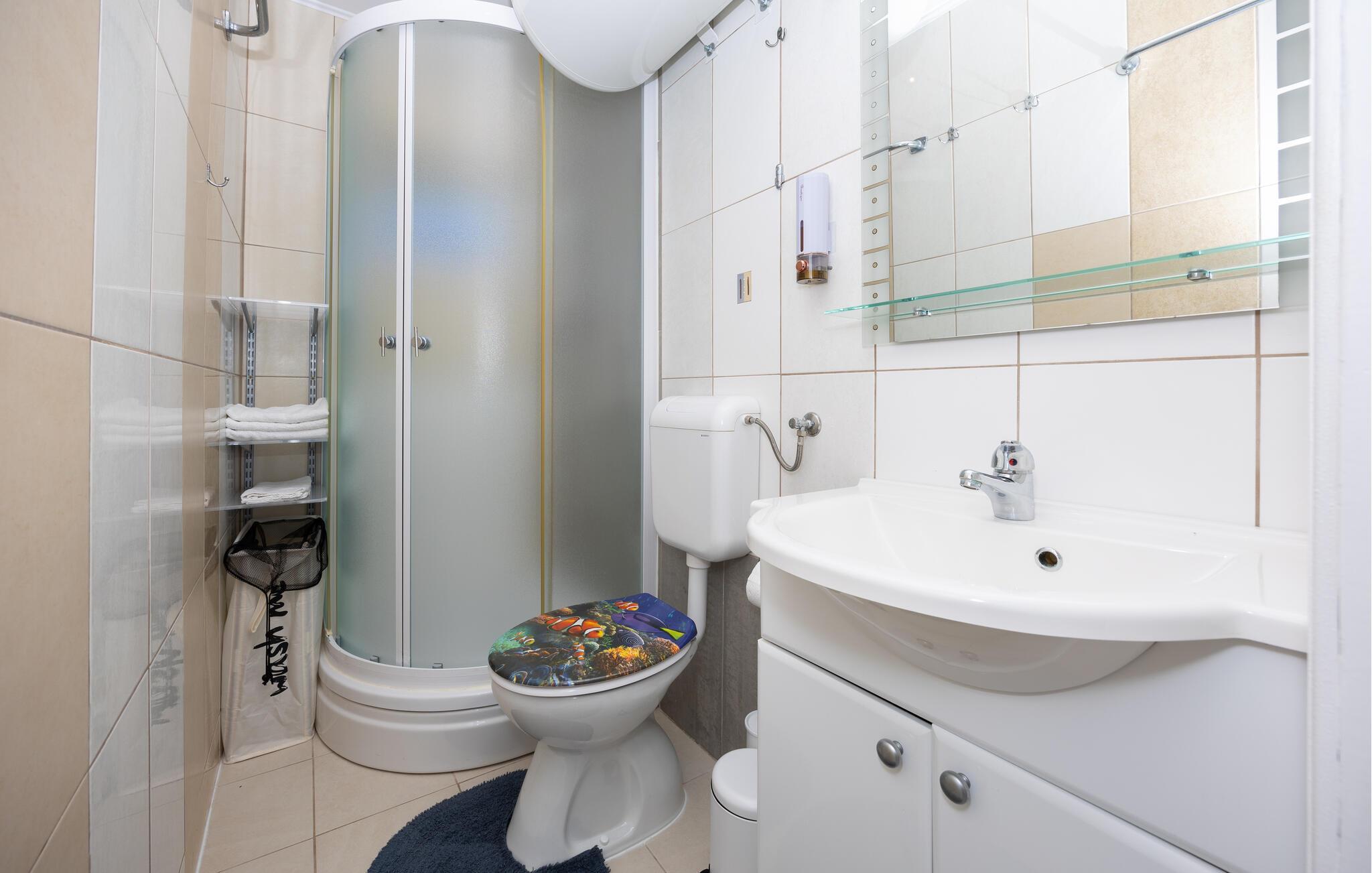Badeværelse 3m2 (nr. 1) - WC. Varmt og koldt vand. Håndbruser