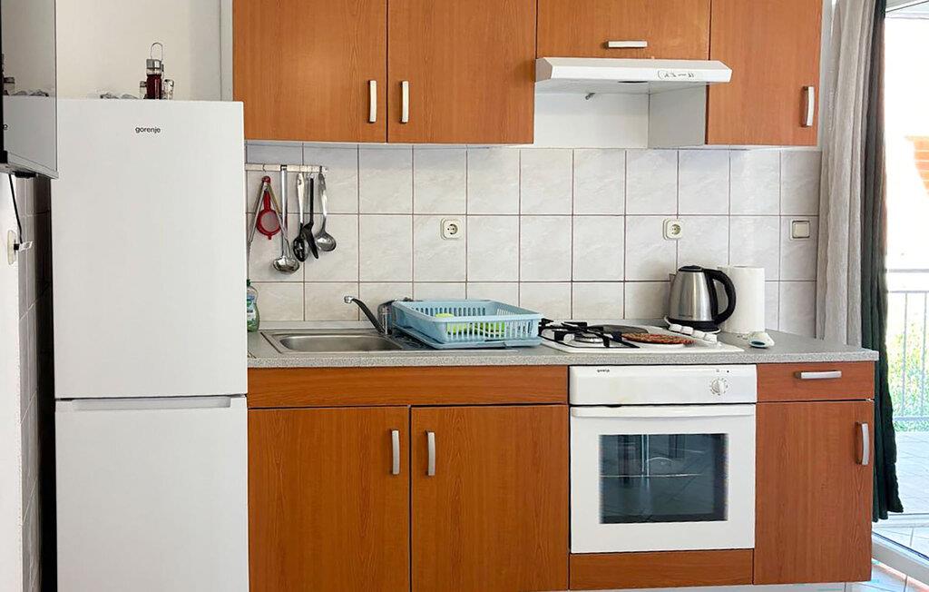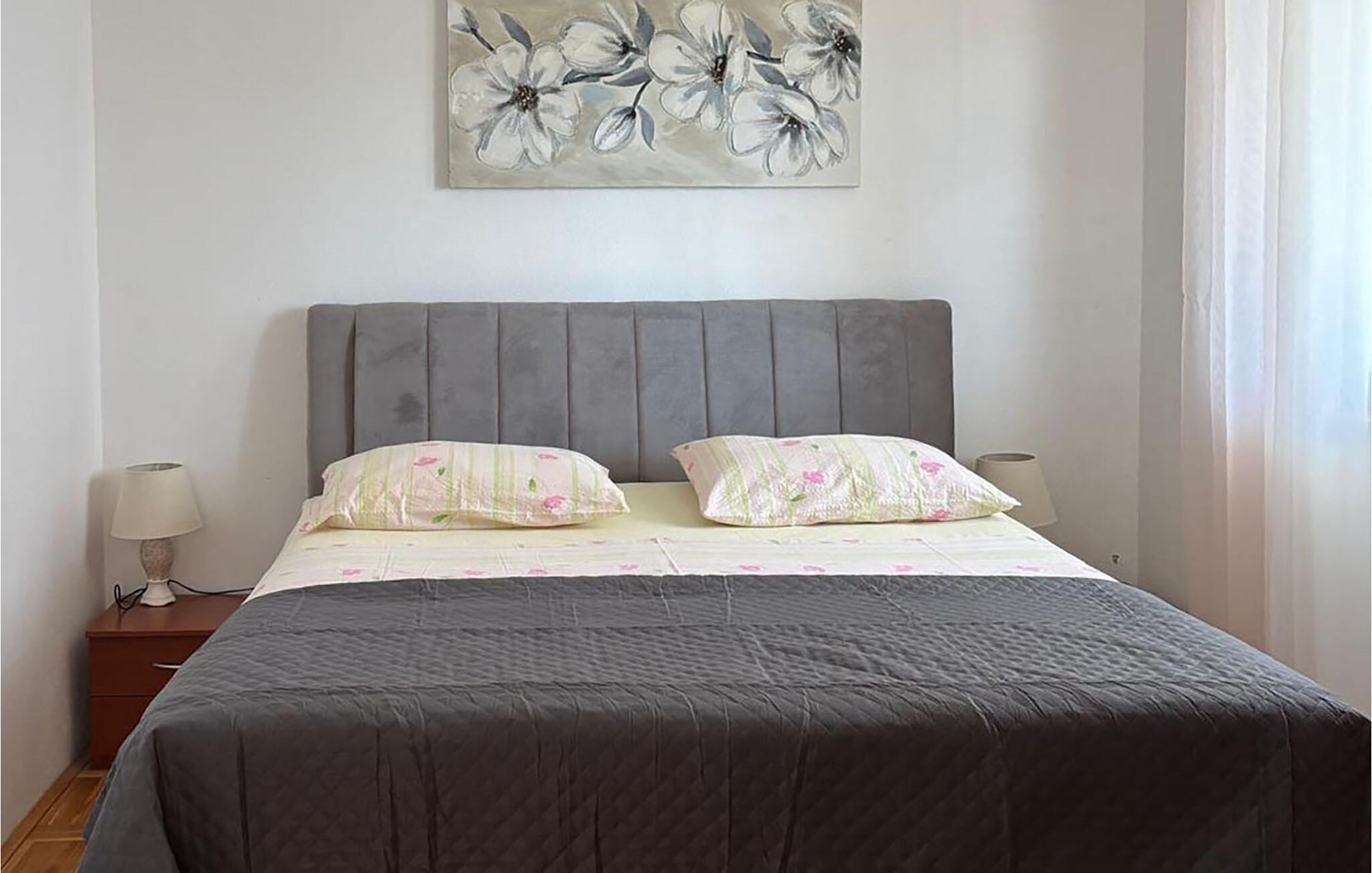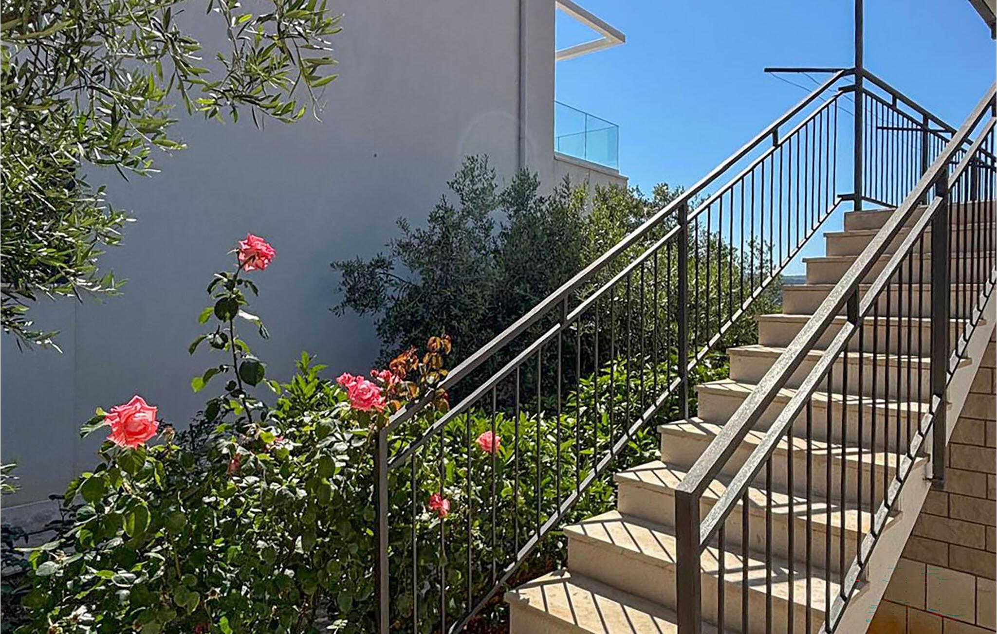 Kun få skridt fra en smuk stenstrand kan I finde jer selv til rette i denne lyse og praktisk indrettede lejlighed. Tilbered jeres yndlingsmåltider sammen, planlæg jeres udflugter til afslappede måltider og brug spisebordet om aftenen til at afslutte dagen med et brætspil.