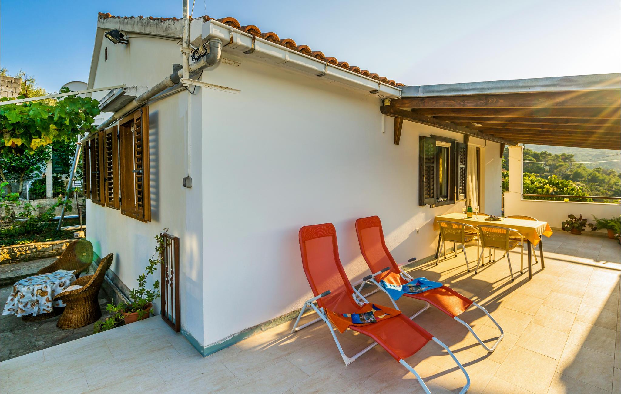 Denne praktisk og enkelt indrettede ferielejlighed ligger i en familieejendom i den lille by Necujam på øen Solta. Lejligheden ligger på første sal og rummer to soveværelser, et badeværelse og en stue i kombination med køkkenet. Der er også en dejlig terrasse hvorfra der er havudsigt. Det tager kun få minutter at gå ned til den nærmeste strand. Øen Solta er et rigtigt ferieparadis med talrige kiesstrande og det krystalklare og lune Adriaterhav. Tag den gode færgeforbindelse fra øen til den interessante ø Split og fordyb jer i de mange seværdigheder og former for underholdning for alle aldersklasser, som byen er kendt for.