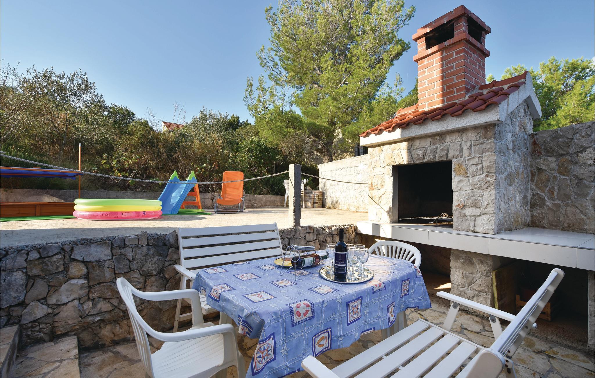 Nyd den herlige panoramaudsigt over havet fra dette feriehus der ligger i Rogac på øen Šolta. I huset er der to lejligheder forbundet med udendørs trapper. Ideel til to familier, der gerne vil holde ferie sammen men også være hver for sig. Den store terrasse i stueplan gør det muligt at sidde sammen i hyggeligt samvær på de lune sommeraftner. Foran huset er en plateaustrand og der er talrige kiesstrande at vælge mellem i omegnen. På solskinsøen Šolta er der alle muligheder for at holde en eventyrferie, eller en fredelig familieferie, der er valg for alle.