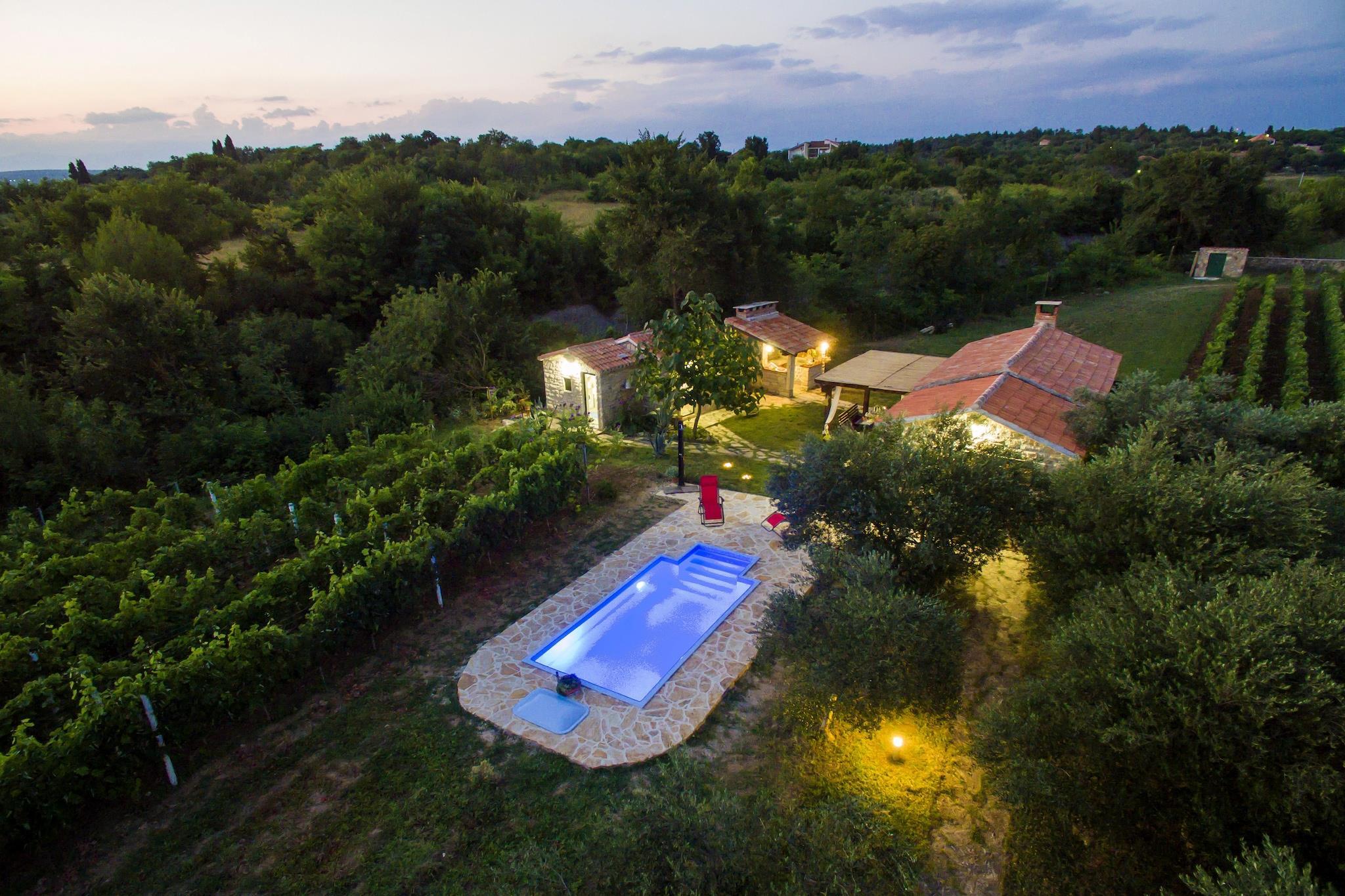 Dit sommerhus ligger i en lille landsby kaldet Sopot. Omgivet af alle sider med intakt natur giver det en stressfri ferie væk fra turistmængderne, men ikke langt fra kysten. Det tager kun en kort 15 minutters kørsel til Adriaterhavet. Denne charmerende indkvartering ligger på en stor indhegnet ejendom på 4000 m2, lige ved skov og vinmarker. Nybygget og inspireret af traditionel dalmatisk arkitektur giver det en varm velkomst. Fritidsrummet indeholder en rustikt indrettet stue / spisestue, et fuldt udstyret køkken og et soveværelse med et badeværelse ved siden af det i gæstehuset. Soveværelset er udstyret med en dobbeltseng, et fladskærms-tv og aircondition. Skydedøre forbinder huset med en charmerende overdækket terrasse, som omfatter en sten grill og en privat swimmingpool, hvor du kan nyde din families familie og venner. Inden for 45 minutters kørsel er du i stand til at besøge nationalparken Krka-vandfald, det kroatiske vigtigste klatringscenter-Paklenica og den gamle by Zadar. Derefter arrangeres daglige udflugter til en anden nationalpark, Kornati-øerne. Mens du har fuldstændig privatliv, er restauranter og en købmand i nærheden, som også gør det nemt at nyde din ferie.