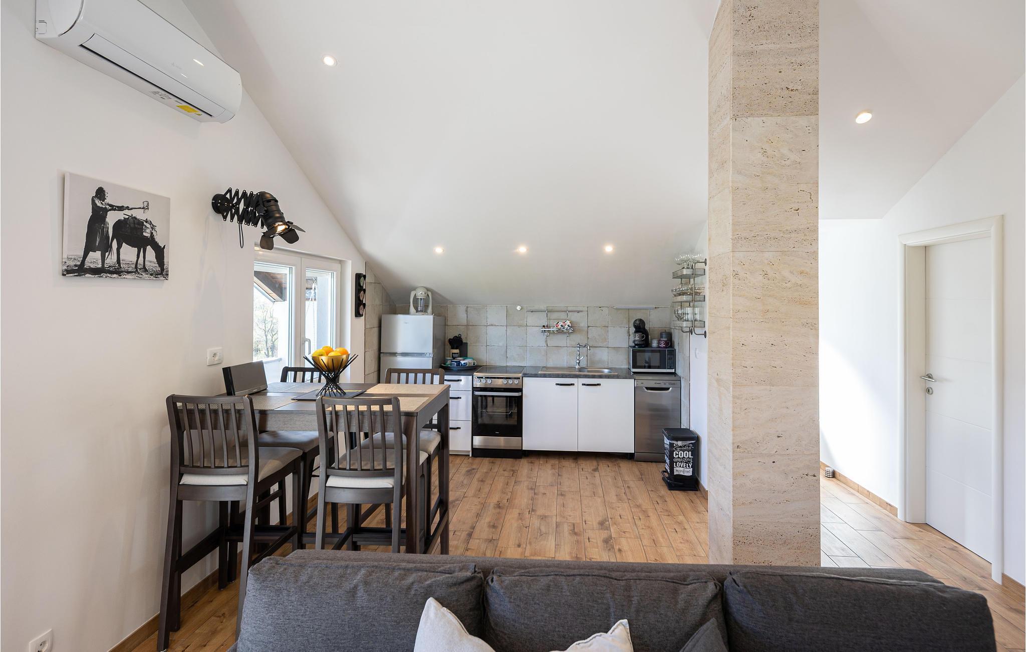 Velkommen til dette hyggelige feriehus, som består af to fuldt udstyrede lejligheder, optimalt til en ferie med en familie af venner. Huset vil opfylde alle jeres ønsker og lægger op til at slappe af. Magi sammen i køkkenet eller se en underholdende film sammen om aftenen. Om morgenen kan I drikke jeres kaffe på balkonen eller terrassen og nyde udsigten over landskabet.