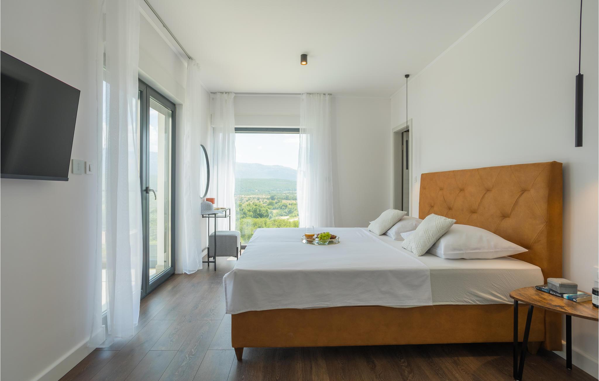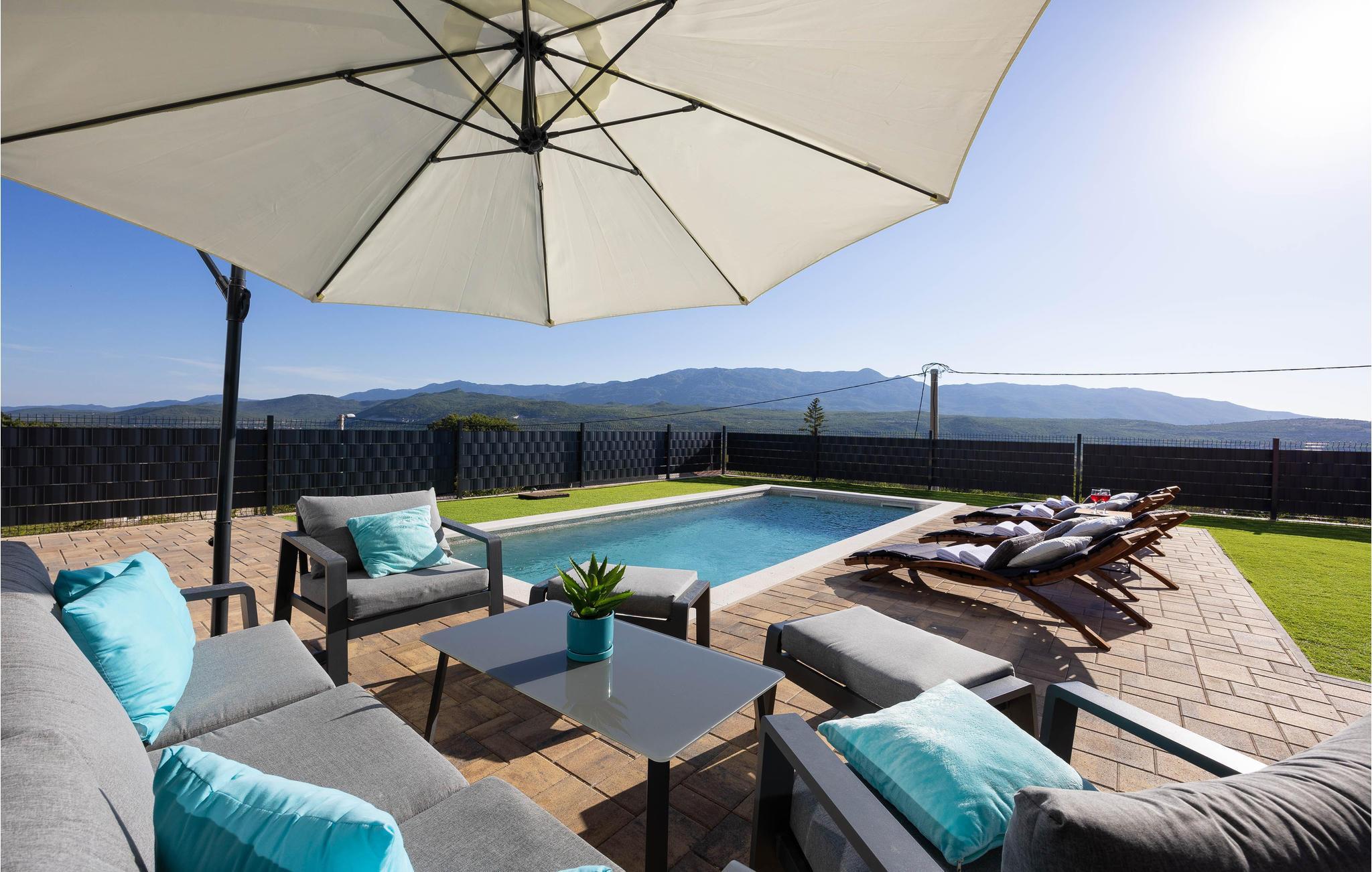 Det idylliske og rolige hus har en fantastisk panoramisk beliggenhed. Her kan I virkelig slappe af og nyde freden og roen og den smukke udsigt over landskabet. Gulv til loft panoramavinduer giver jer mulighed for fuldt ud at nyde udsigten i huset, poolbord og fitnessudstyr sørger for, at I bliver godt underholdt på ferien.