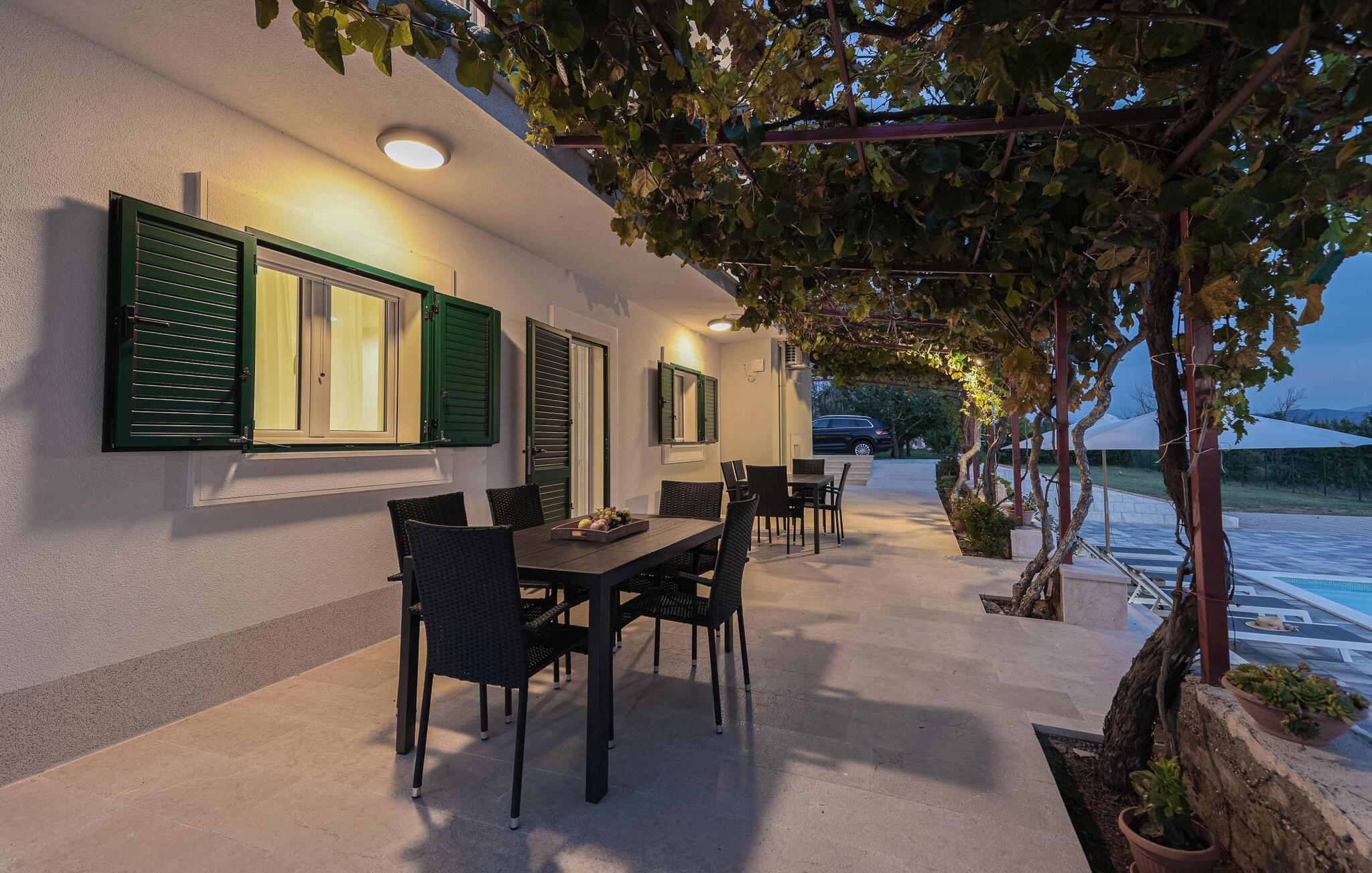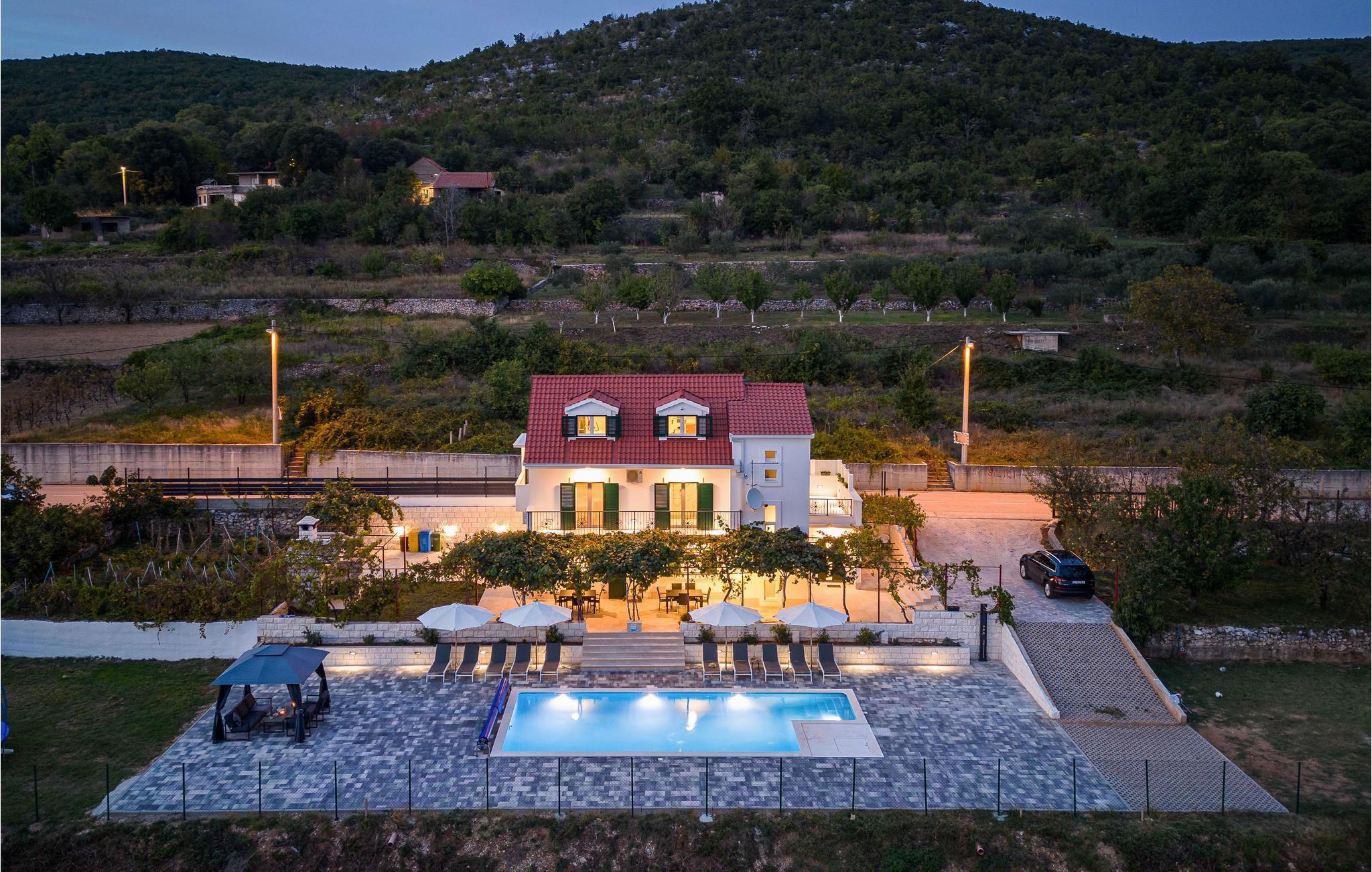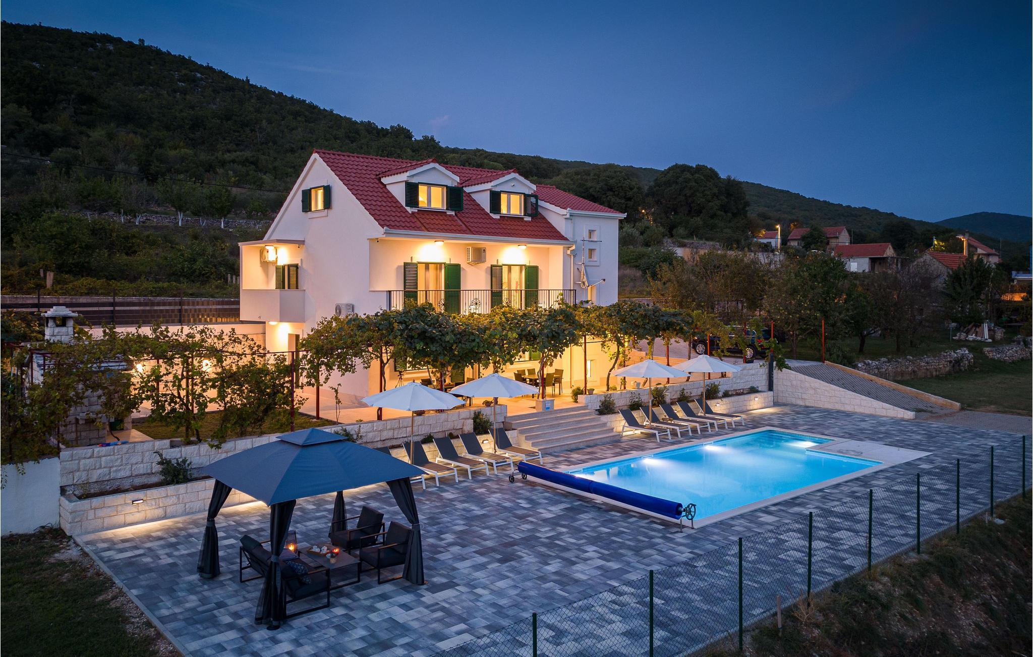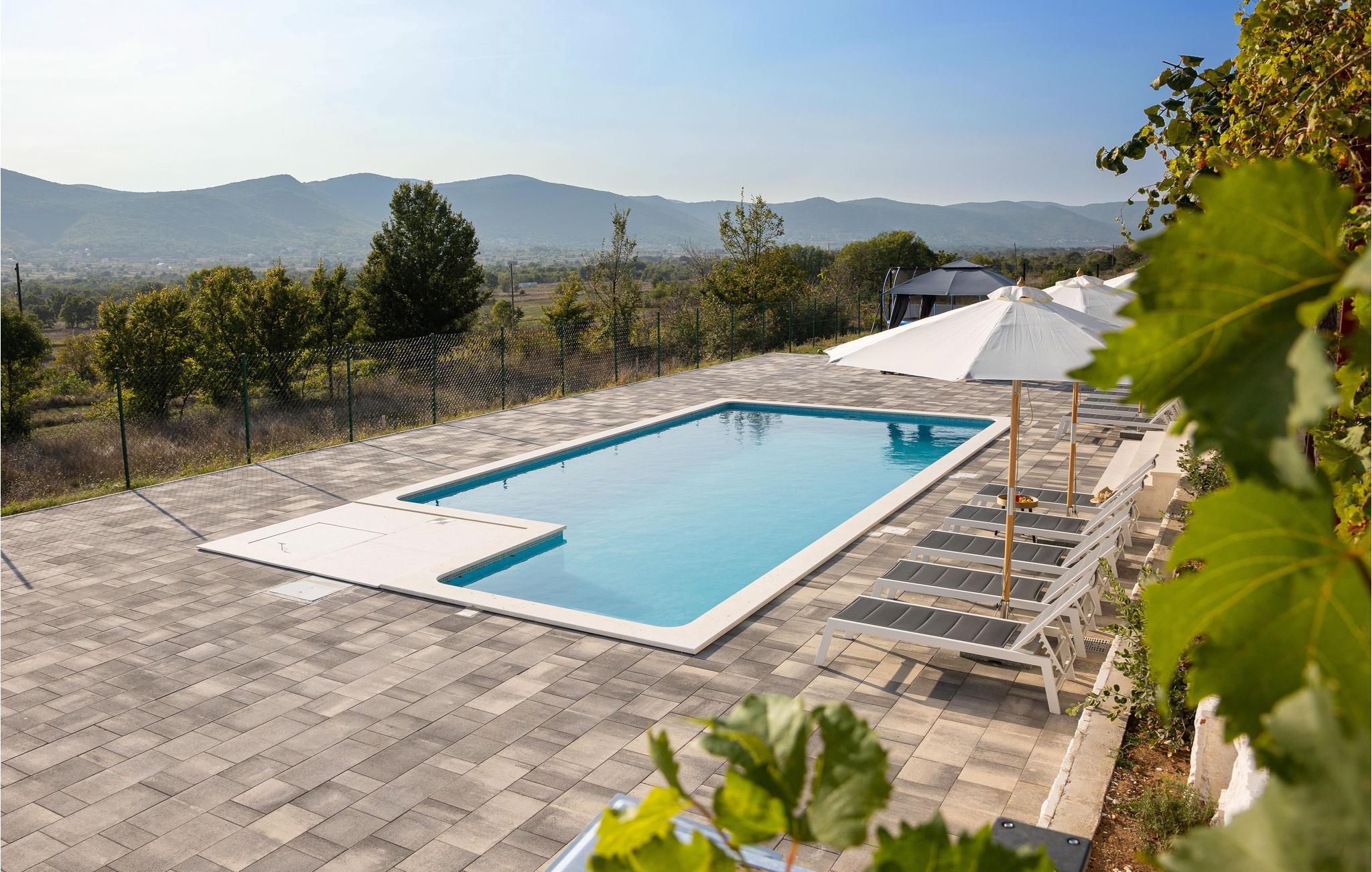 Glæd jer til afslapning, fred og komfort, mens I nyder en fantastisk udsigt over det dalmatiske landskab. Velkommen til dette lyse og smagfuldt indrettede feriehus, der ikke efterlader noget ønske uopfyldt. Komfort er meget vigtigt her og gør det nemt for jer at lægge jeres hektiske hverdag bag jer og blot sætte fødderne op. Stuen, køkkenet og spisestuen kan blive det centrale samlingspunkt for hele gruppen. I kan også forfølge jeres sportsprogram i det private fitnessområde eller have det sjovt med at spille bordfodbold og bordtennis eller tage en dukkert i poolen. Kom sammen på terrasserne til en kølig drink eller små snacks og planlæg jeres kommende ferie.