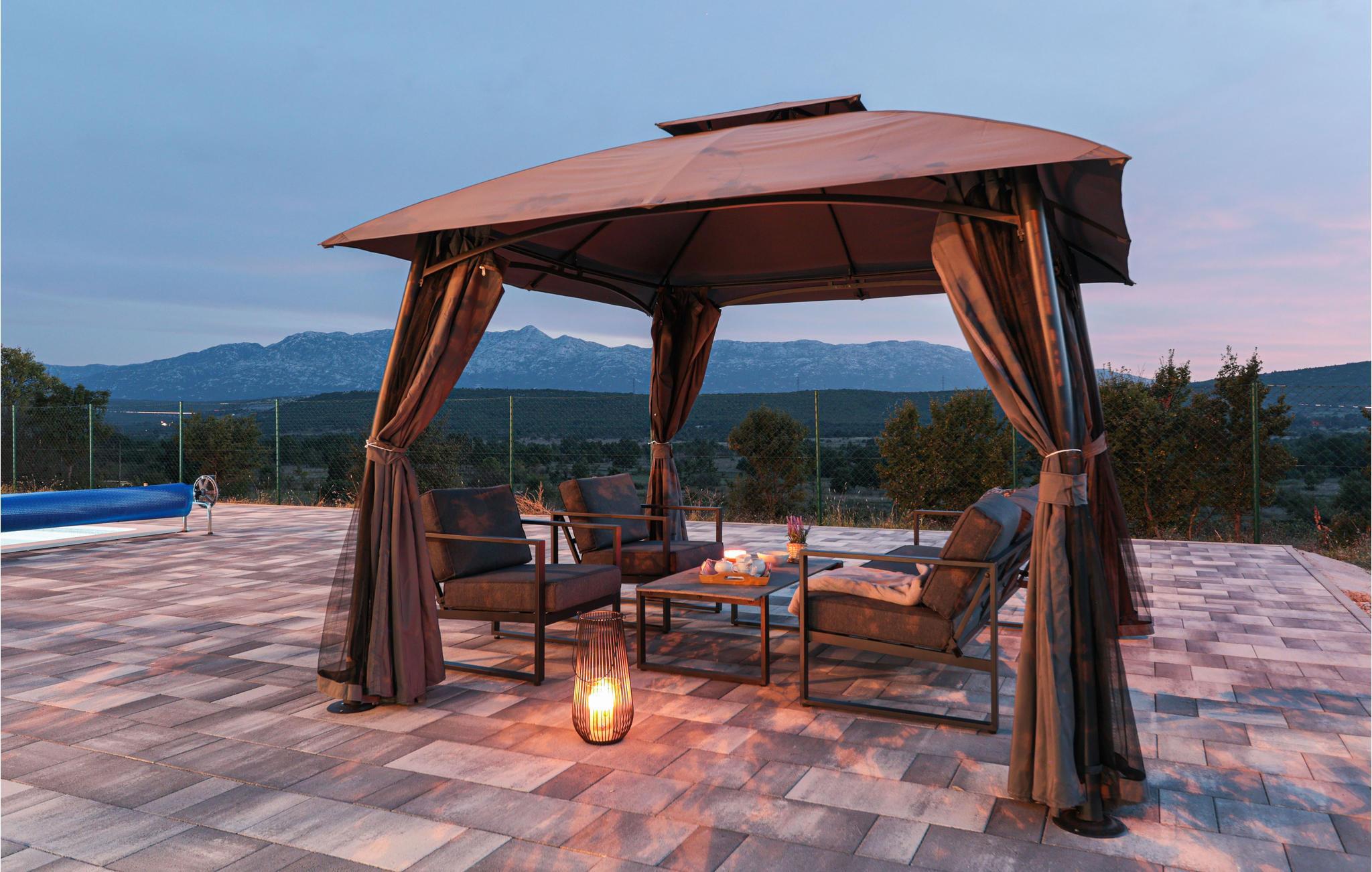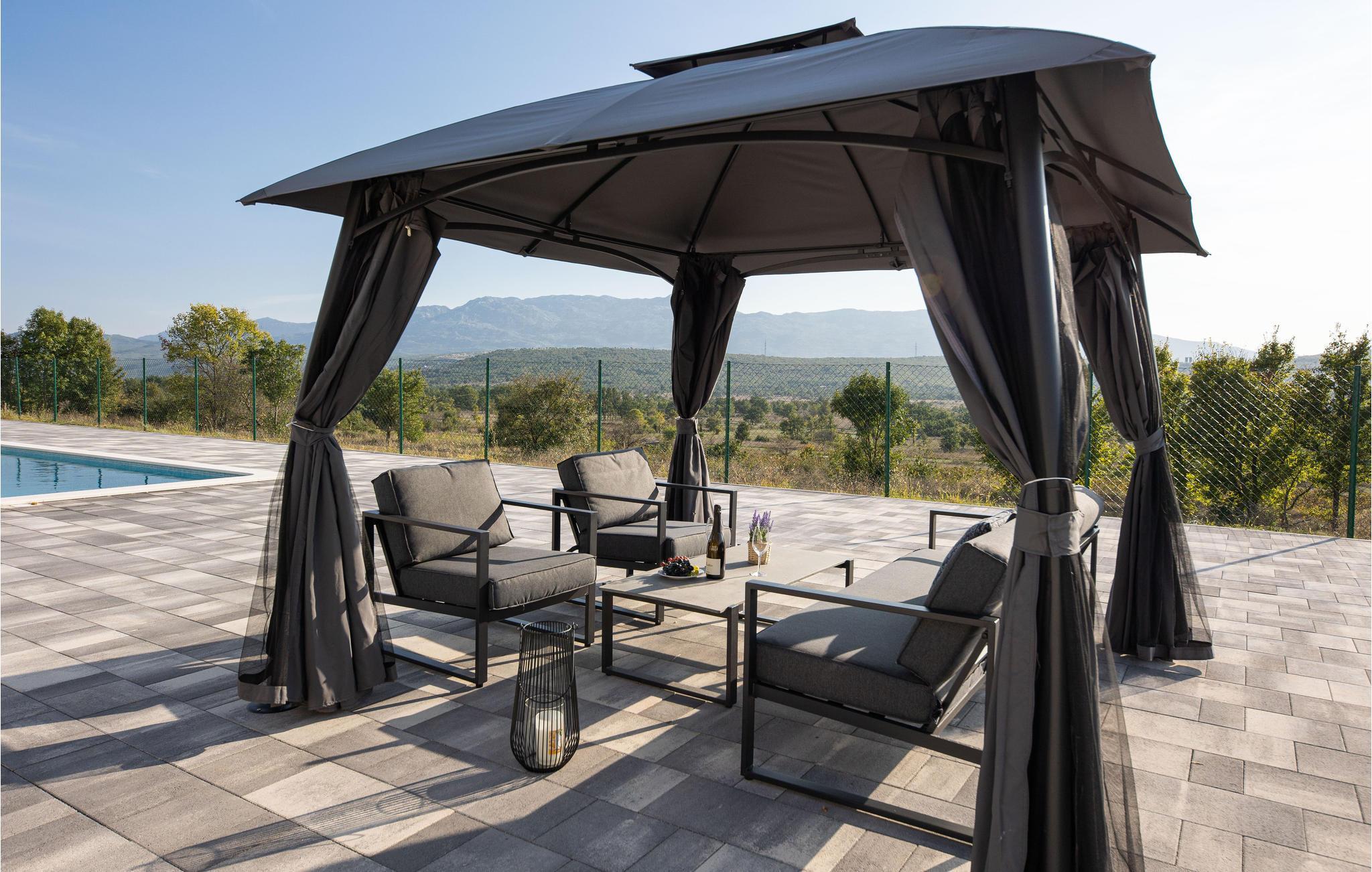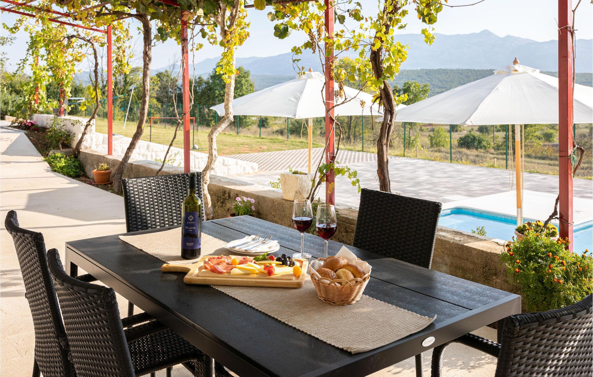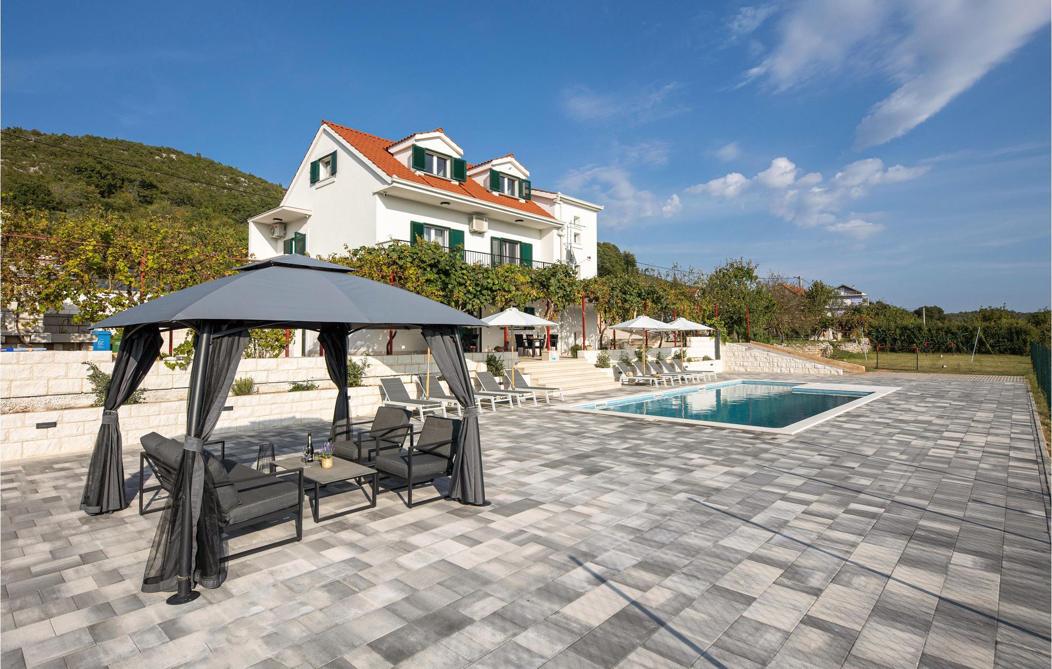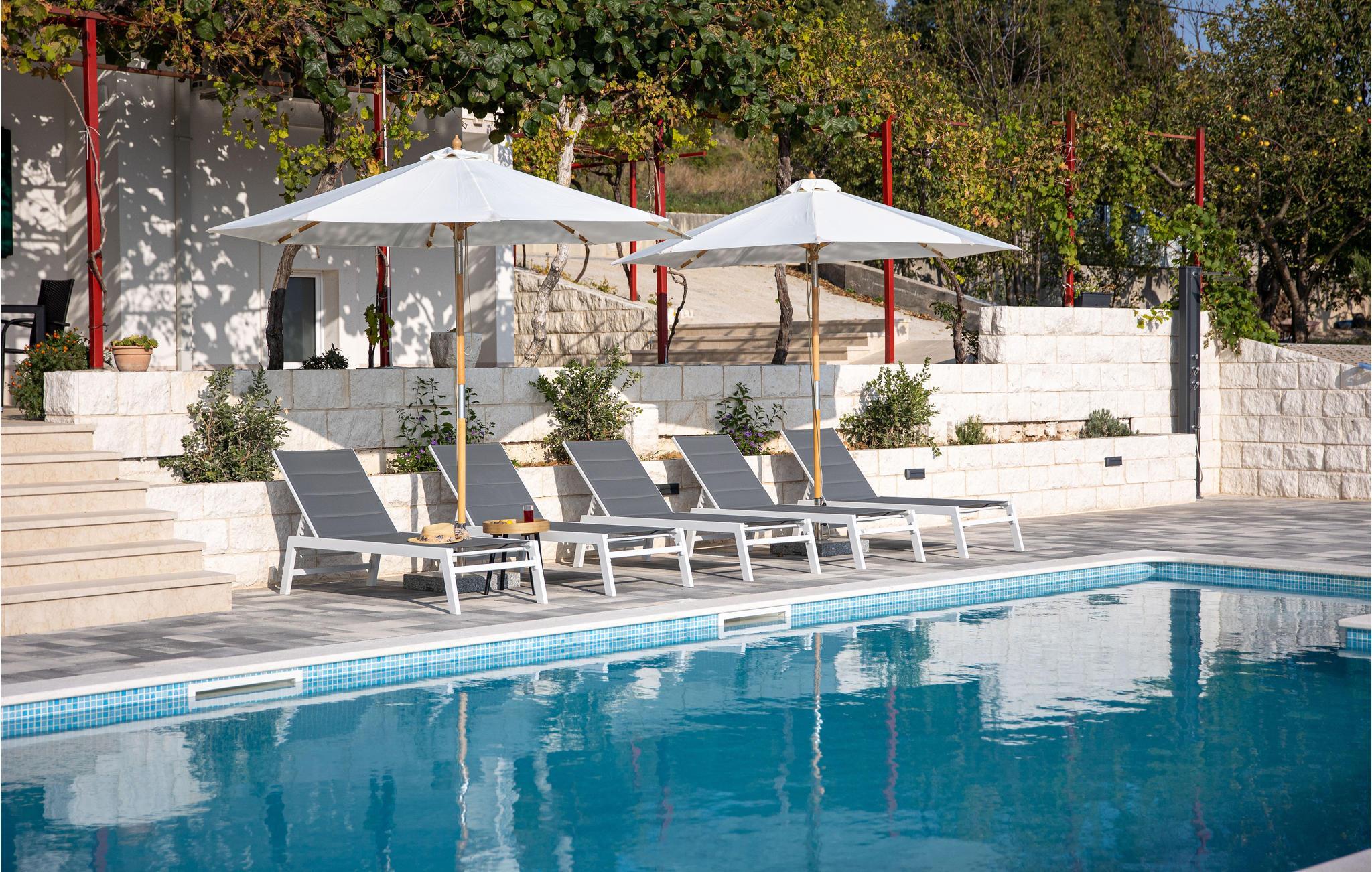Glæd jer til afslapning, fred og komfort, mens I nyder en fantastisk udsigt over det dalmatiske landskab. Velkommen til dette lyse og smagfuldt indrettede feriehus, der ikke efterlader noget ønske uopfyldt. Komfort er meget vigtigt her og gør det nemt for jer at lægge jeres hektiske hverdag bag jer og blot sætte fødderne op. Stuen, køkkenet og spisestuen kan blive det centrale samlingspunkt for hele gruppen. I kan også forfølge jeres sportsprogram i det private fitnessområde eller have det sjovt med at spille bordfodbold og bordtennis eller tage en dukkert i poolen. Kom sammen på terrasserne til en kølig drink eller små snacks og planlæg jeres kommende ferie.