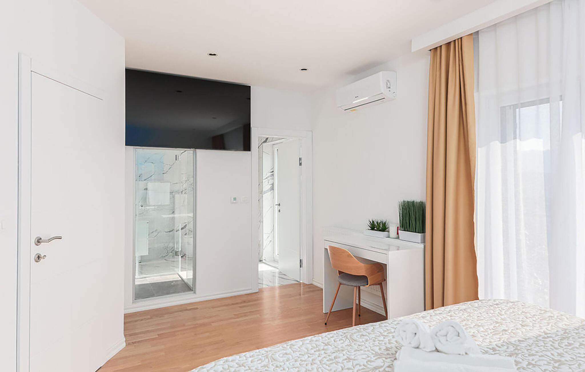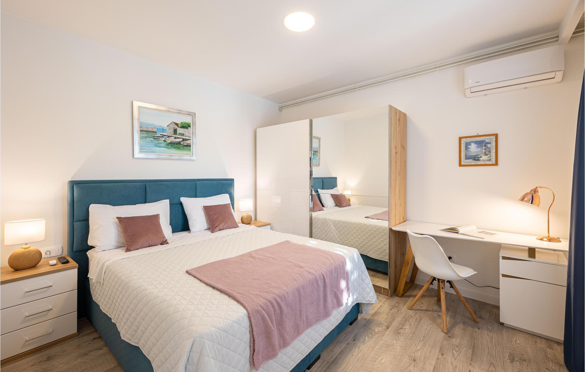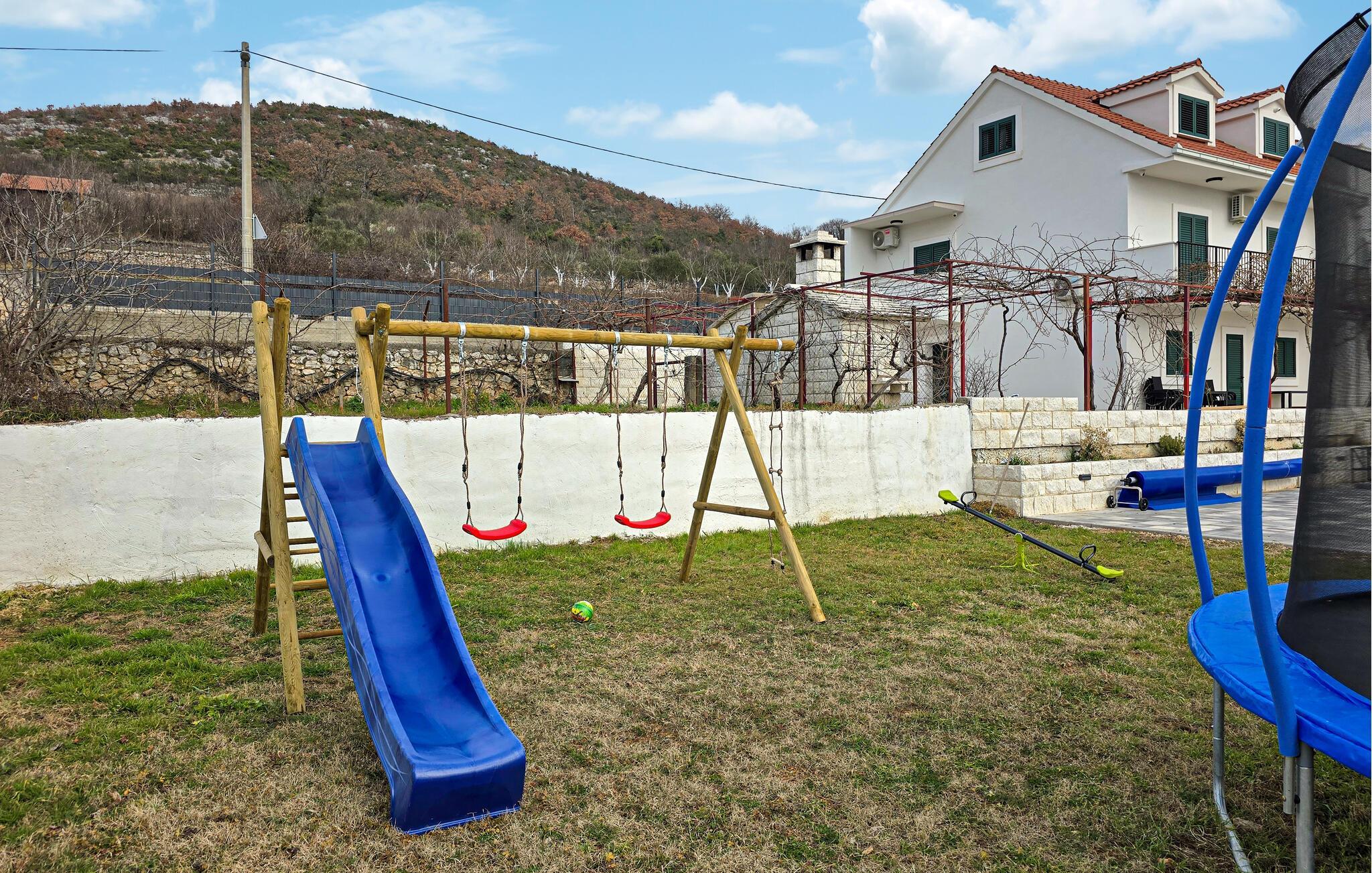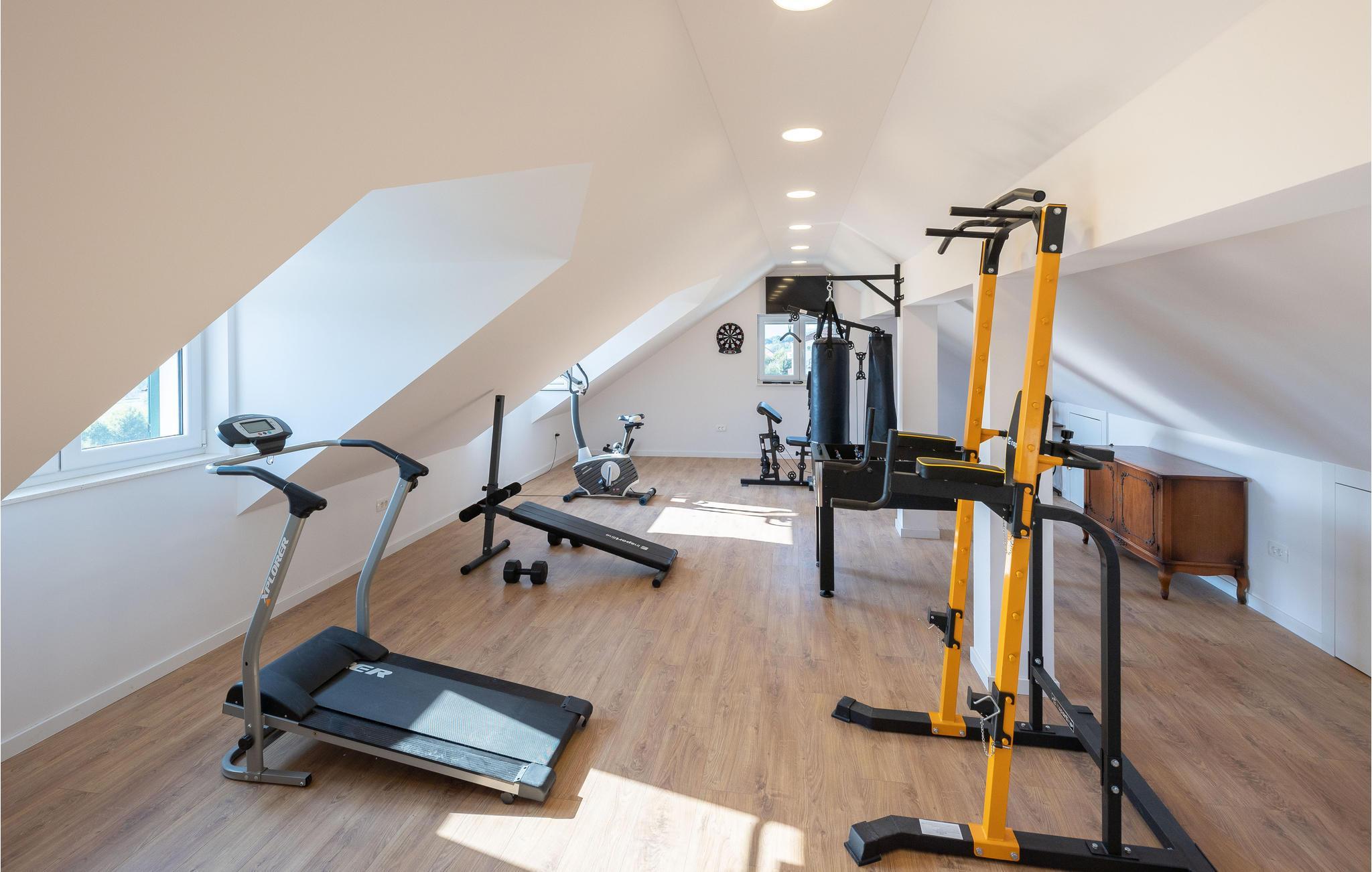 Glæd jer til afslapning, fred og komfort, mens I nyder en fantastisk udsigt over det dalmatiske landskab. Velkommen til dette lyse og smagfuldt indrettede feriehus, der ikke efterlader noget ønske uopfyldt. Komfort er meget vigtigt her og gør det nemt for jer at lægge jeres hektiske hverdag bag jer og blot sætte fødderne op. Stuen, køkkenet og spisestuen kan blive det centrale samlingspunkt for hele gruppen. I kan også forfølge jeres sportsprogram i det private fitnessområde eller have det sjovt med at spille bordfodbold og bordtennis eller tage en dukkert i poolen. Kom sammen på terrasserne til en kølig drink eller små snacks og planlæg jeres kommende ferie.