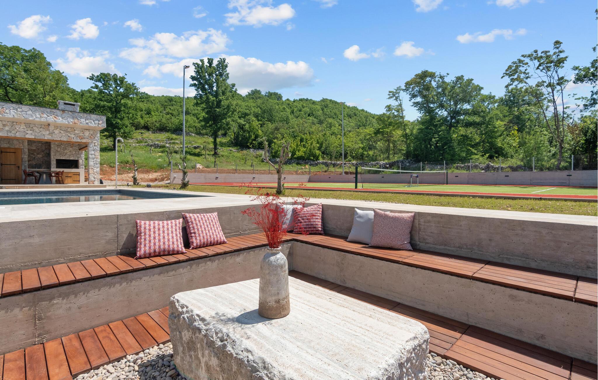 Det elegante udendørsområde tilbyder et bredt udvalg af fritidsaktiviteter for alle aldre. snup en frisk dukkert i poolen, træn på tennisbanen eller basketballkurven, og lad de små boltre sig i legehuset. Tænd grillen eller nyd magiske sommeraftener med vin og stearinlysets skær.