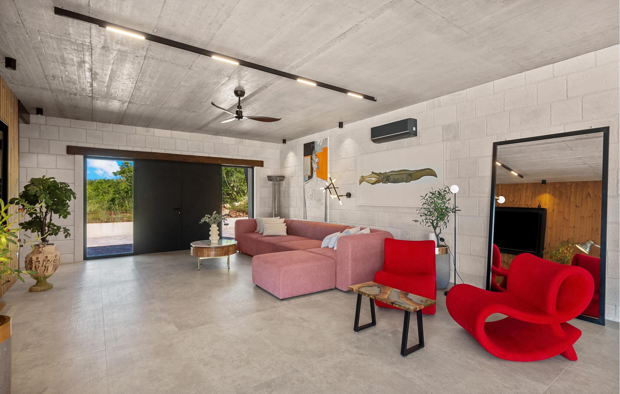 Denne moderne villa i ét plan forkæler jer med adskillige ekstrafaciliteter og et stilfuldt møbleret interiør. Ekstravagante detaljer og gennemtænkt belysning skaber en behagelig opholdsstemning. Fremtryll kulinariske højdepunkter i det åbne køkken og fejr måltiderne med udsigt over poolen. Et rummeligt sofaområde lægger op til hyggelige filmaftener og sociale spilleaftener.