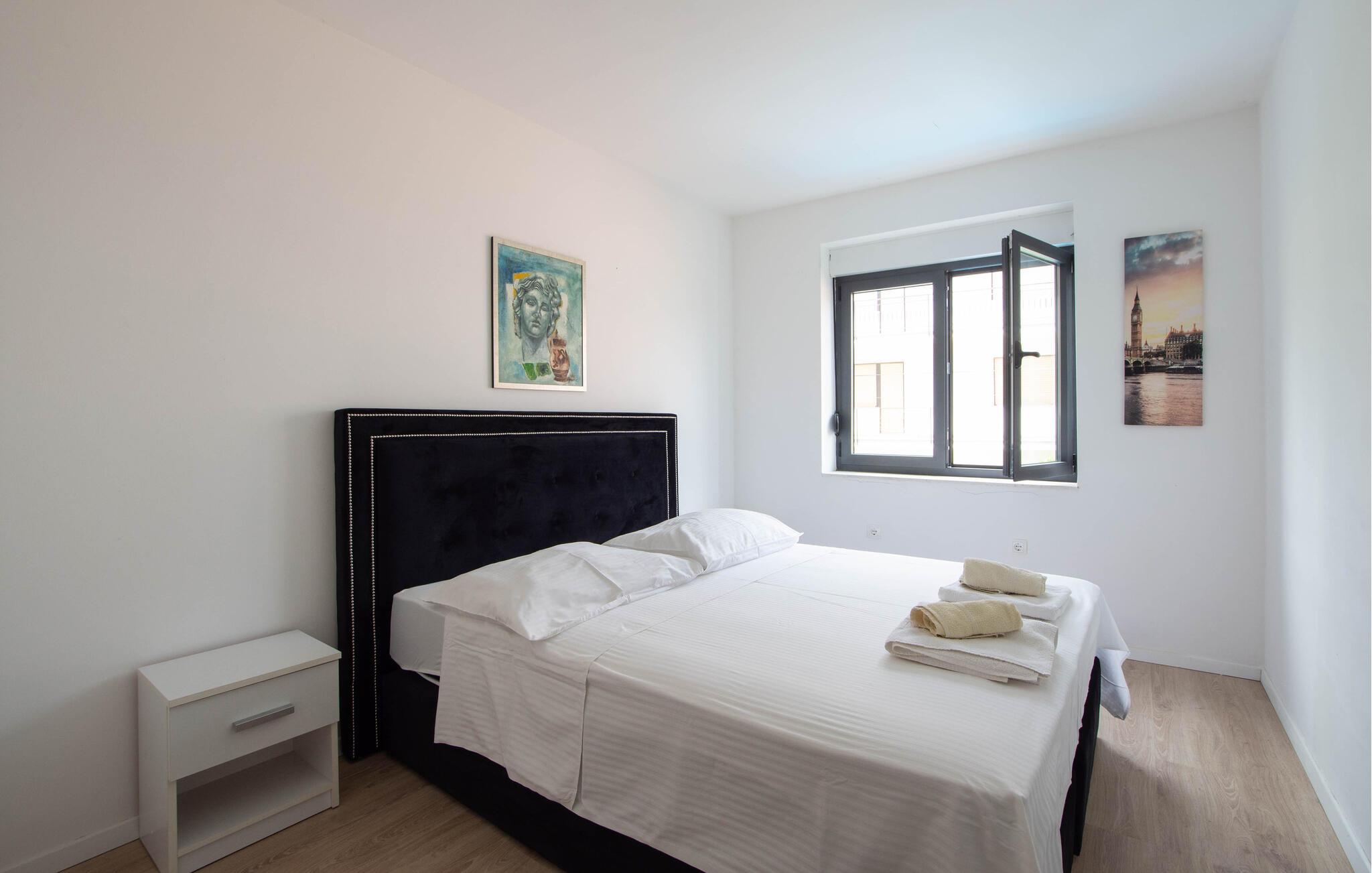 fantastisk beliggenhed mellem Split og Trogir. Indretningen fremtræder attraktivt og lyst, og sammen med den gode komfort får I her en base, hvor I kan slappe af og hvile benene efter en dejlig feriedag. Lav nogle lækre retter i køkkenet og nyd maden på jeres altan i den lune aftensol. Til komplekset hører et vidunderligt fællesområde med pool, legeredskaber, spabad og en overdækket terrasse, hvor I kan sludre med de øvrige gæster ved grillen. Rund en lækker feriedag af med saftige bøffer og et par glas med god, lokal vin.