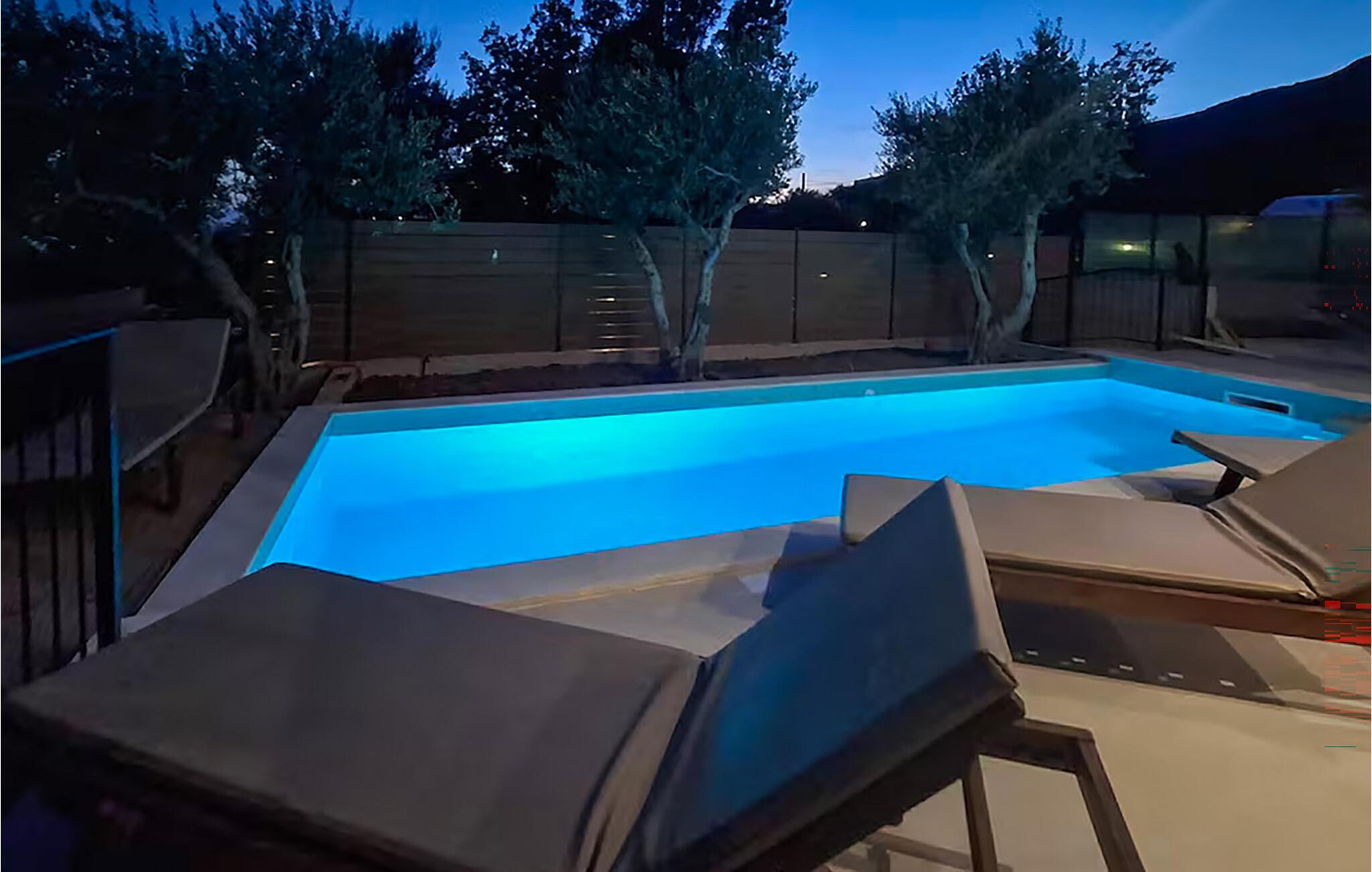 Udendørs venter en storslået, afsides pool på jer, hvor I kan slappe af på behagelige liggestole og nyde middelhavsatmosfæren. Tænd op i grillen, og fejr jeres tid sammen med vin og stearinlys.