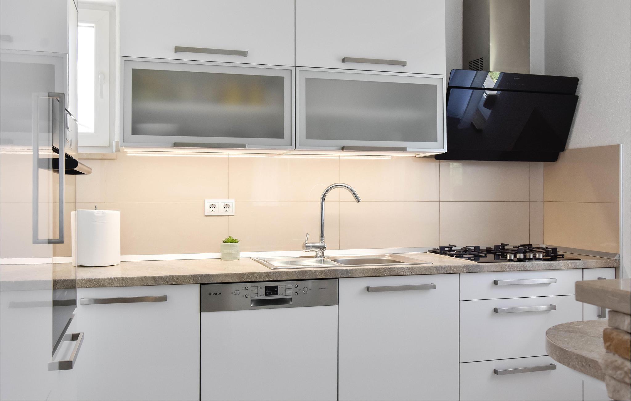 Velkommen til dette charmerende feriehus, hvor børnene vil føle sig lige så godt tilpas som jer. Tilbered kroatiske retter sammen i det moderne køkken og se frem til harmoniske stunder på det hyggelige sofaområde. Saml jeres yndlingssted til en selskabelig spilleaften eller slut dagen af ??med en spændende film.