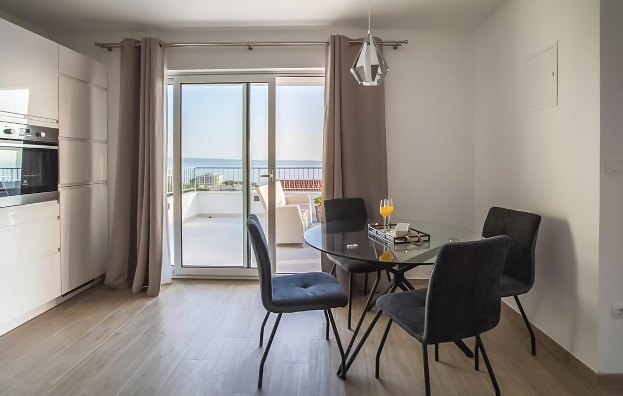 I overensstemmelse med det milde middelhavsklima og de lange solskinstimer tilbyder jeres feriehus jer en rummelig terrasse med en spektakulær udsigt over Podstranas tage til det dybblå hav. Nyd solen, slap af på de komfortable loungemøbler og sig farvel til dagen med grillede specialiteter og et glas kroatisk vin.