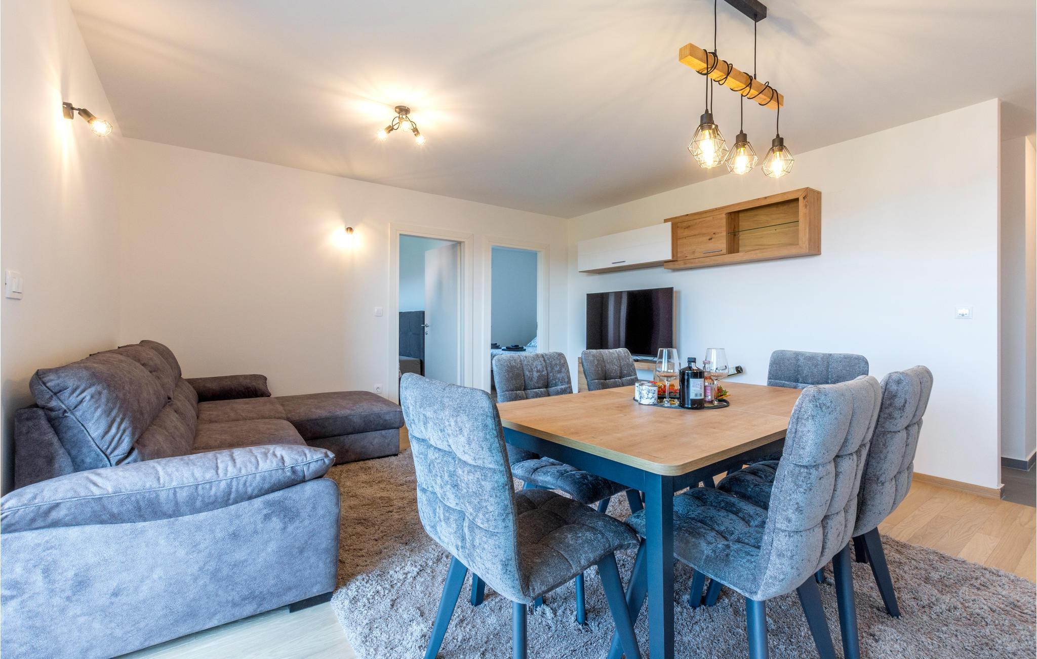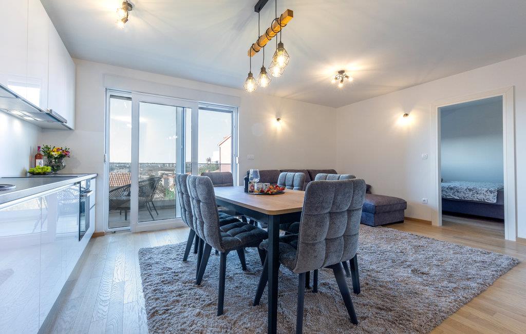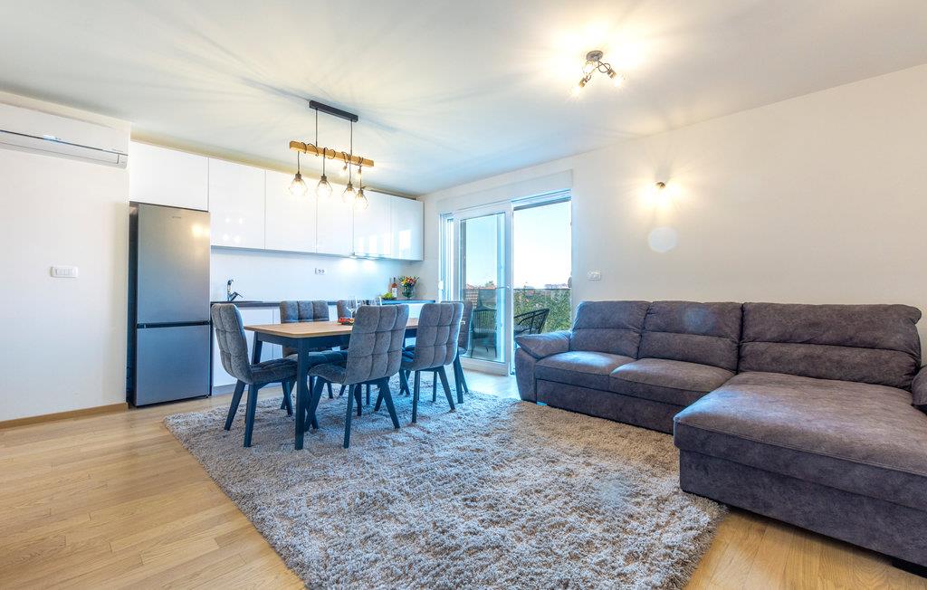 Denne moderne og stilfuldt indrettede ferielejlighed byder på en rummelig stue med et åbent boligkoncept og smagfulde dekorationer. Her kan I slappe dejligt af mellem badeture og udflugter. I har adgang til en overdækket terrasse, hvor I kan nyde en delvis havudsigt.