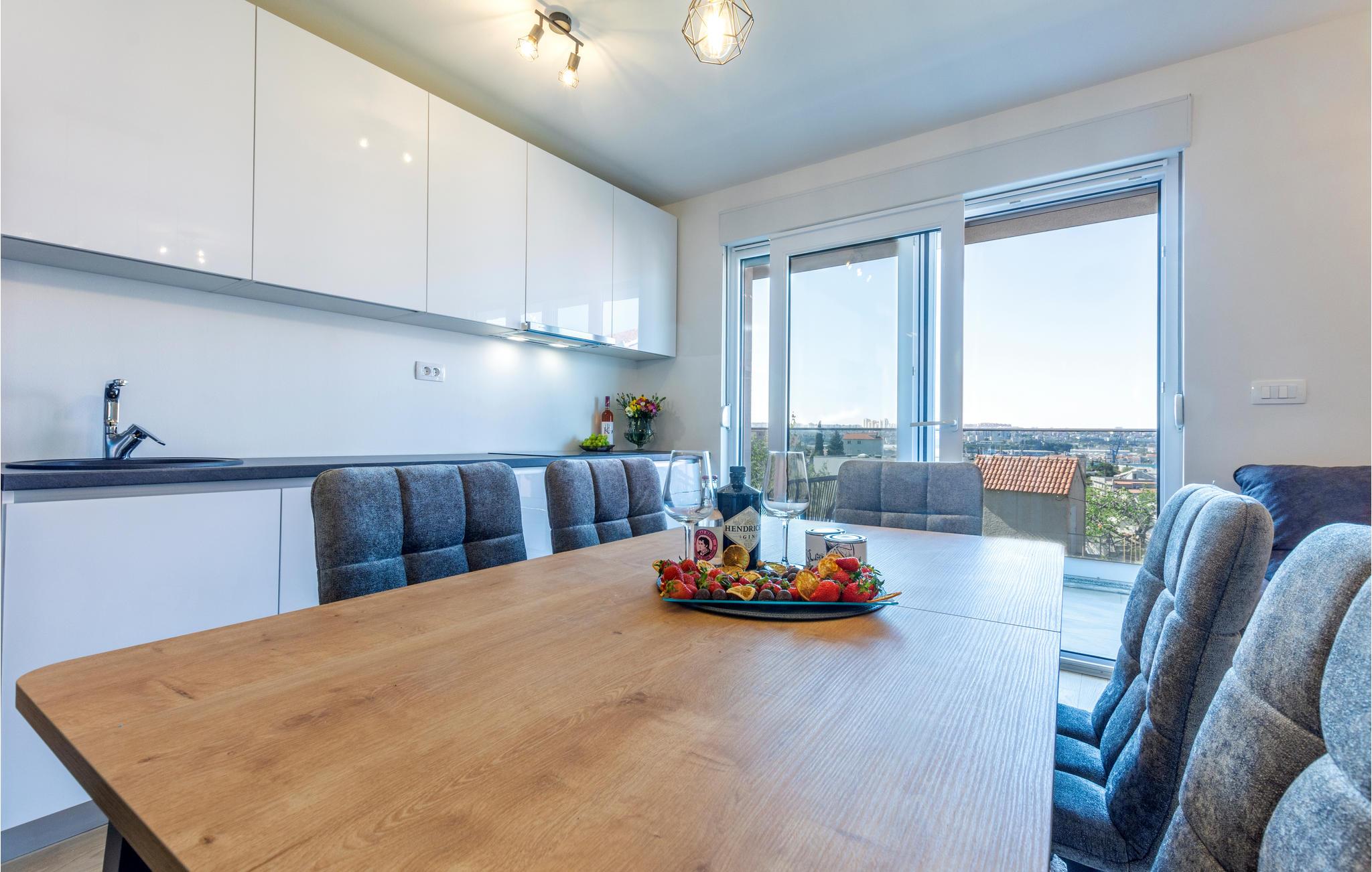 I bor i Solin med den kendte og fascinerende ruinby "Salona". En butik og en restaurant er ikke langt fra huset, og stranden med det krystalklare badevand ligger omkring en kilometer væk. Under jeres ophold bør I bestemt besøge den nærmeste by Split, Dalmatiens metropol, hvis historiske, gamle bydel byder på et væld af shopping- og underholdningsmuligheder samt en række kulturelle og historiske begivenheder og seværdigheder. Det kan også kraftigt anbefales at besøge byen Trogir, som også har en gammel bydel, der er på UNESCOs verdensarvsliste. Trogir omtales også ofte som en "museumsby", fordi den er fuld af imponerende, historiske bygninger.