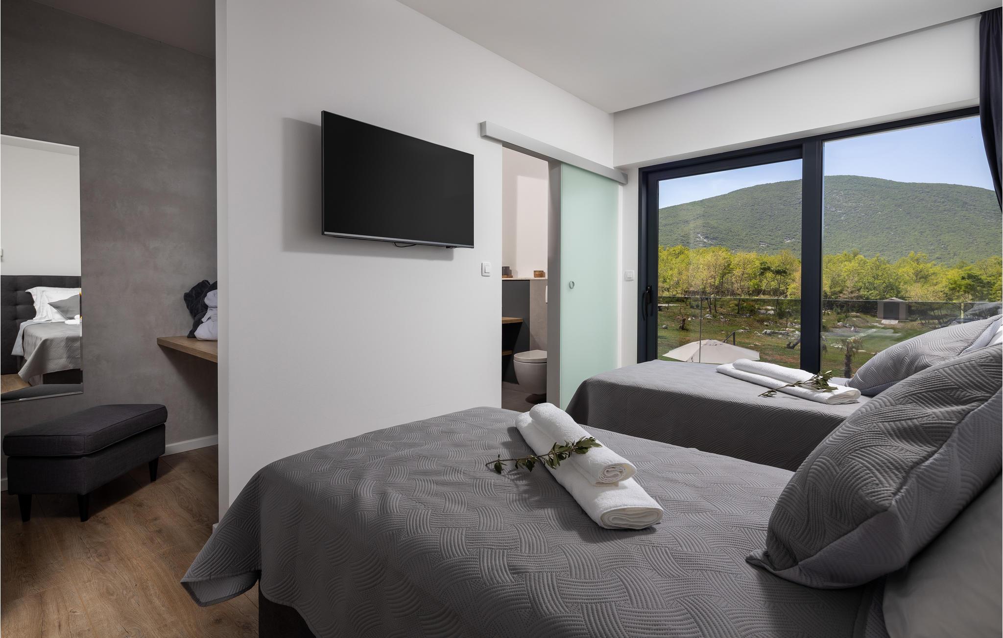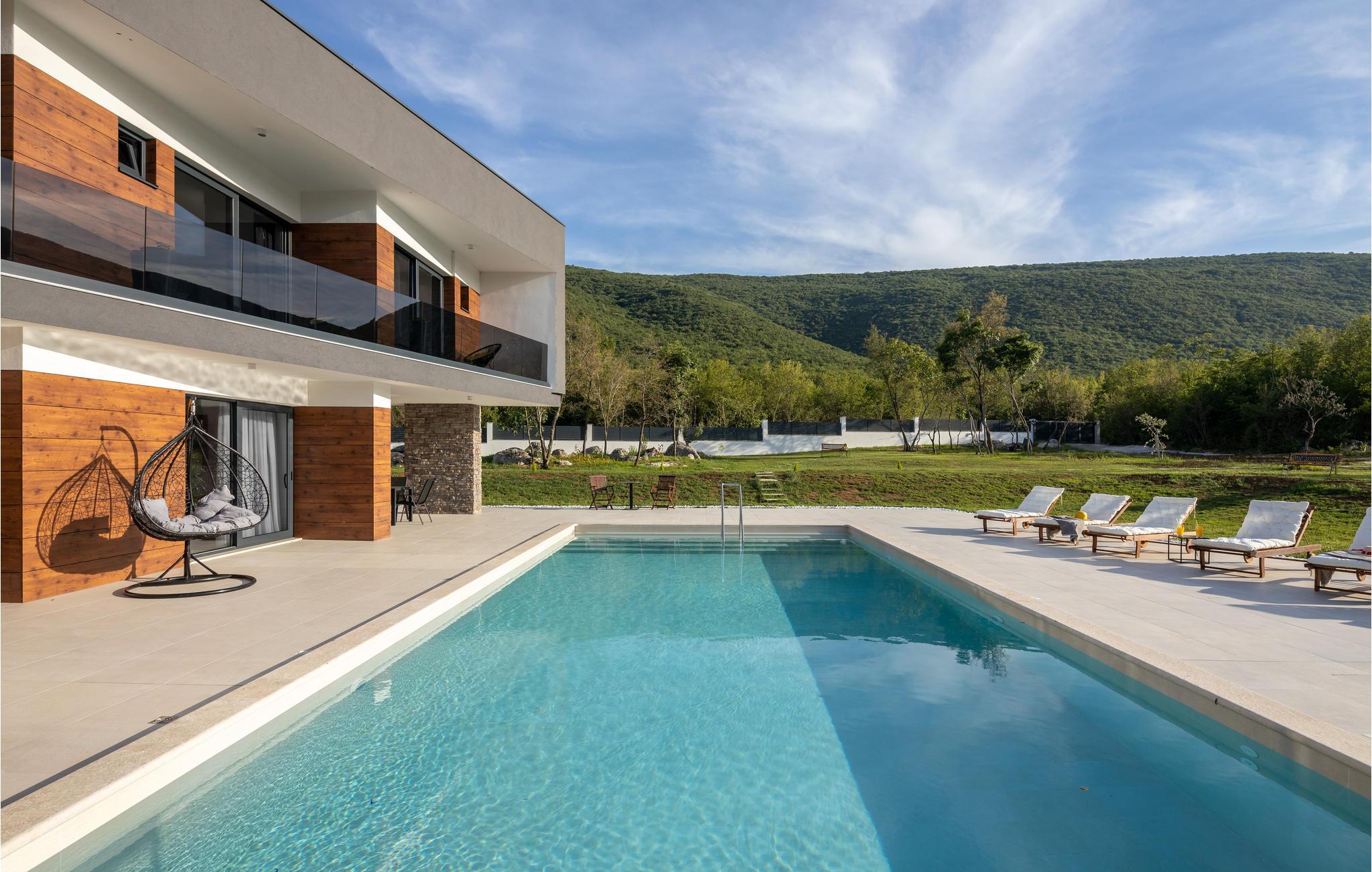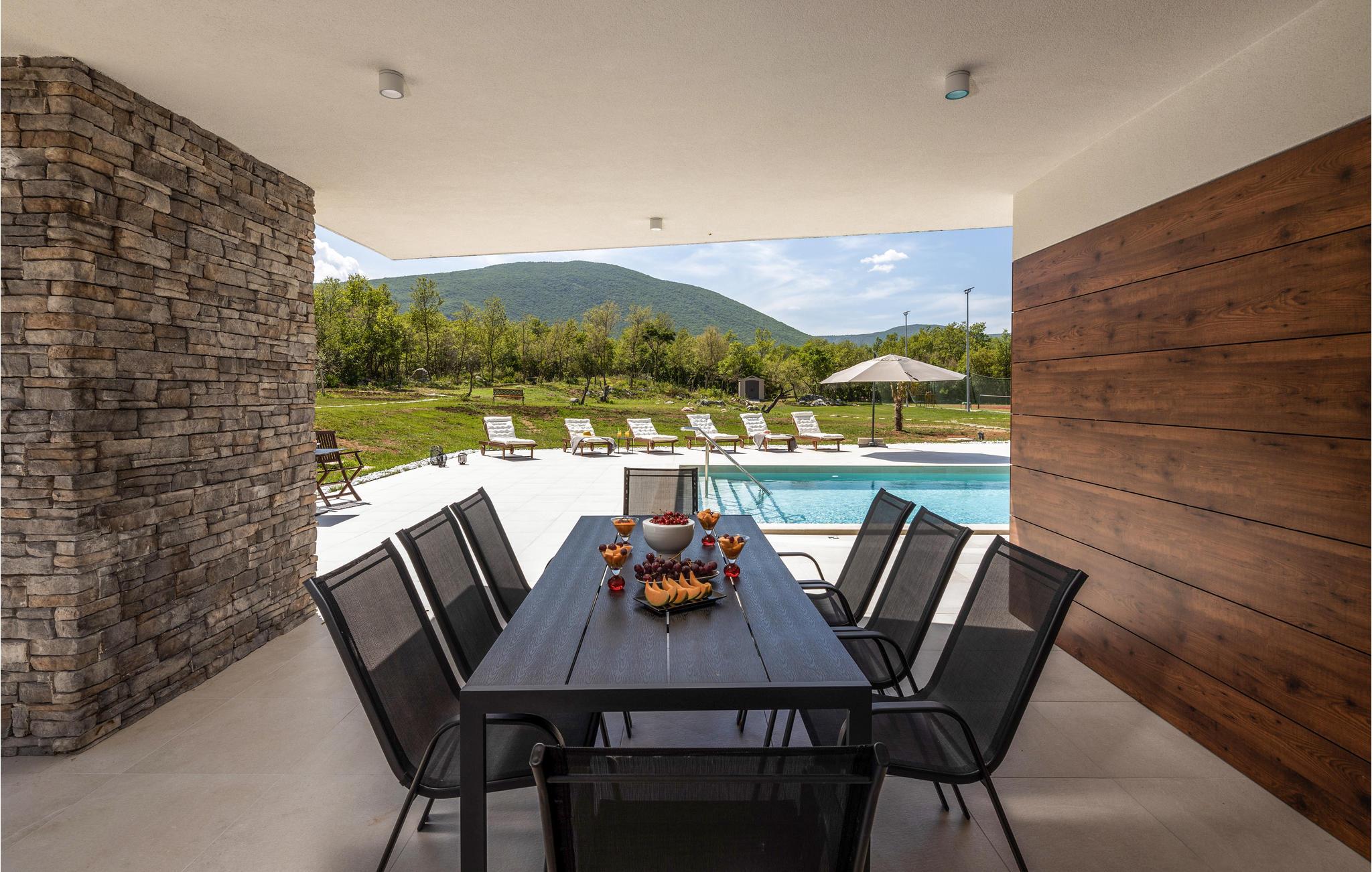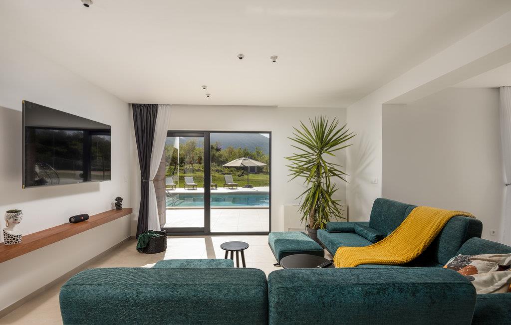 Det komfortable hus venter på jer i en vidunderlig beliggenhed omgivet af malerisk natur. Den attraktive og moderne indretning gør det til et behageligt sted for en afslappende ferie. Det er særligt velegnet til et ophold med børn. Tilbring mange afslappende timer i de lyse lokaler, som byder på både privatliv og plads til hyggelige aftener. Så snart I vågner, kan I gennem gulv til loft-vinduer nyde en fantastisk udsigt over de grønne bakker, der omkranser huset. Udfordr jeres medrejsende ved poolbordet og slap af på sofaen med udsigt over poolen.