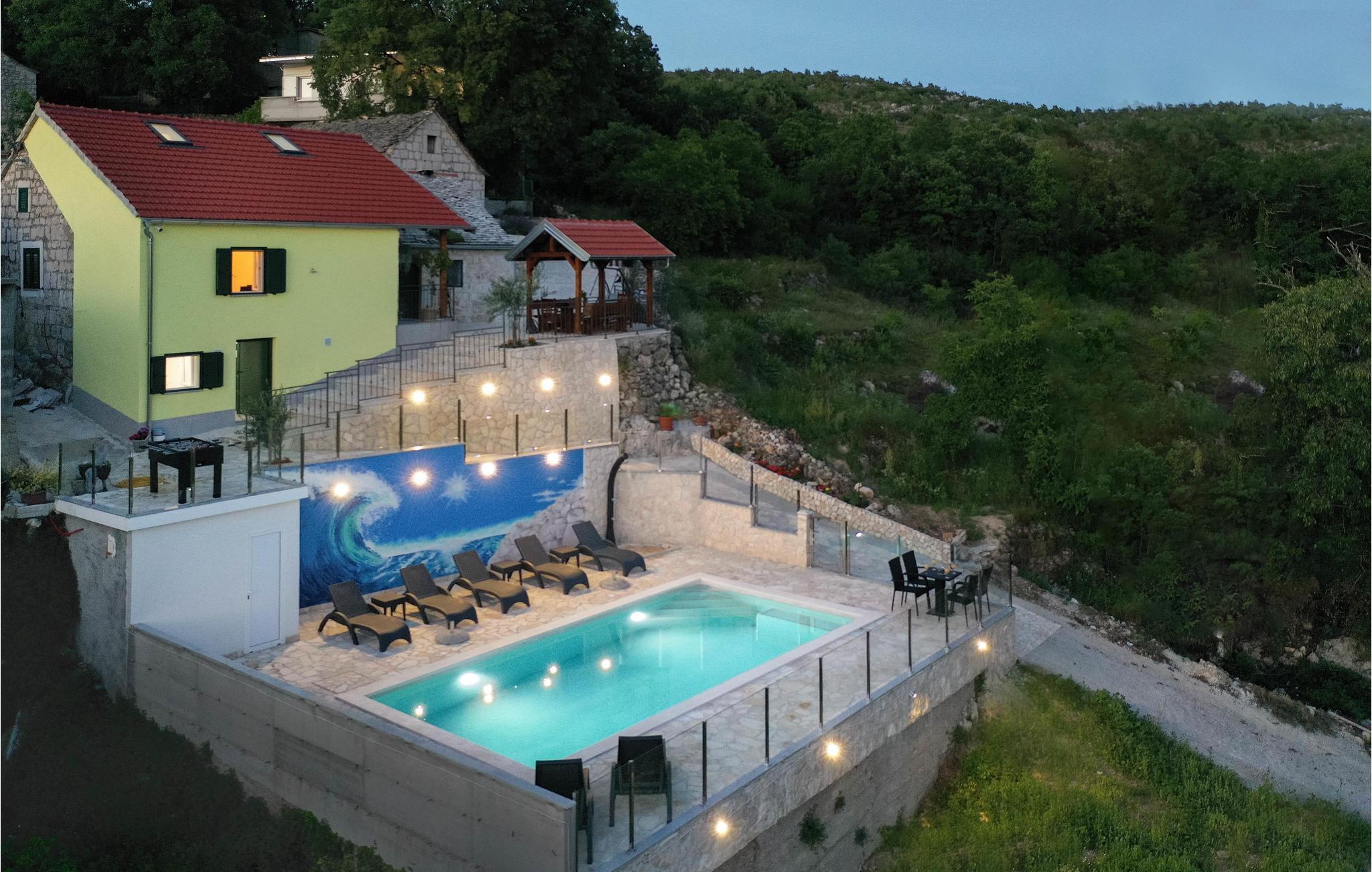 Nyd den skønne udsigt til det idylliske bagland i Dalmatien fra dette dejlige feriehus. Til huset hører egen swimmingpool til skønne svømmeture. I stueplan ligger køkken med spiseplads, 2 soveværelser samt et badeværelse. På førstesalen findes yderligere 2 soveværelser. Til feriehuset hører ligeledes et traditionelt dalmatinsk røgekammer samt en pavillon, hvor I kan tilbringe de skønne sommeraftener.