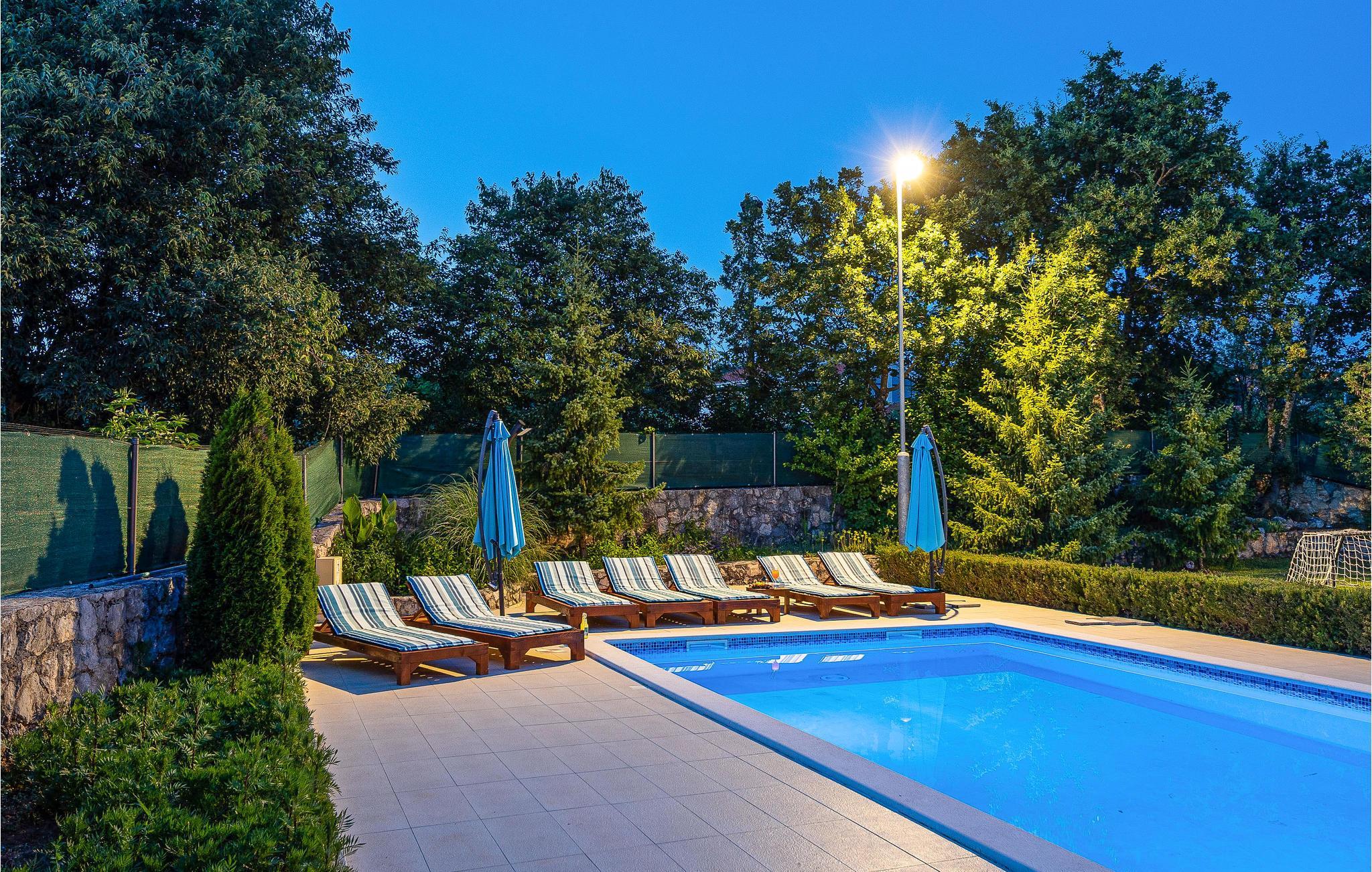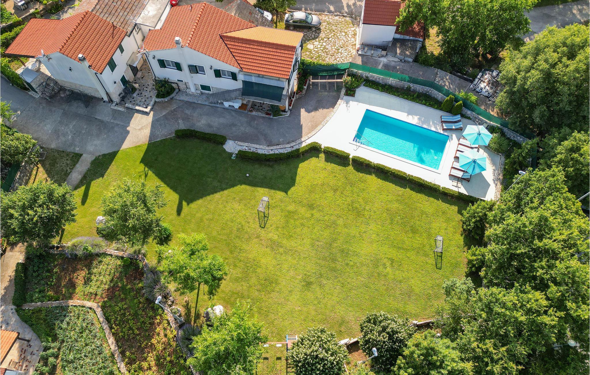 Dette skønne og rummelige feriehus ligger i udkanten af byen Split nær den lille by Trilj. Husets etager er forbundet med både inden- og udendørs trapper. I stueplan ligger det store køkken i åben forbindelse med stuen, hvorfra der er udgang til den overdækkede terrasse og til poolen med hydromassagedyser. På øverste etage ligger soveværelserne samt et aktivitetsrum med muligheder som bordfodbold. Der er store vinduesflader med skøn udsigt. I haven er der lys der kan tændes om aftenen, og her kan I sidde og nyde de lange lune nætter. Til rådighed er også et traditionelt indrettet grillhus og en grønsagshave. Trilj er kendt for sine mange restauranter. I kan også prøve at rafte på floden Cetina (også for børn). I nærheden kan I bestille terapeutiske ridetrimer.