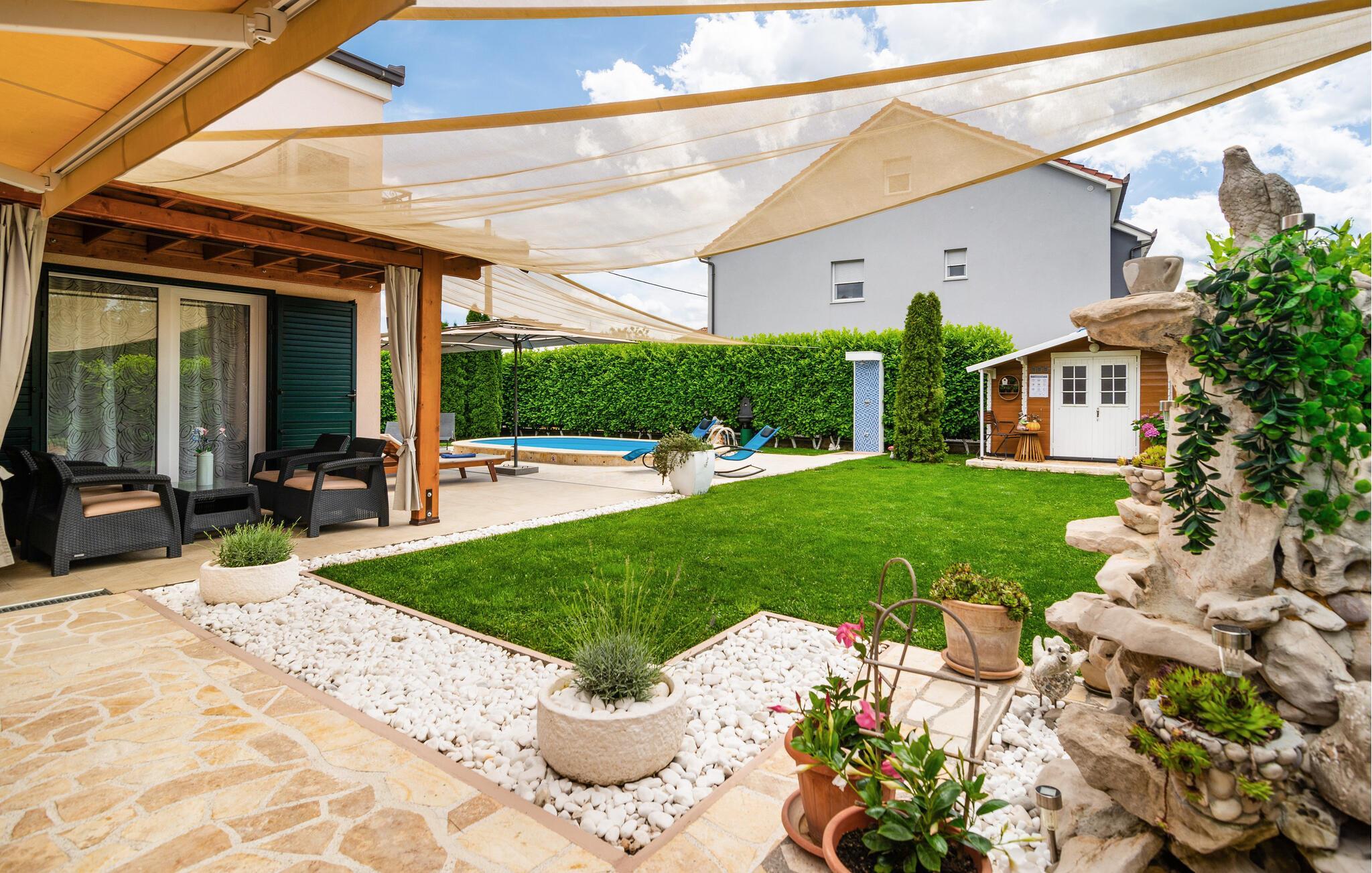 I Dicmo, som er en dalmatisk landsby i Splits indland, ligger dette skønne og moderne feriehus med pool, i skønne naturomgivelser, dejligt til en afslappet ferie langt væk fra hverdagens hektiske stemning. Det er velegnet til en ferie for to familier. Den velplejede og indhegnede have er ideel til fælles hygge, mens maden bliver færdig på den traditionelle dalmatiske grill. For jer der holder af sport og fart over felten, kan vi anbefale Cetina regionen hvor I kan ride, vandre, rafte og tage på fisketure. Besøg også Split, med en perlerække af historiske seværdigheder.