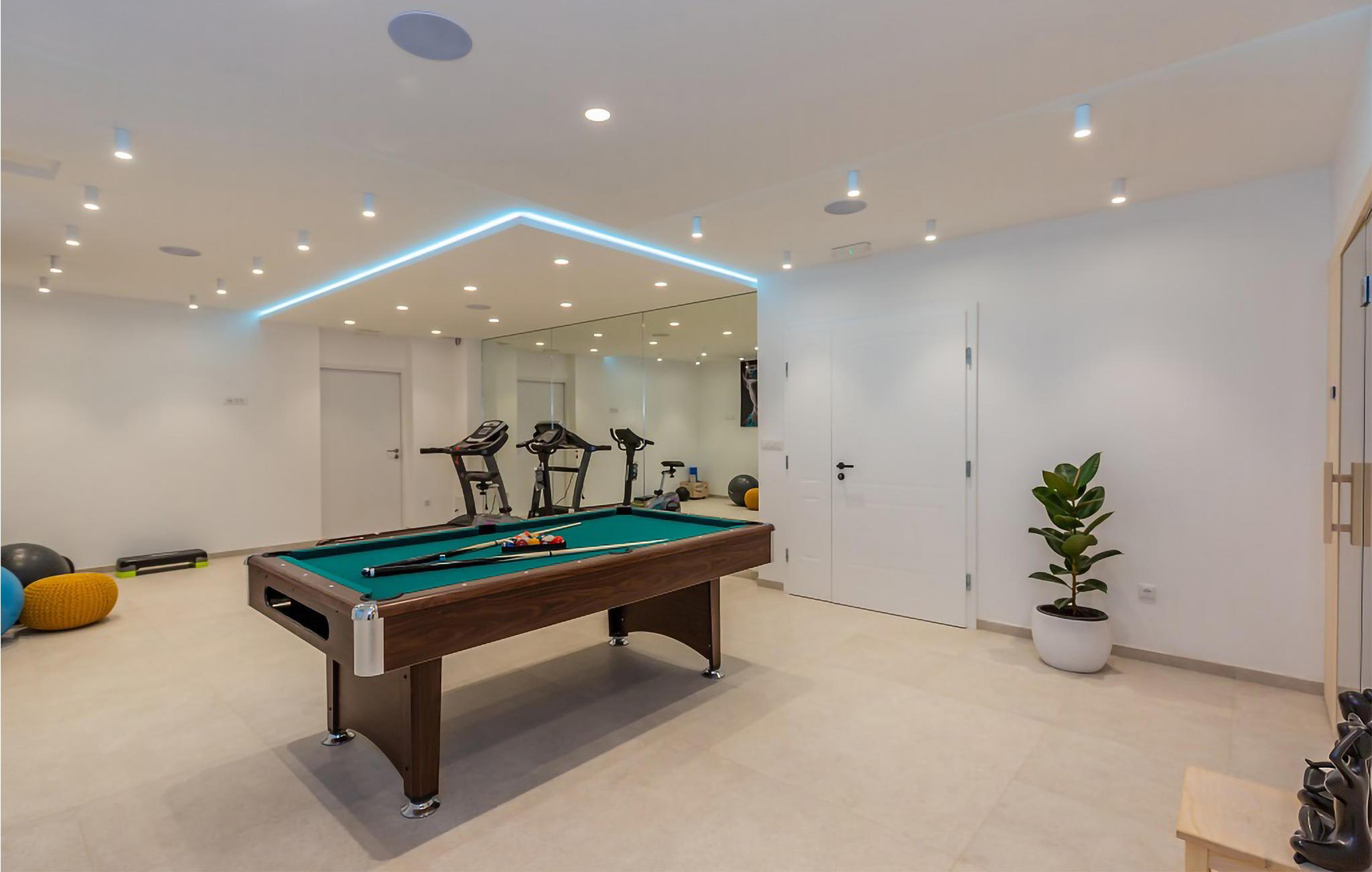 Den åbne, lyse stue er forlænget med en stor altan og bliver det perfekte til socialt samvær, madlavning og fælles måltider. Vil I gerne holde træningsrutinerne ved lige? Så er der også plads til det i jeres eget fitnessrum med sauna. Et separat fritidsområde med billard og bordfodbold runder huset af.