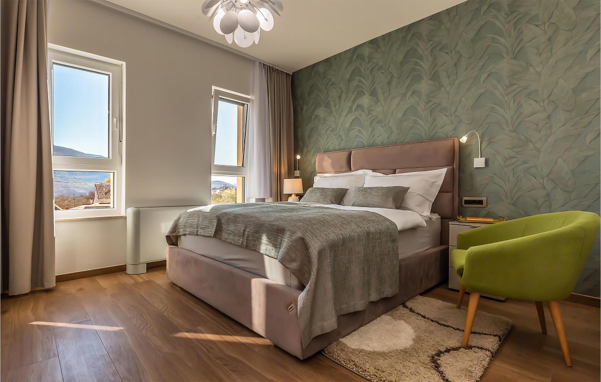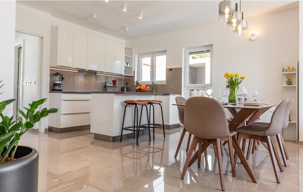 Moderne og elegant indretning kendetegner dette skønne feriehus, som bliver en herlig ramme om jeres dage i Kroatien. Soveværelserne er smagfulde, og der er næsten et badeværelse pr. person, hvilket er en fordel, når I skal ud af døren om morgenen.