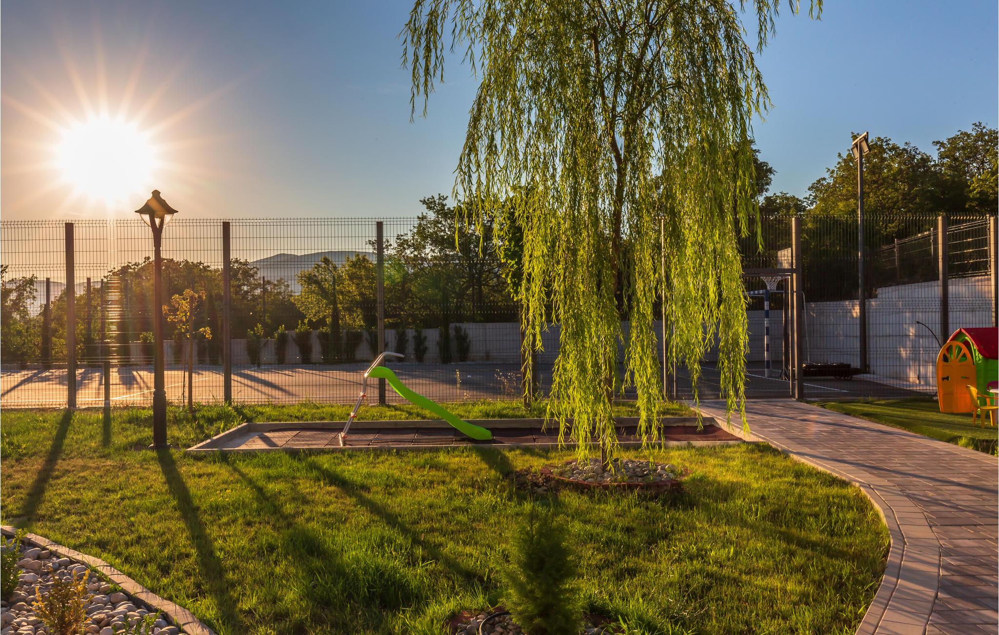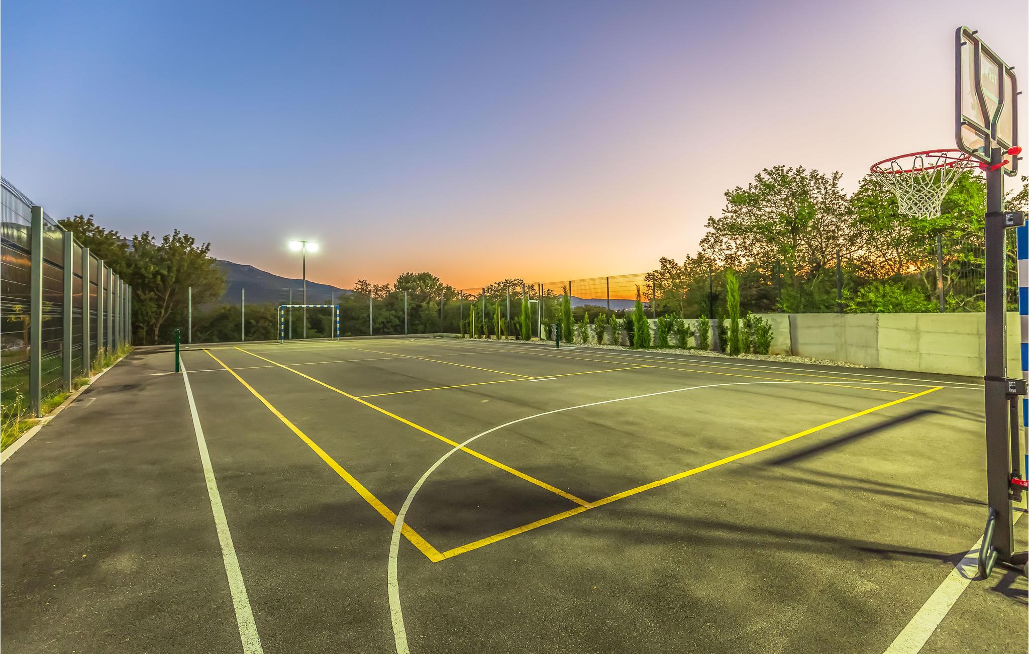 En oplyst sportsplads på stedet giver jer fleksibiliteten til at dyrke flere sportsgrene.