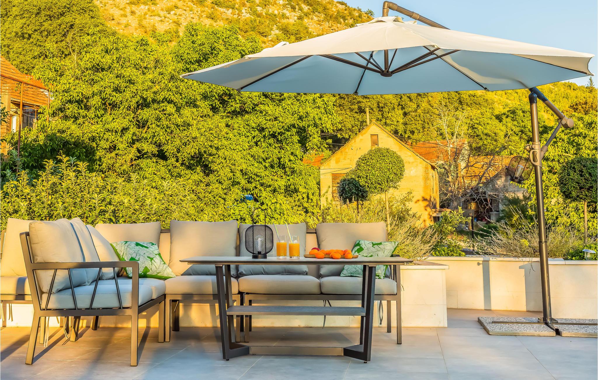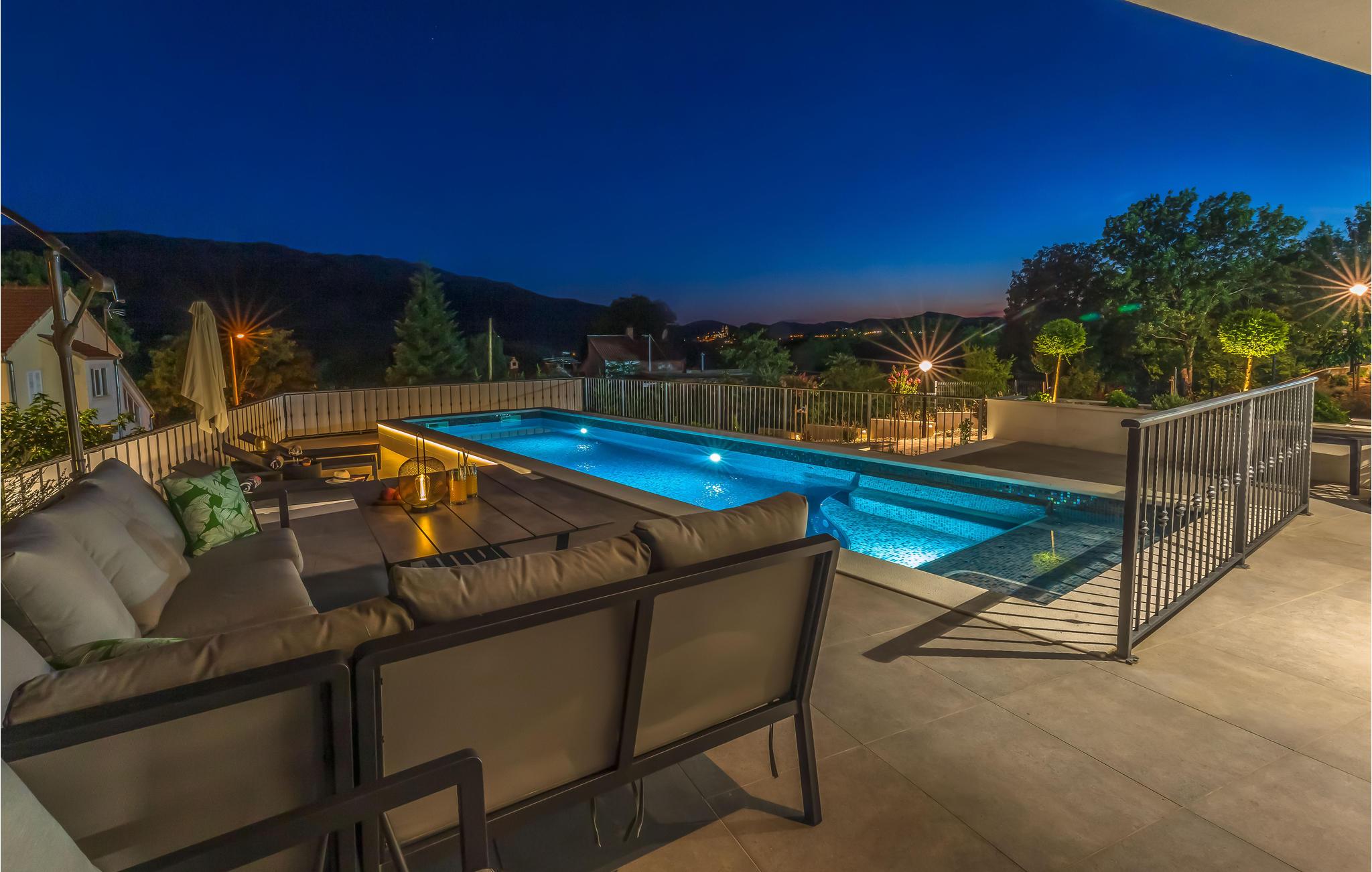 Placeringen af ??den luksuriøse ejendom giver jer mulighed for at opleve de dalmatiske bjergkæder. Pak vandrestøvlerne, for udsigten fra toppen er betagende. Se ned på Split og det azurblå Adriaterhav samt den varierede landregion. På kun 15 km kan I nå til Split. For mange er det den smukkeste by i Kroatien. Havnebyen vil imponere jer med smalle gader, men også moderne butikker og mange seværdigheder. Tag på en historisk oplevelsestur og fordyb jer i byens fantastiske atmosfære. Et stort antal små strande inviterer jer til at bade i det kølige vand.
