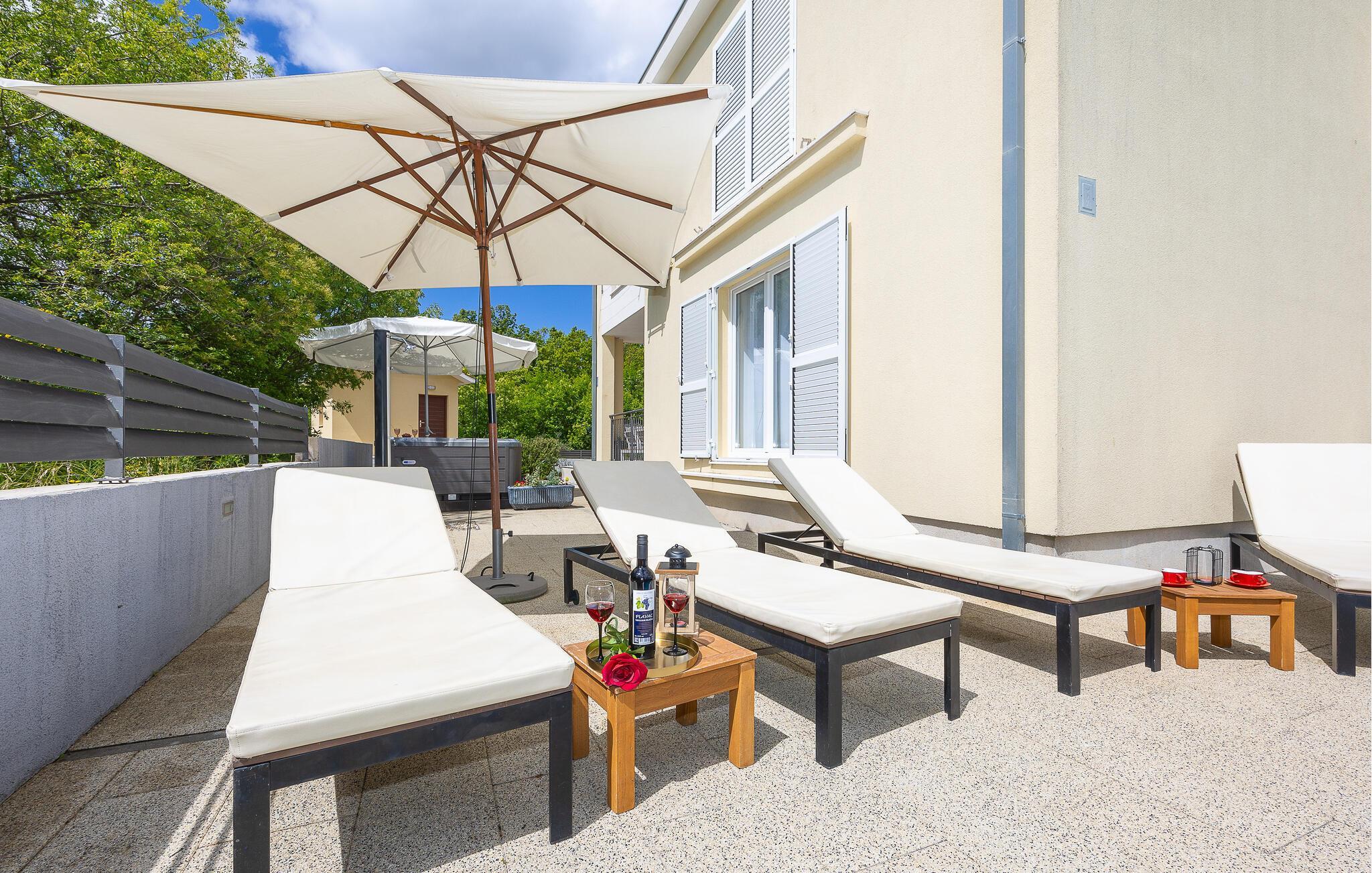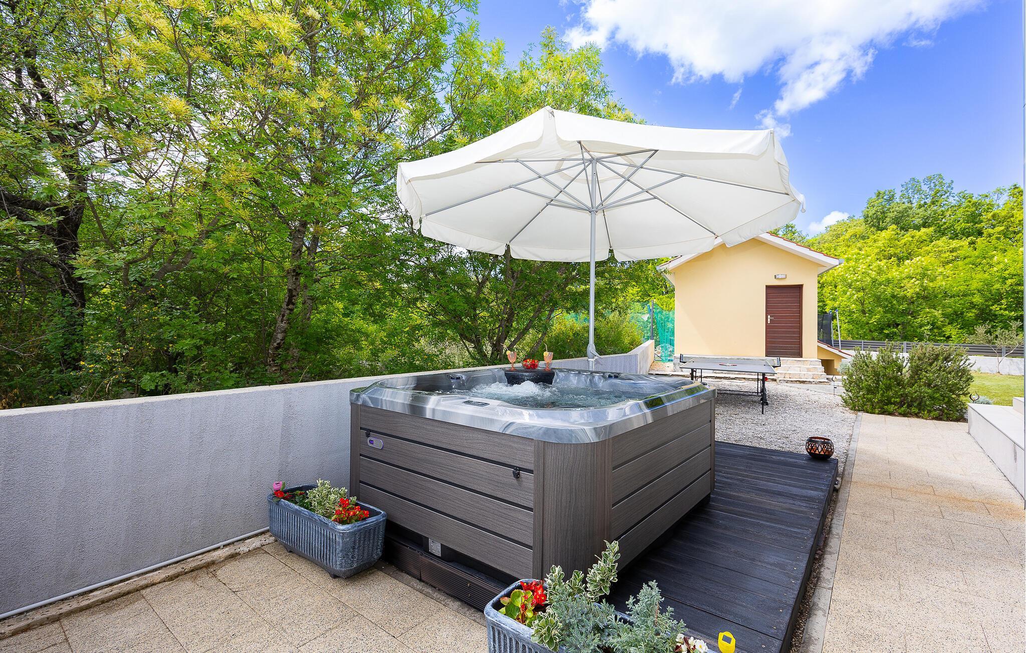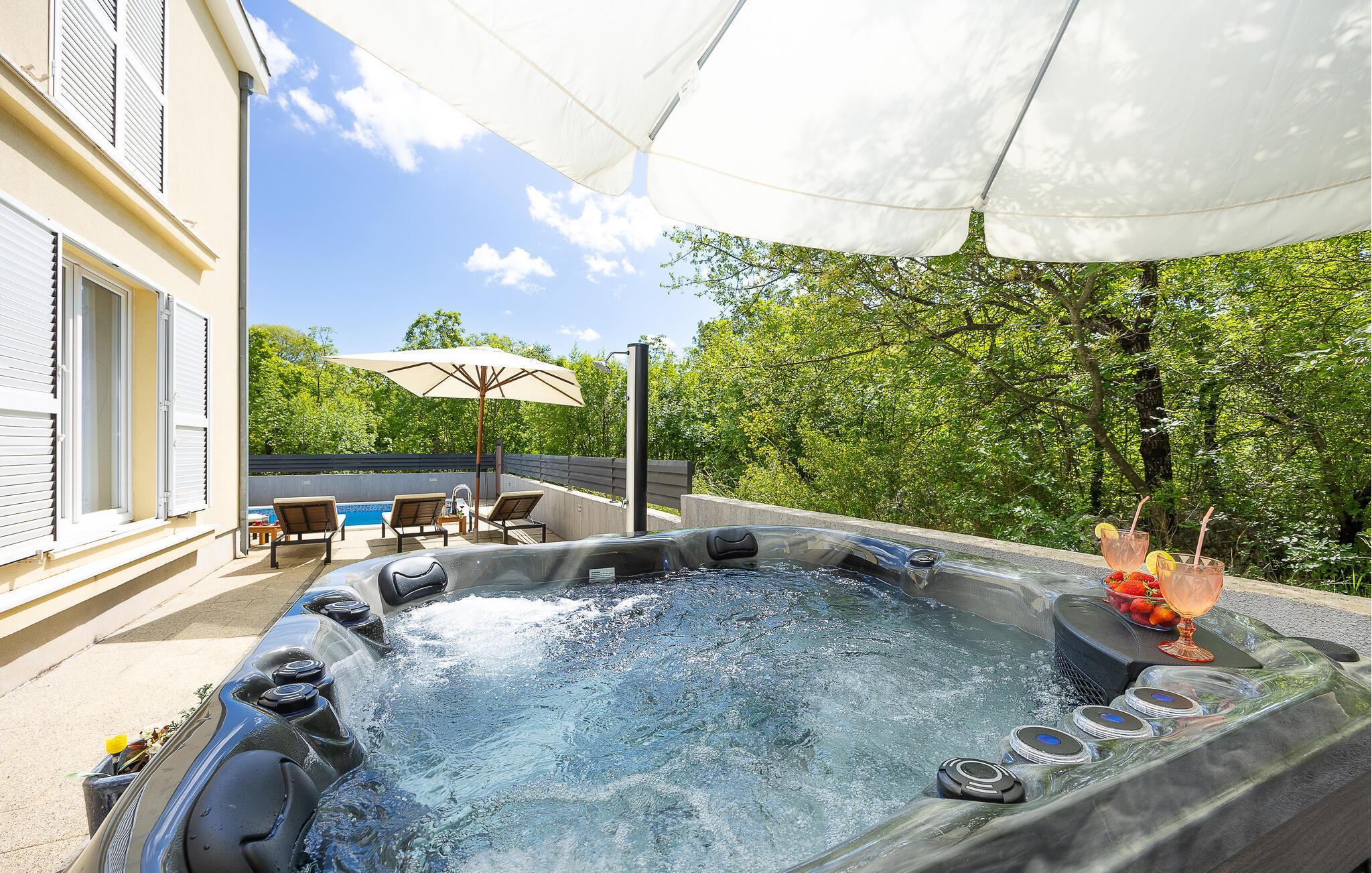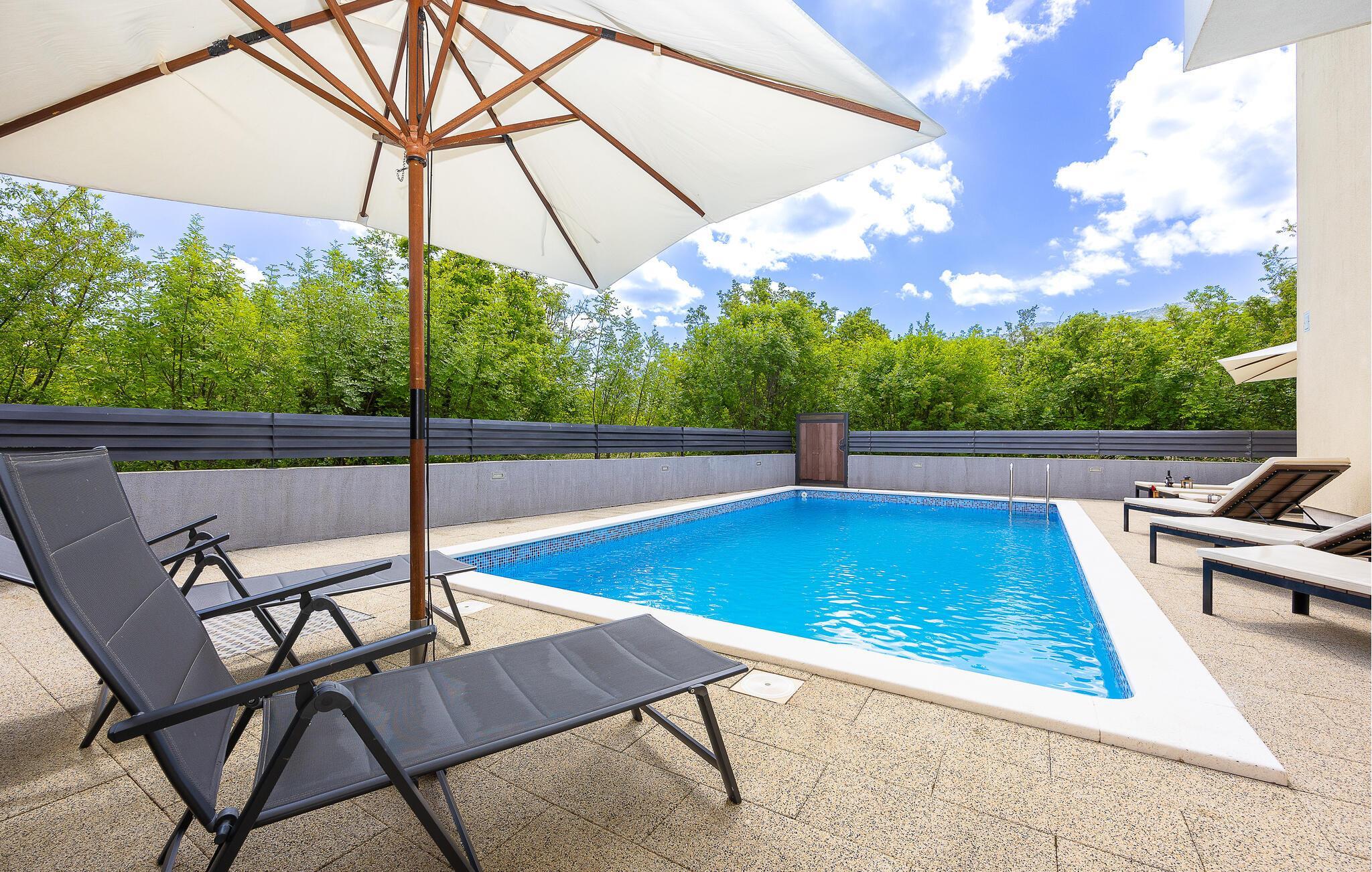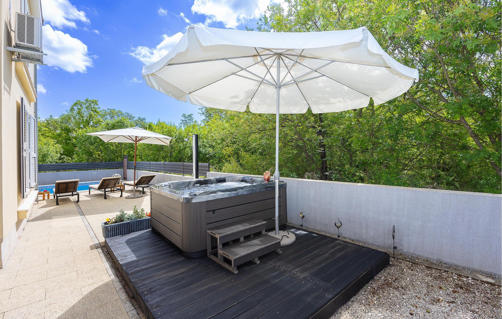 Hold en behagelig ferie i dette skønne og moderne indrettede feriehus. Huset strækker sig over to etager der er forbundet med en indre trappe. I stueplan ligger det veludstyrede køkken der er åbent mod køkkenet, et soveværelse, badeværelse og et fritidsrum, men der på øverste etage er tre soveværelser, det ene med badeværelse en suite, et aktivitetsrum og yderligere et badeværelse. Glæd jer til en privat pool, hvor I kan svømme lige når I har lyst, på de lange varme sommerdage. Prøv en svømmetur under stjernerne og fuldmånen – en ganske særlig oplevelse.