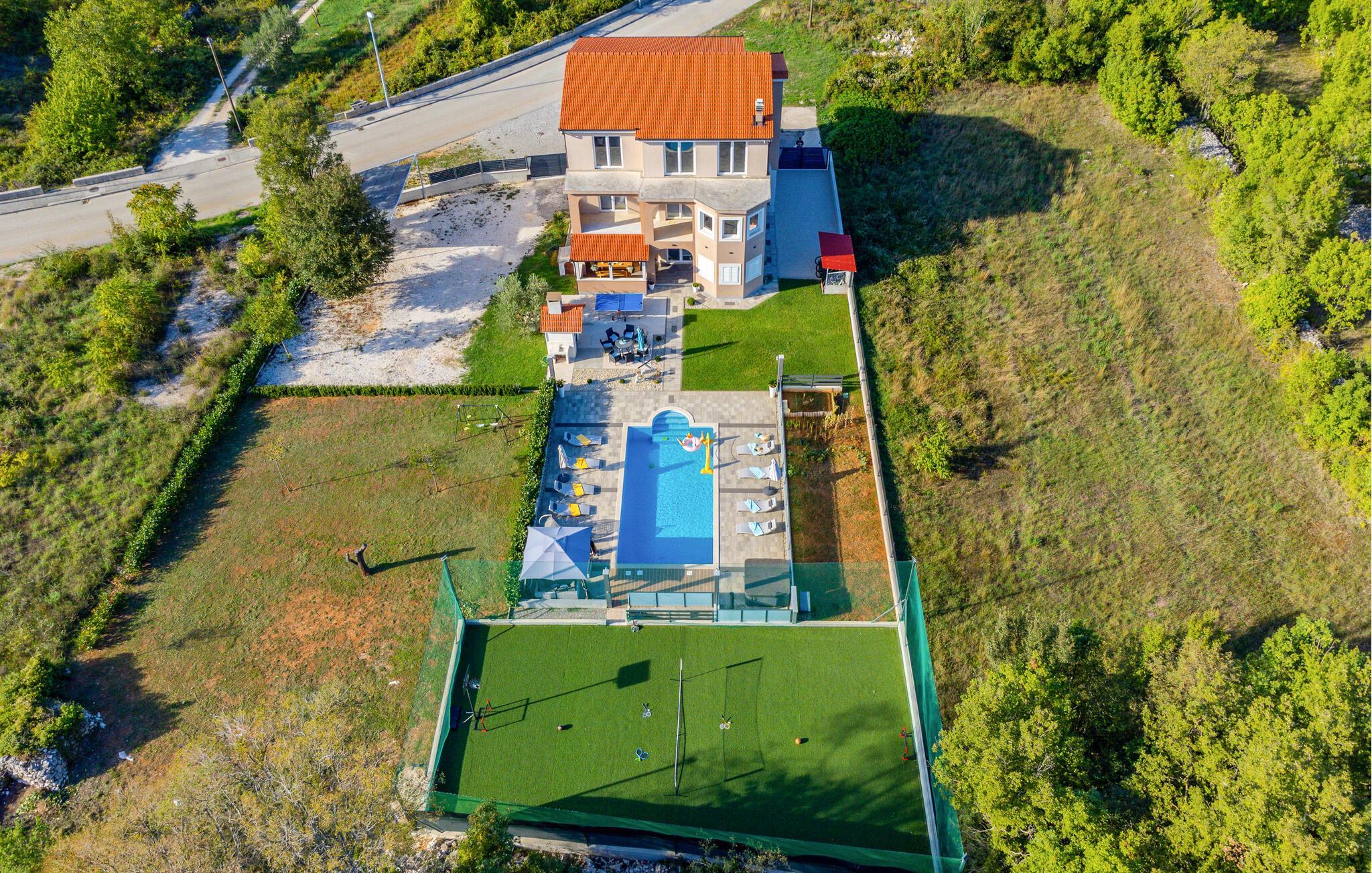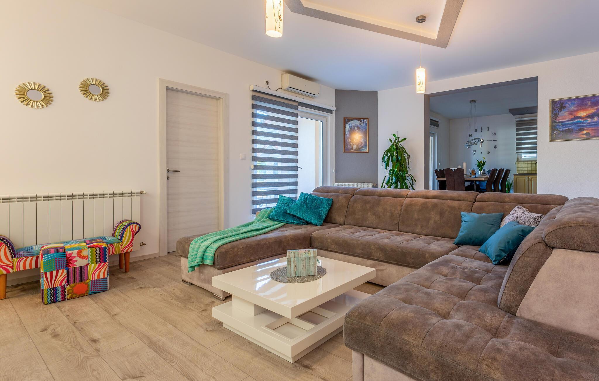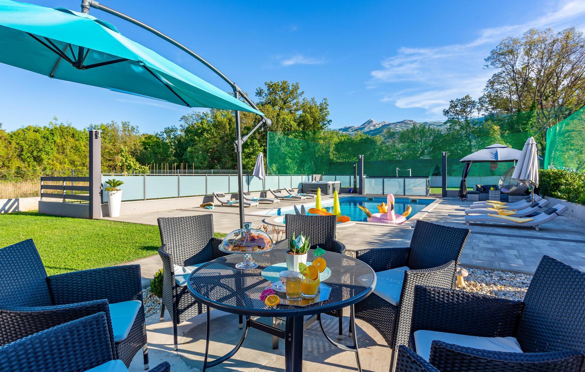 Velkommen til jeres drømmehus i Dugopolje. Nyd ferien i denne moderne og smagfuldt indrettede bolig. Start dagen på den hyggelige terrasse med en omfattende morgenmad og lad blikket vandre over det rummelige udendørsområde med pool og siddepladser. De komfortable liggestole ved poolen inviterer til afslapning og solbadning, mens whirlpoolen sørger for ren afslapning. Den velplejede have har en muret grill, som giver mulighed for hyggelige grillaftener under stjernehimlen. Gør det behageligt om aftenen, nyd et glas vin og den behagelige atmosfære på dette unikke sted.