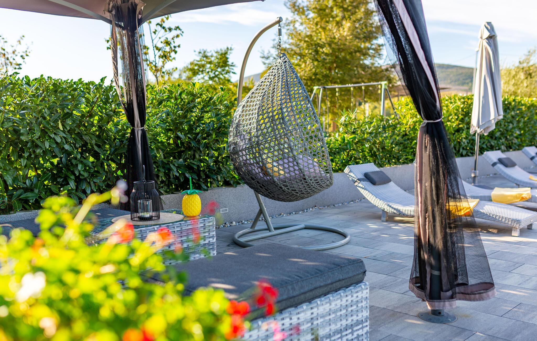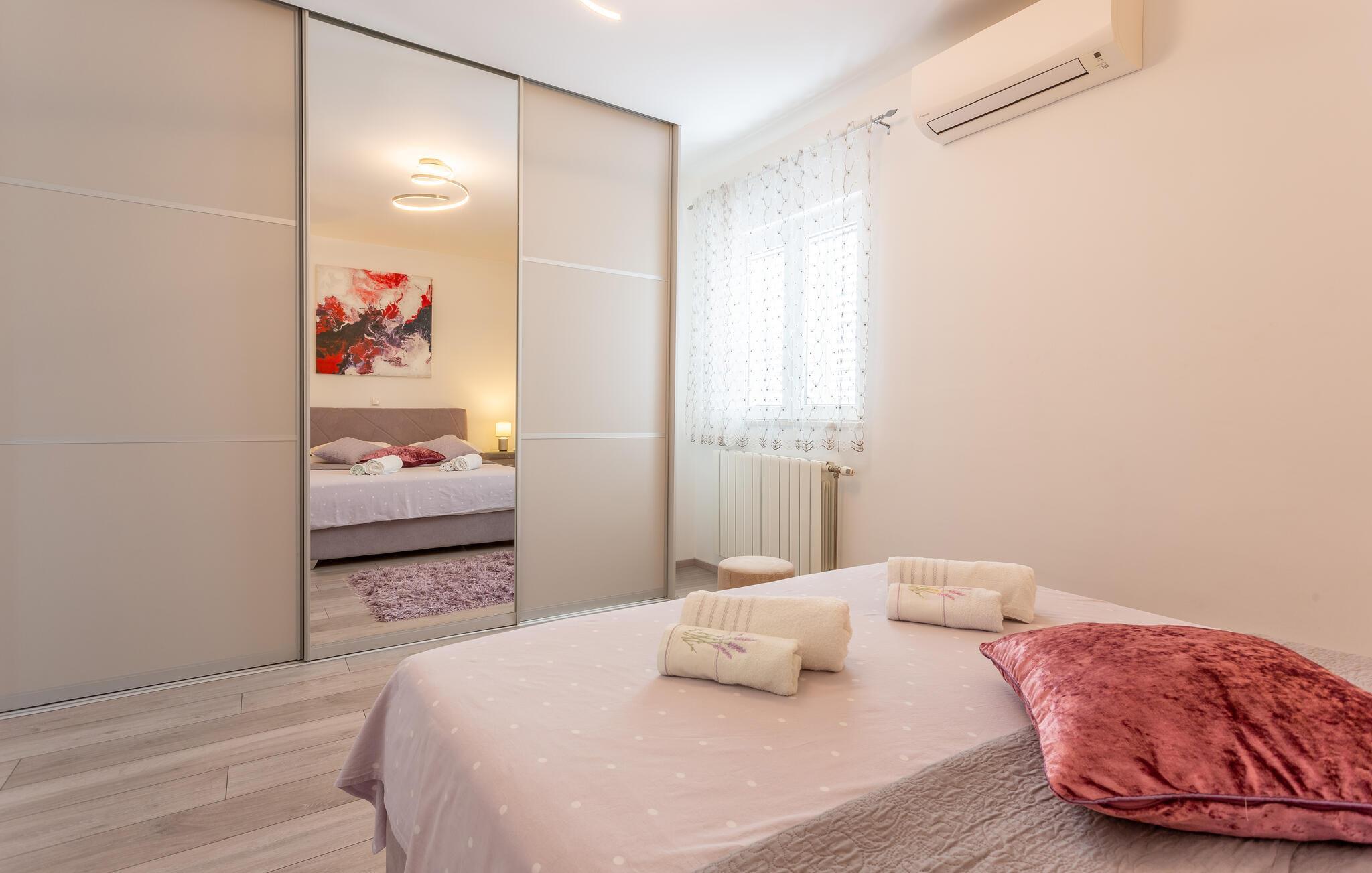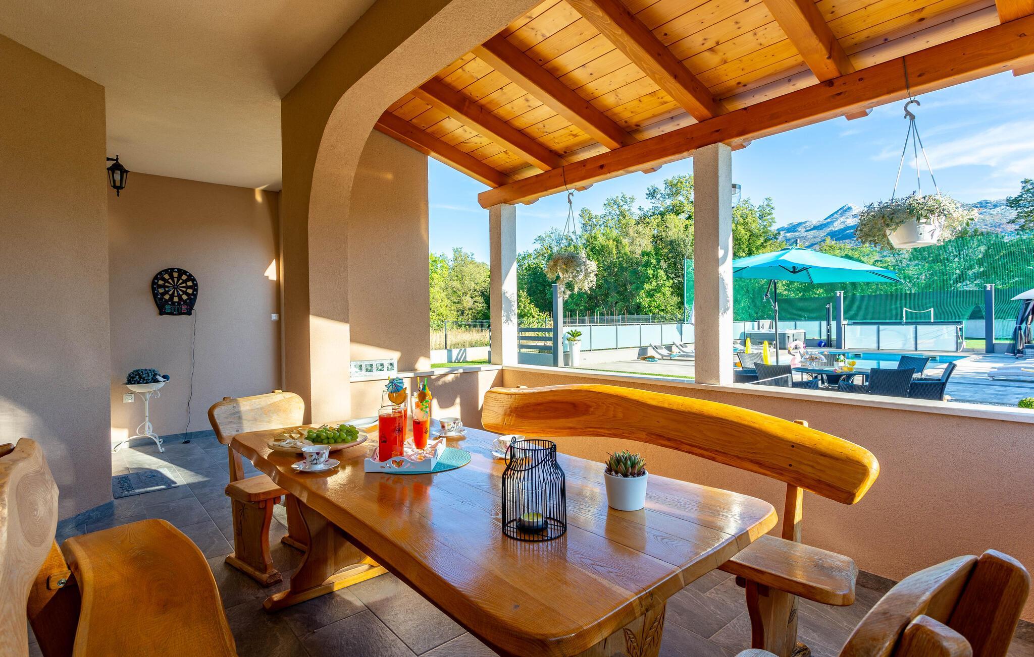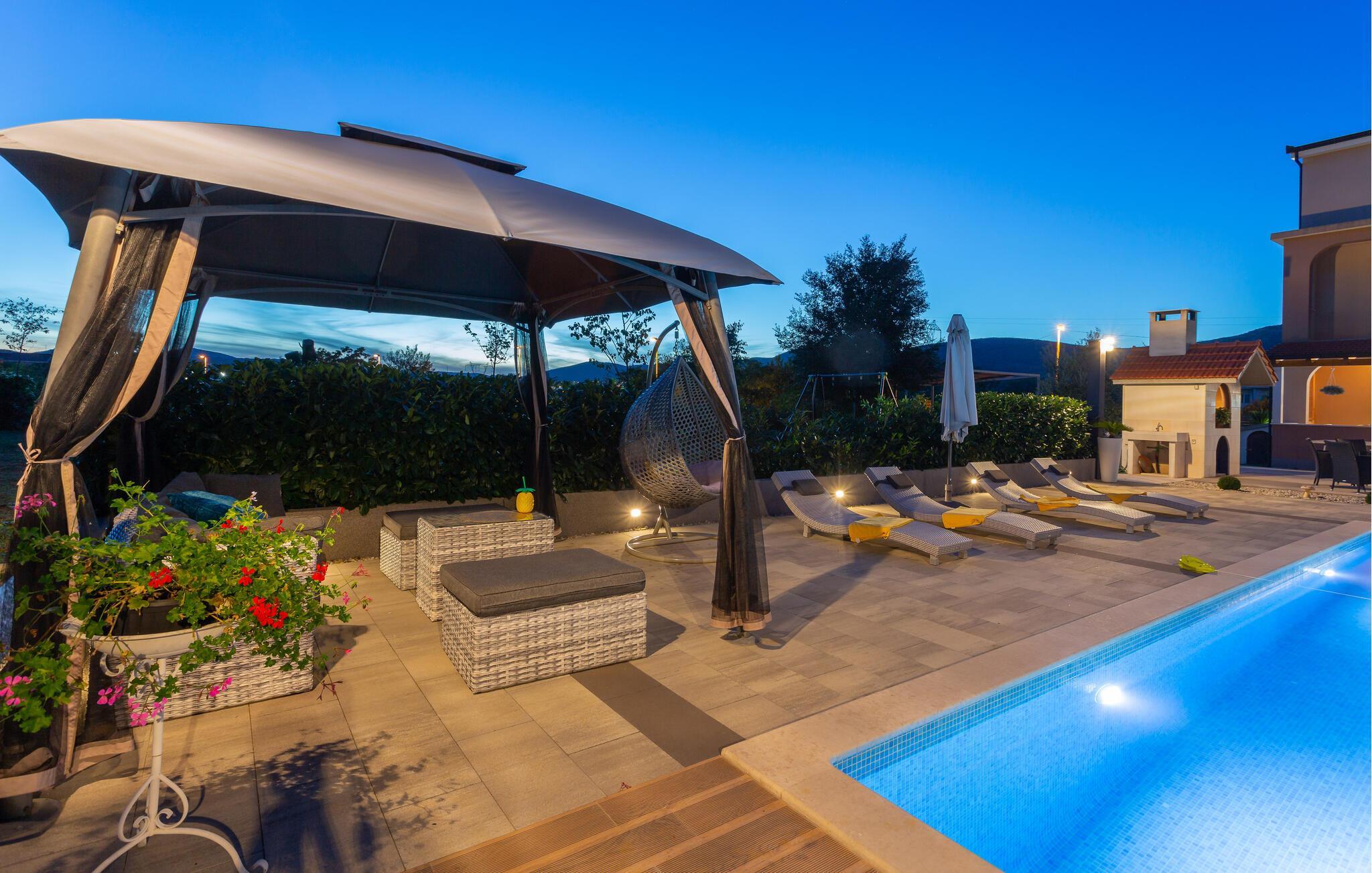 Velkommen til jeres drømmehus i Dugopolje. Nyd ferien i denne moderne og smagfuldt indrettede bolig. Start dagen på den hyggelige terrasse med en omfattende morgenmad og lad blikket vandre over det rummelige udendørsområde med pool og siddepladser. De komfortable liggestole ved poolen inviterer til afslapning og solbadning, mens whirlpoolen sørger for ren afslapning. Den velplejede have har en muret grill, som giver mulighed for hyggelige grillaftener under stjernehimlen. Gør det behageligt om aftenen, nyd et glas vin og den behagelige atmosfære på dette unikke sted.