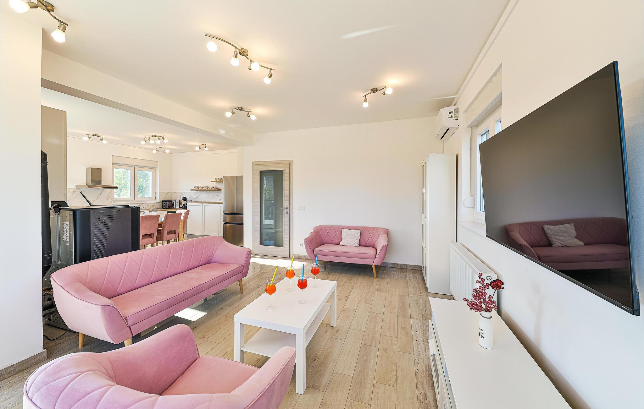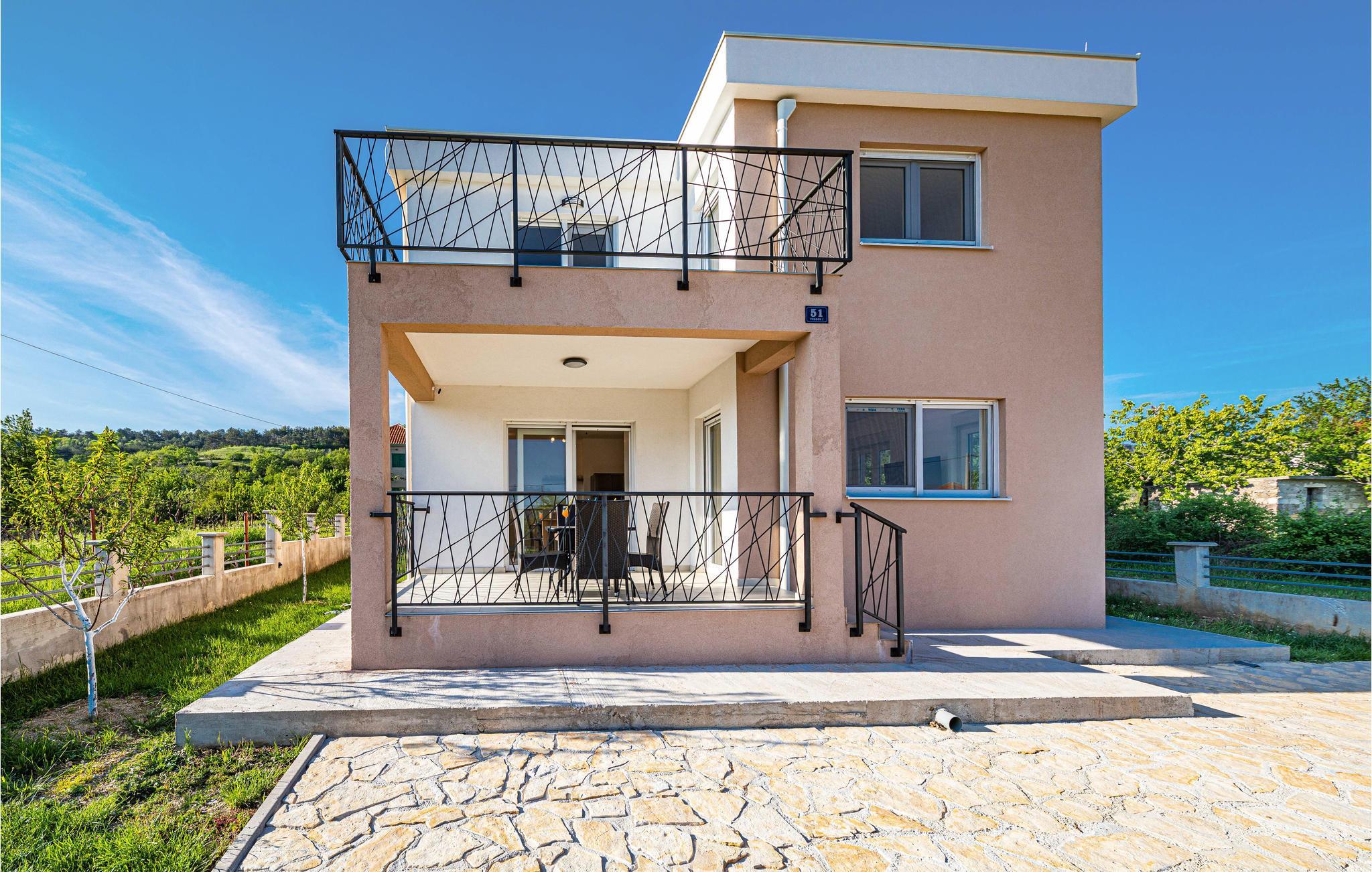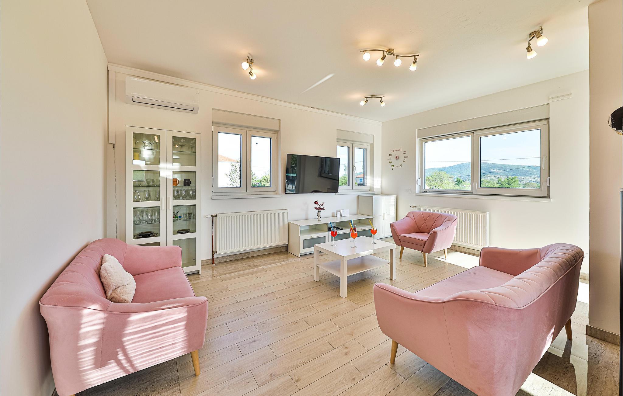Dette feriehus ligger smukt i Splits bakkede bagland. Indenfor kan I forvente et interiør af høj kvalitet, der giver et lyst og smagfuldt indtryk. Værelserne er fordelt på to etager og byder på plads, komfort og underholdning for op til to familier.