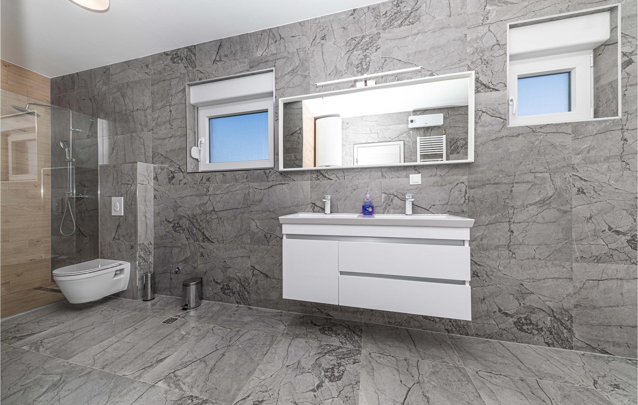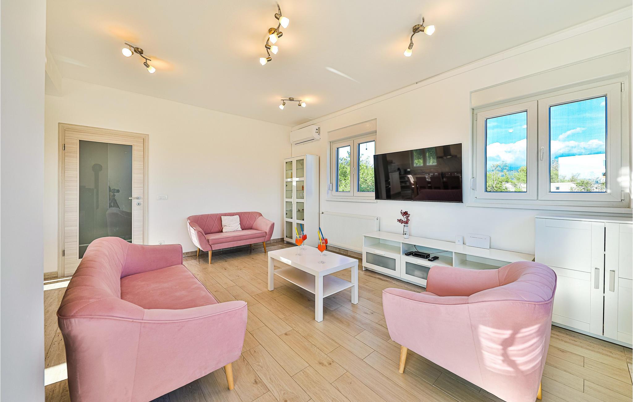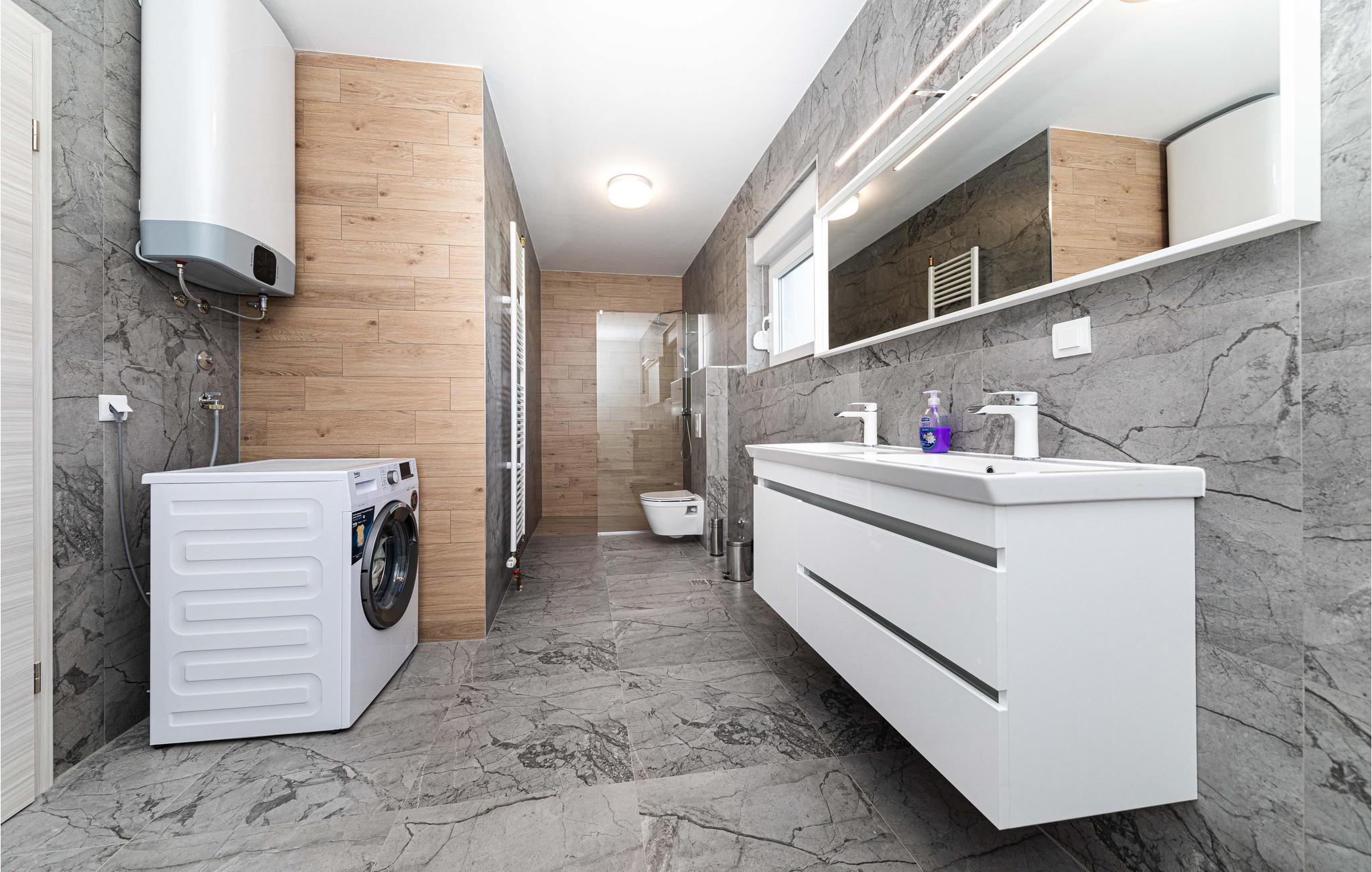 Dette feriehus ligger smukt i Splits bakkede bagland. Indenfor kan I forvente et interiør af høj kvalitet, der giver et lyst og smagfuldt indtryk. Værelserne er fordelt på to etager og byder på plads, komfort og underholdning for op til to familier.