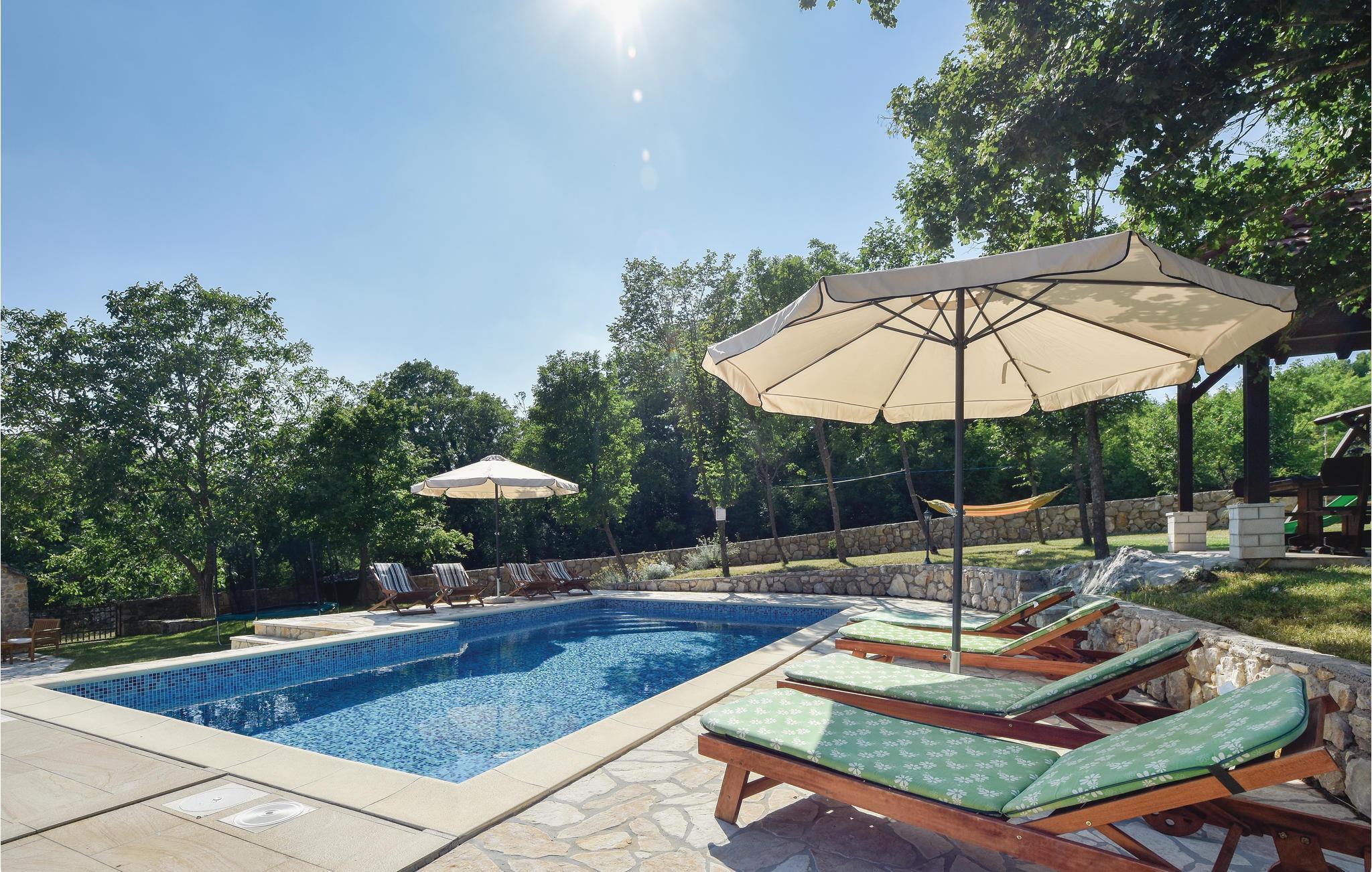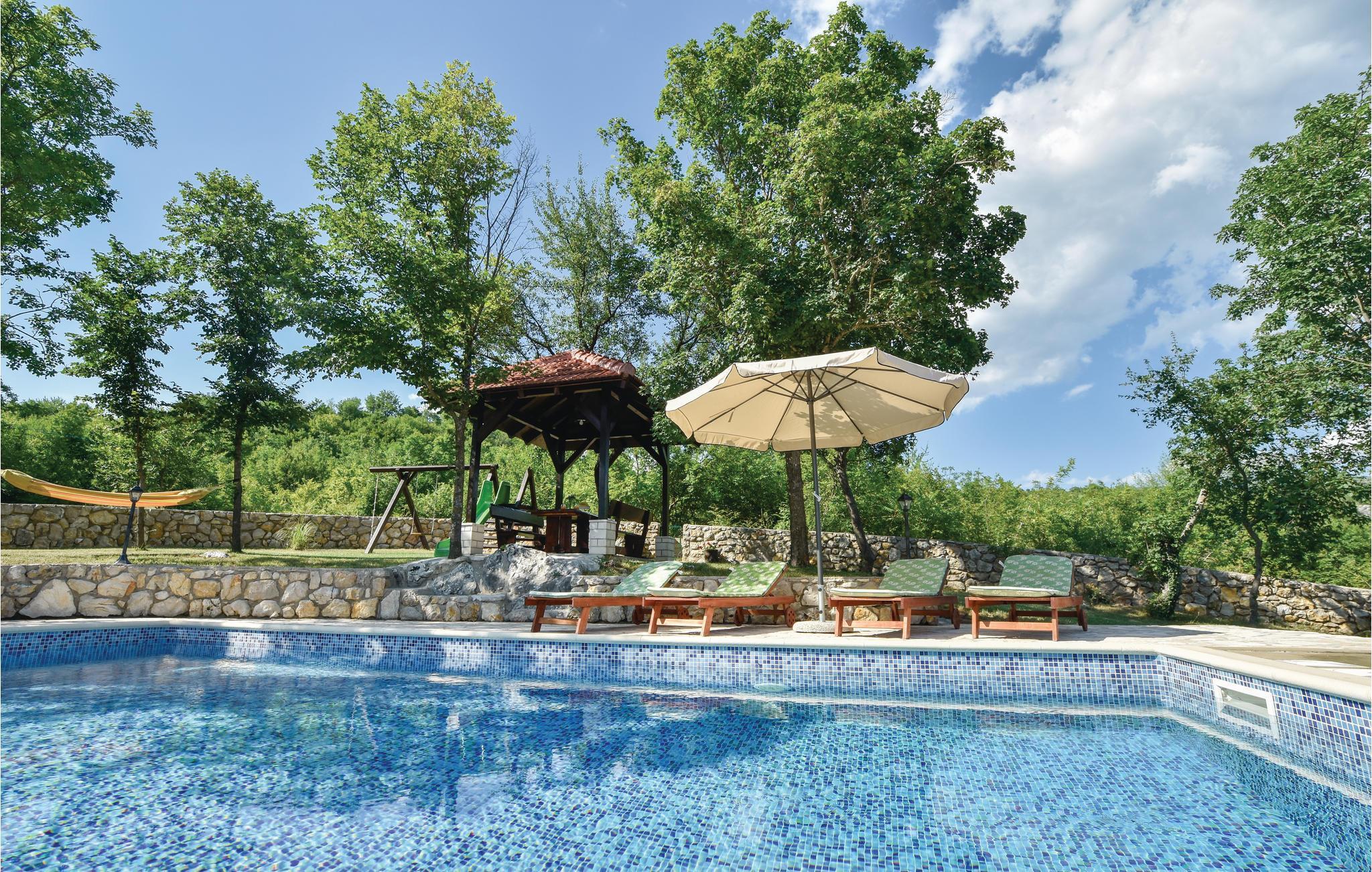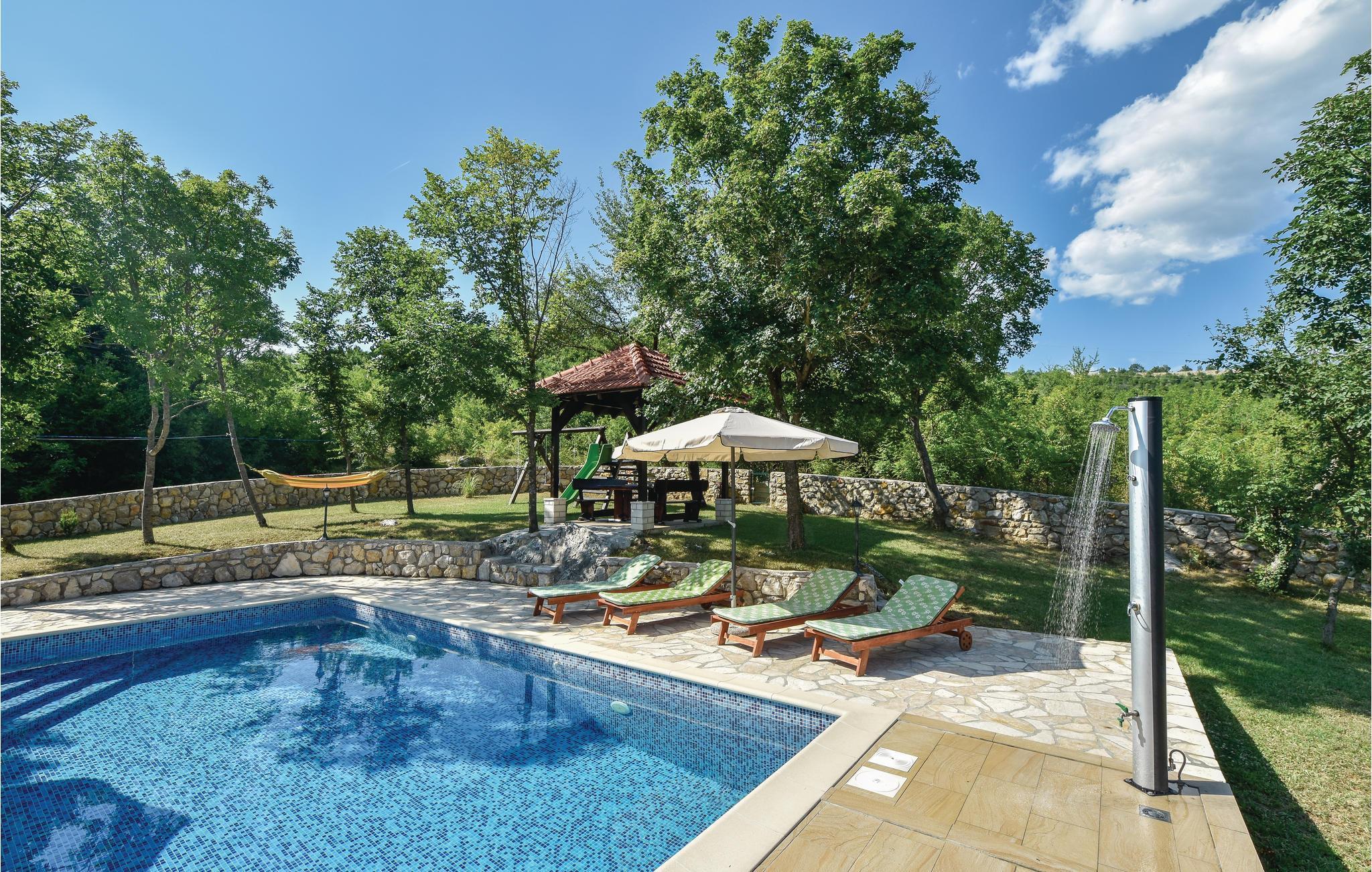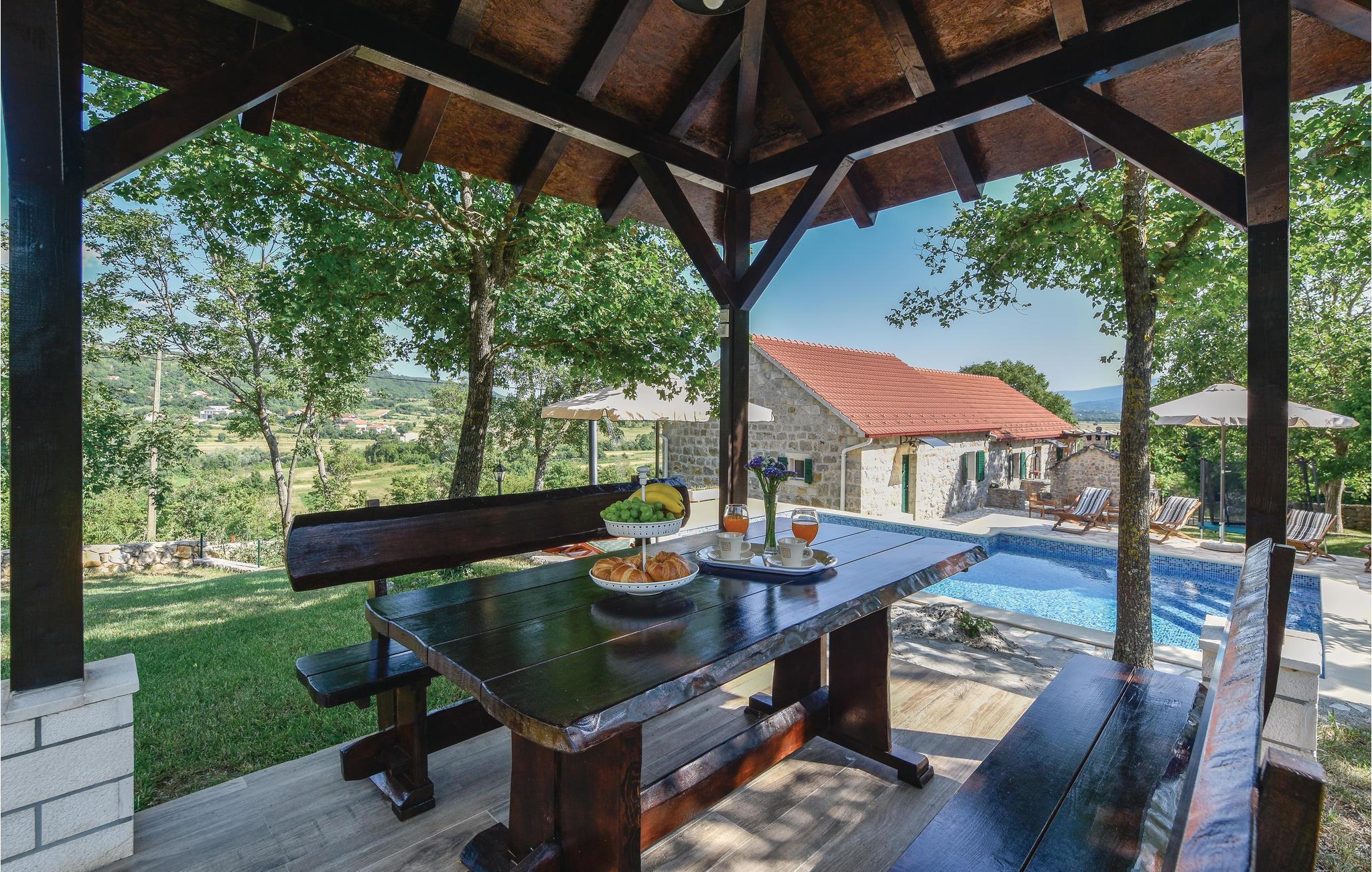På en lille bakke med en utrolig udsigt over det blide landskab venter dette traditionelle feriehus af sten. Under renoveringen er der blevet taget hensyn til at bevare de traditionelle elementer, der sørger for en indbydende stemning. Feriehuset består af to særskilte lejligheder, der er forbundet over en terrasse, så huset er oplagt til en ferie med to familier. En taverneagtig stue i stueetagen samt udendørspoolen bag huset sørger for hyggelige timer under jeres ophold. I nærheden venter der rig afveksling som rafting ved floden Cetina, bad i Perucasøen med sandbredde, paragliding på bakken samt rideundervisning i rideklubben ved siden af. Der er kun omkring 40 km til havet, ligesom til den nærmeste kystby Split, der er udmærket af mange mindesmærker, der vidner om regionens rige historie.