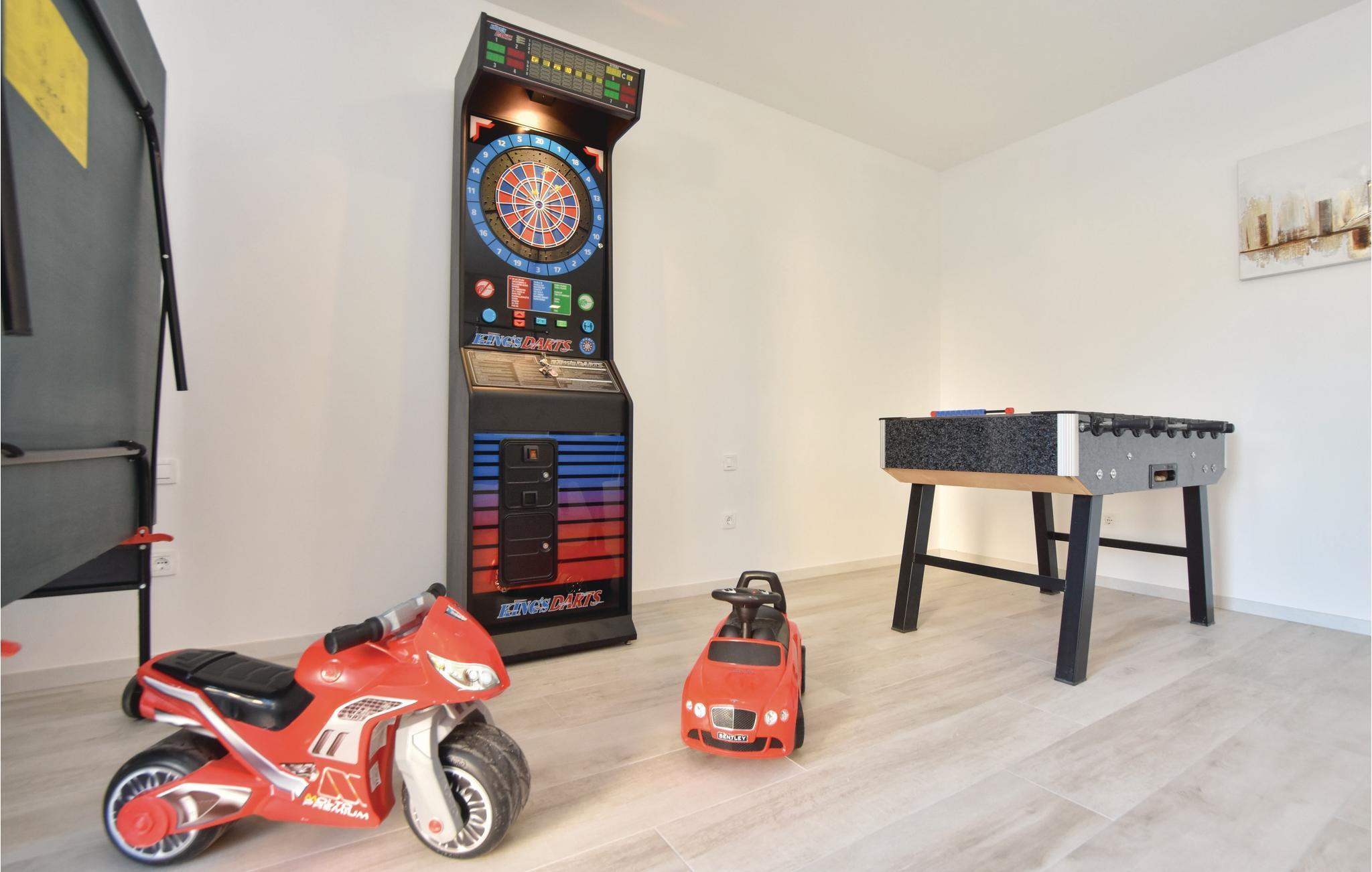Dette dejlige feriehus ligger i Karakašica, en lille by i Dalmatinska zagora. Etagerne har ydertrapper. Huset er udstyret med alt, der gør jeres ferie til en hyggelig og afslappende oplevelse. I saunaen kan I slappe helt af, mens billard, fussball og darts byder på underholdning i aktivitetsrummet, hvor I kan tilbringe mange sjove timer sammen. Eventyrlystne vandsportsentusiaster og romantiske naturelskere finder deres paradis på floden Cetina.