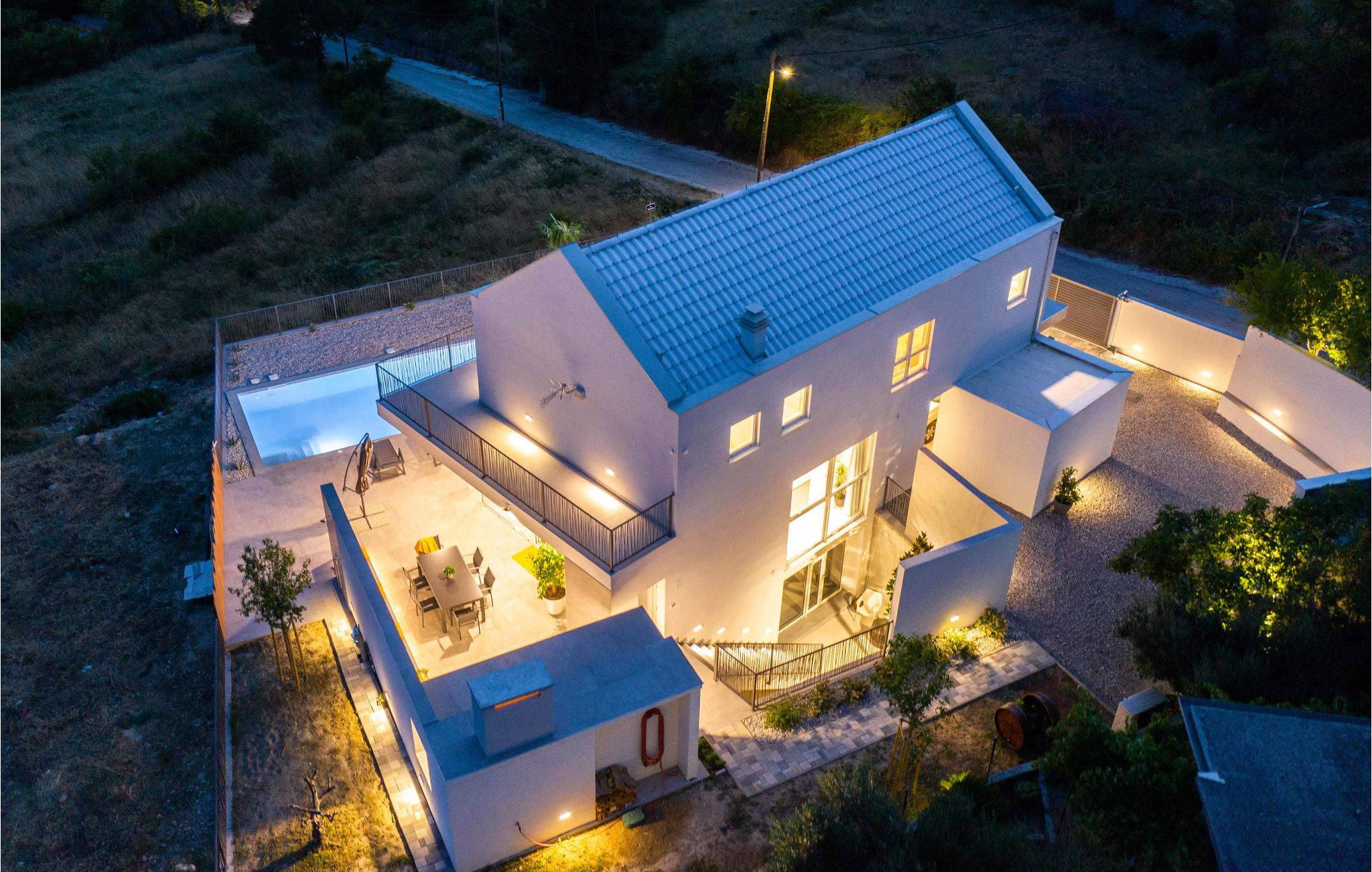 Huset er hjemligt og moderne indrettet; her finder I alt det I behøver til en vellykket ferie når som helst på året. Takket være aircondition er temperaturerne i huset behagelige, selv om sommeren. En smuk udsigt over Split og havet fuldender ferieafslapningen. Om aftenen kan I snakke om dagen i en hyggelig atmosfære ved pejsen.