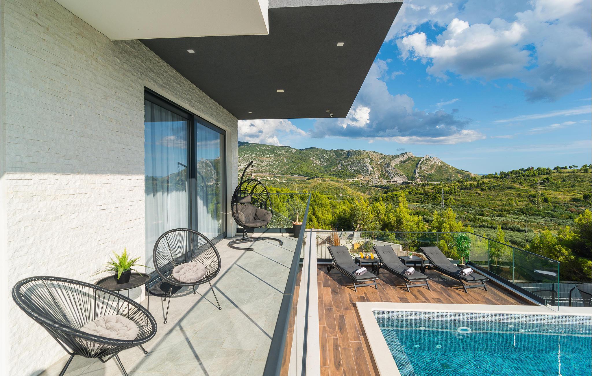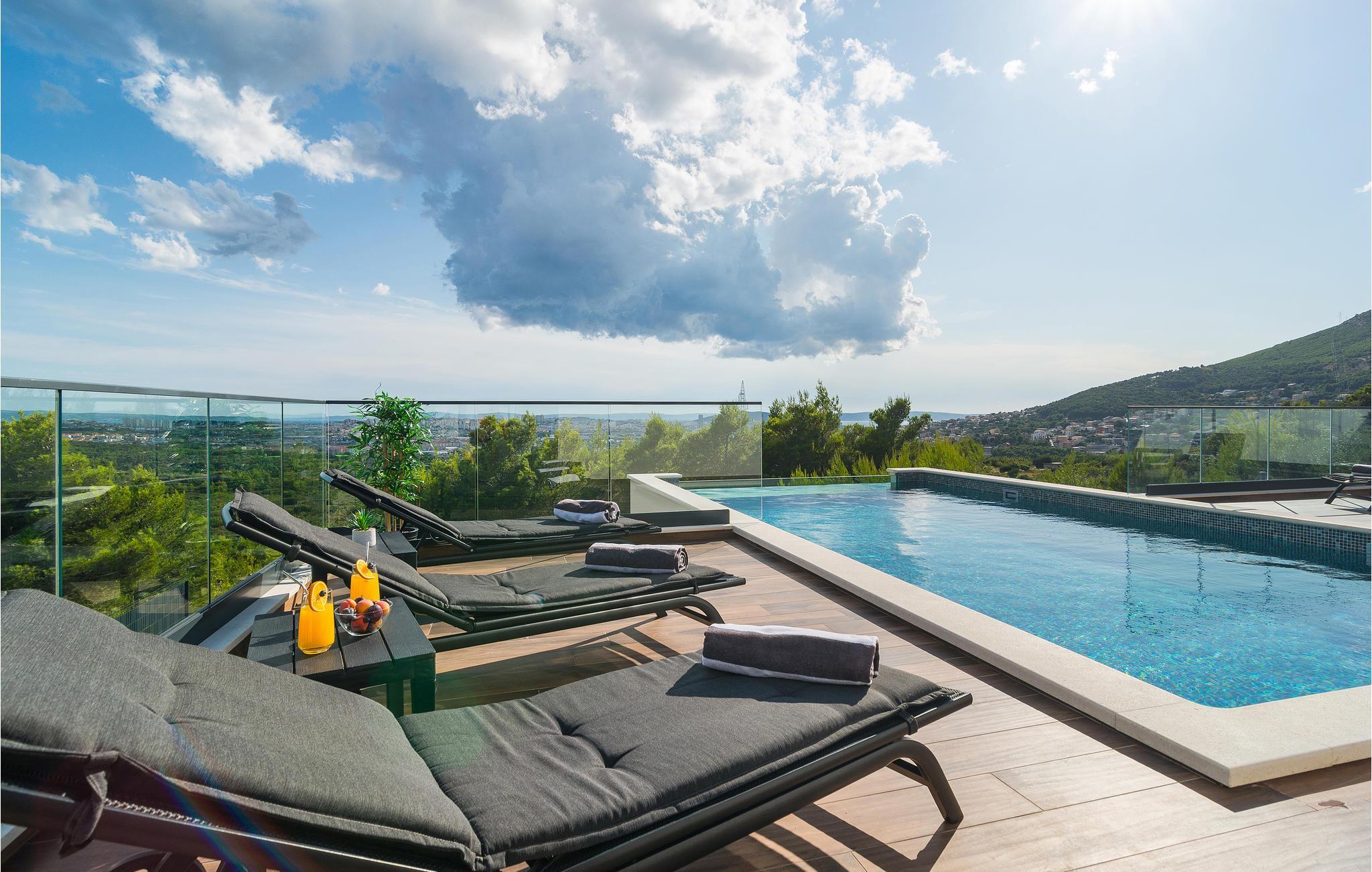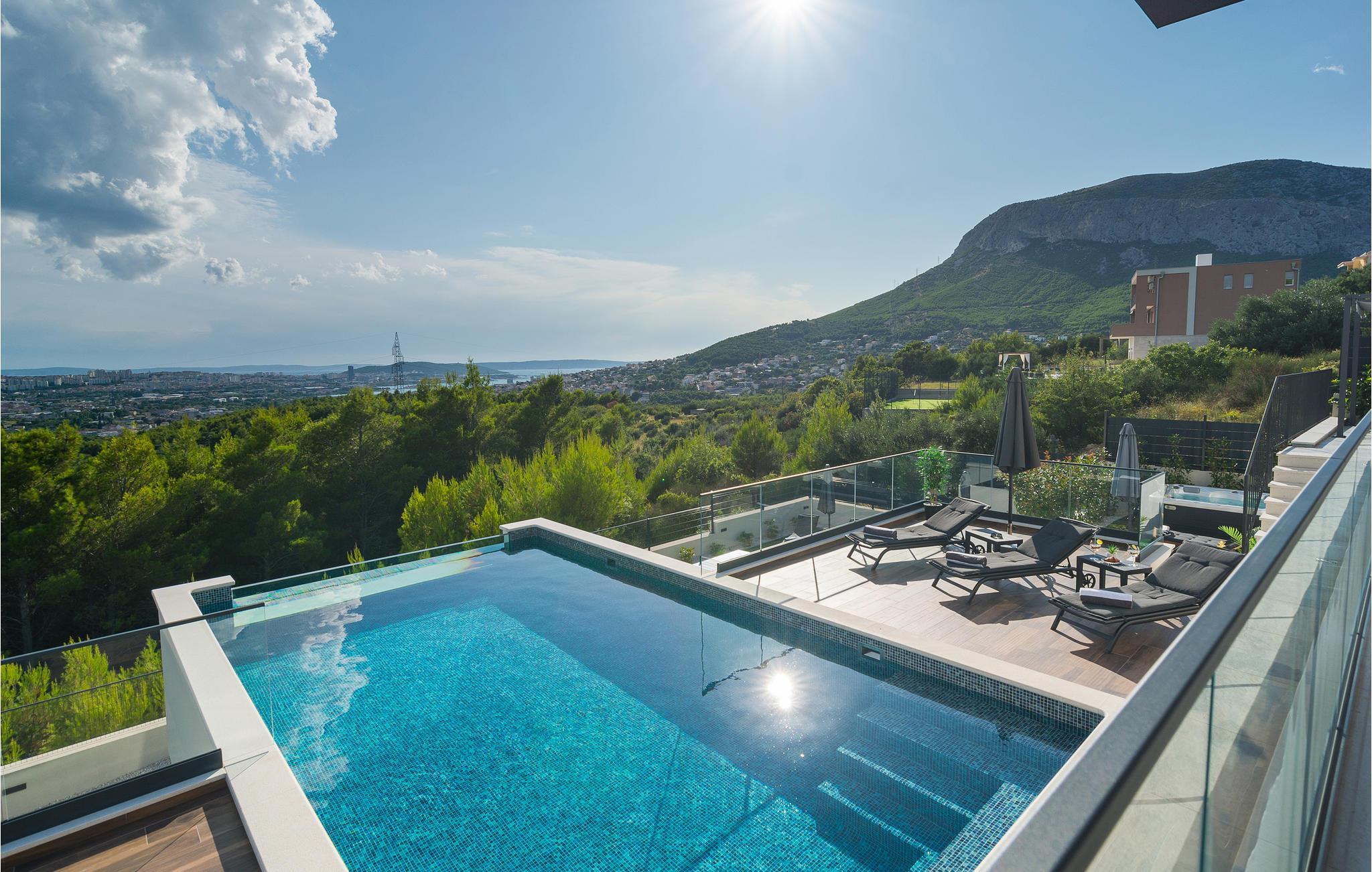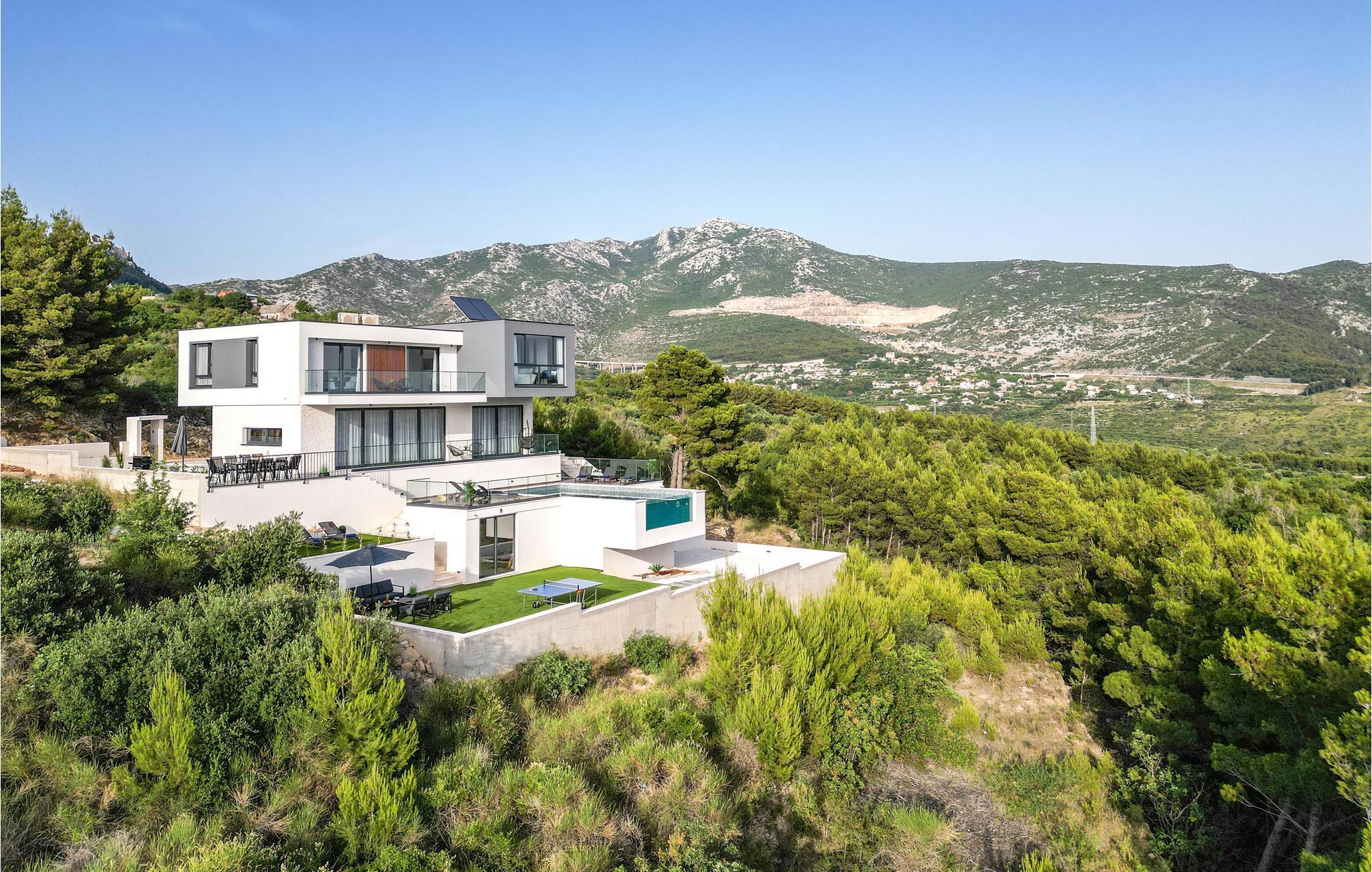 Denne storslåede villa med pool ligger ved foden af Klis-fæstningen, hvorfra der er en uforglemmelig panoramaudsigt over byen og de omkringliggende øer. Den luksuriøse indretning og de forskellige tilbud gør huset til det perfekte valg til jeres ferie. Her får I det perfekte sted at slappe af, da I befinder jer på en privat skovejendom uden naboer.