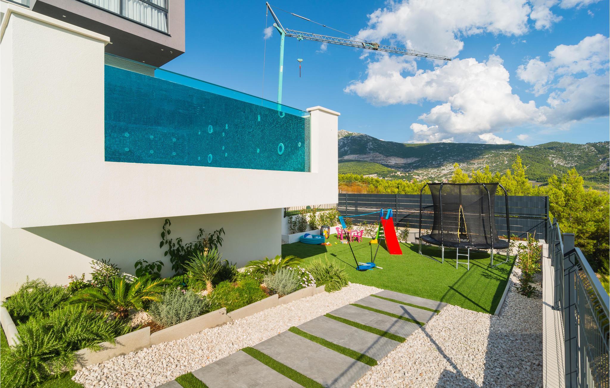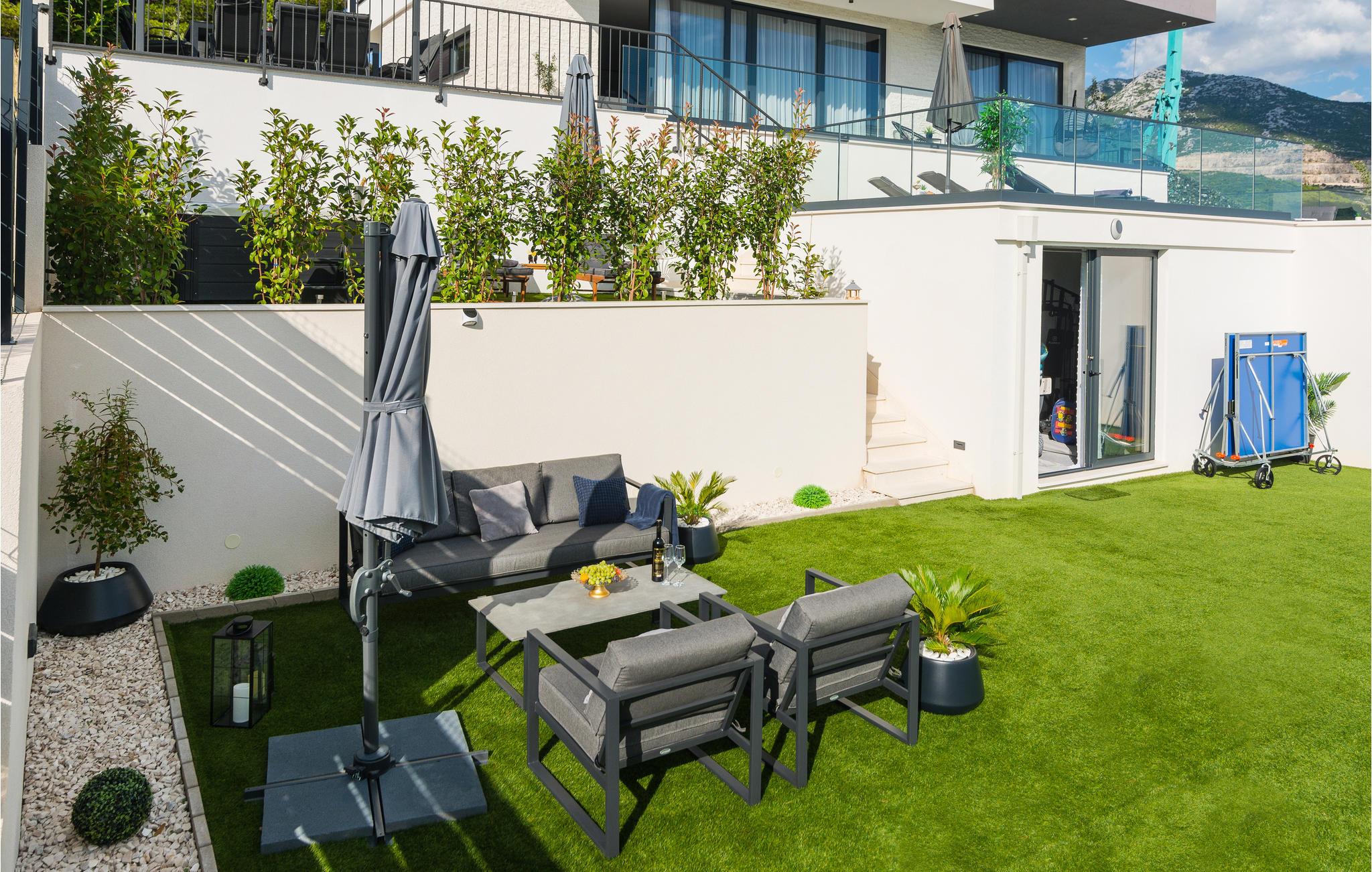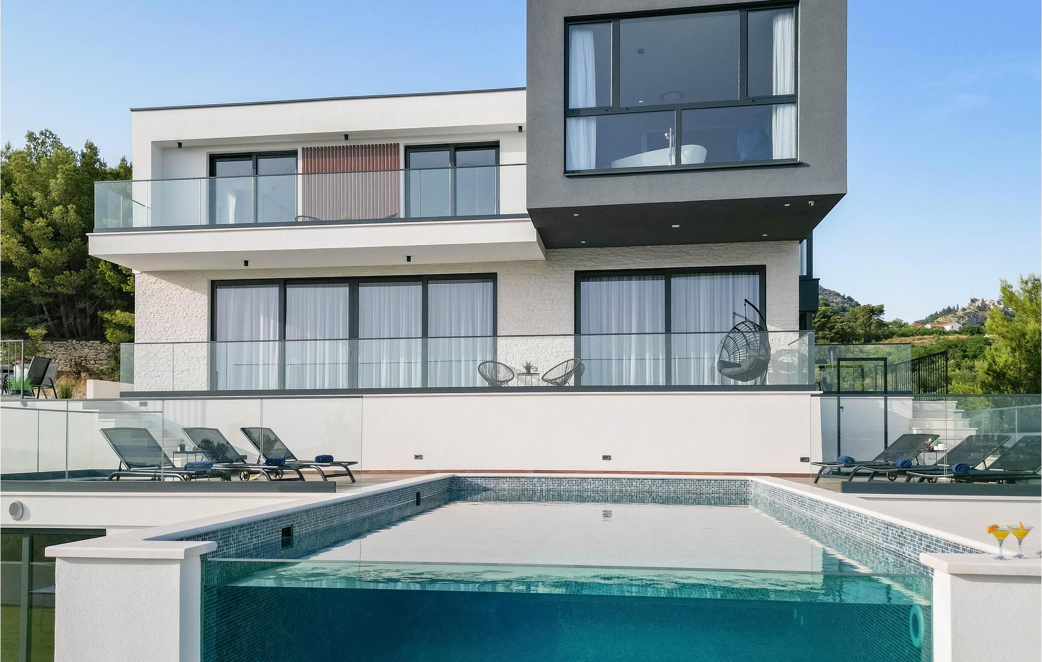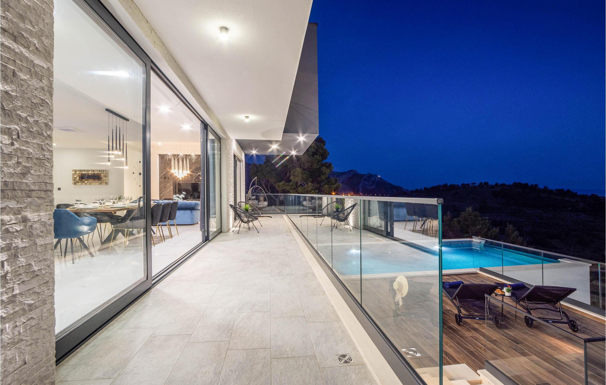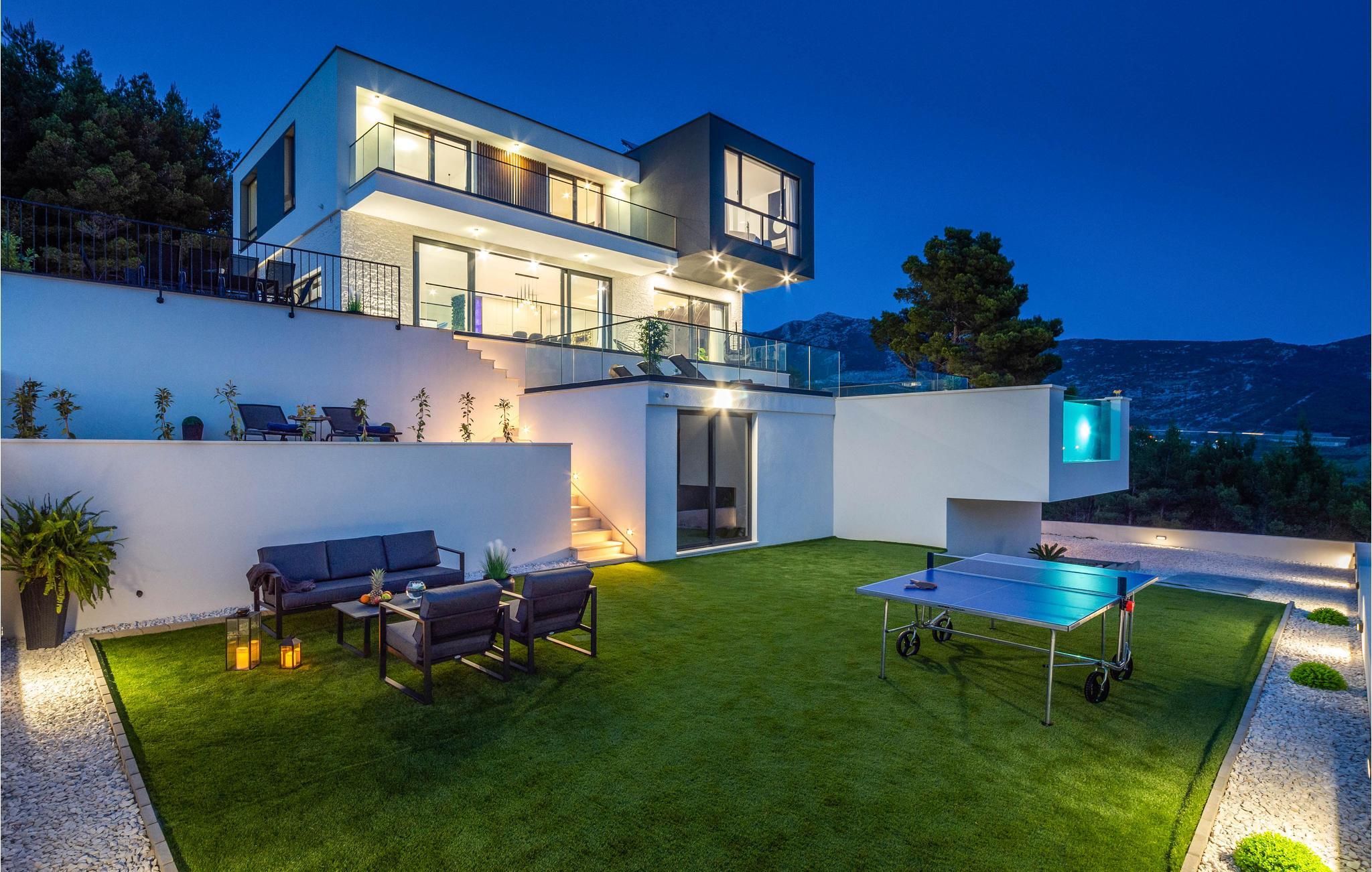 Denne storslåede villa med pool ligger ved foden af Klis-fæstningen, hvorfra der er en uforglemmelig panoramaudsigt over byen og de omkringliggende øer. Den luksuriøse indretning og de forskellige tilbud gør huset til det perfekte valg til jeres ferie. Her får I det perfekte sted at slappe af, da I befinder jer på en privat skovejendom uden naboer.