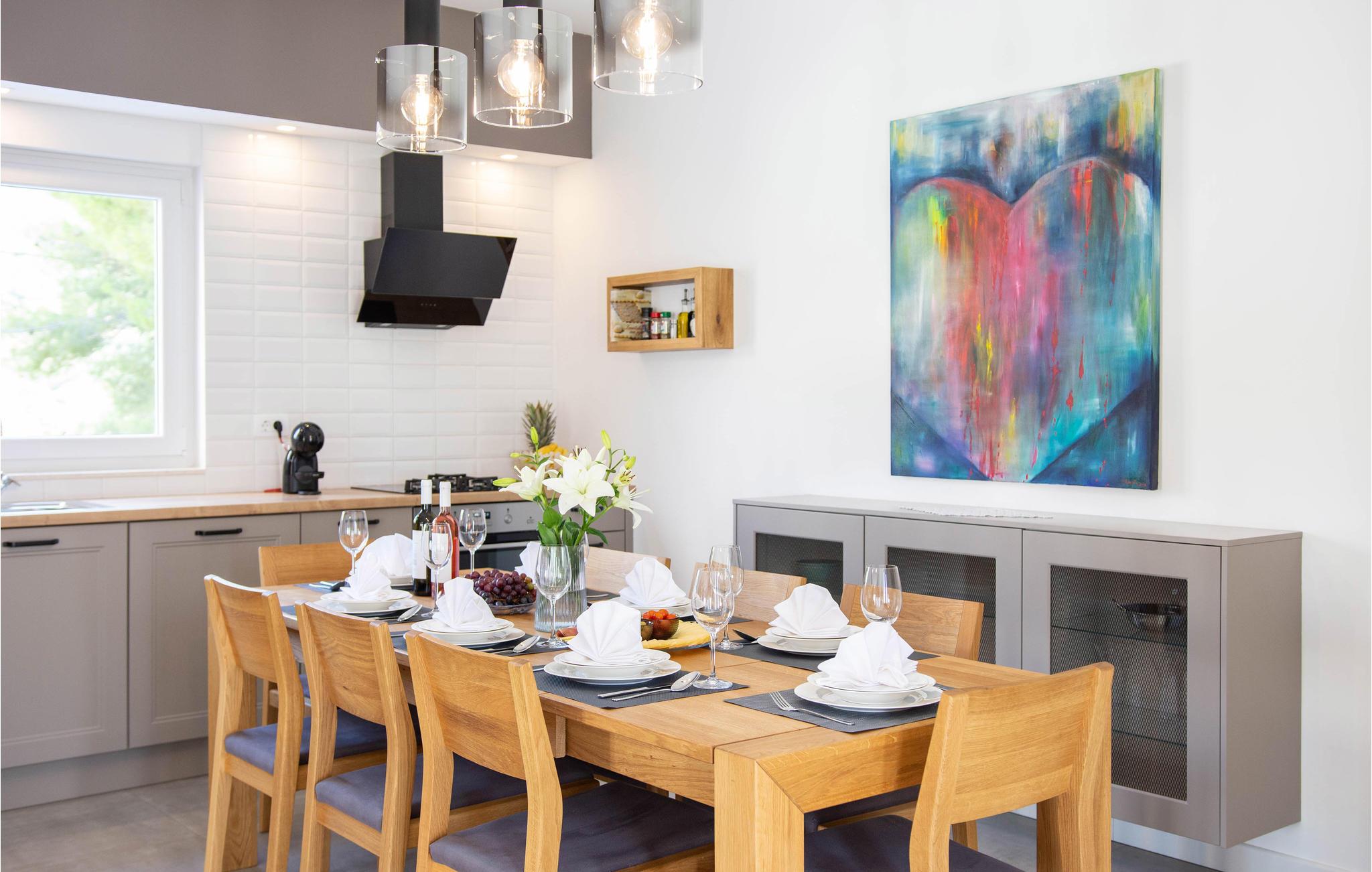 Træd ind i et moderne feriehus med et behageligt sofahjørne, hvor I kan slappe af og blive hængende. Her kan I slå jer ned med jeres medrejsende og have spændende samtaler eller spille kortspil. En fredelig oase, hvor I kan føle jer hjemme og nyde en velfortjent pause fra hverdagen. Slap af på balkonen eller ved poolen, mens I nyder solen og den skønne natur.