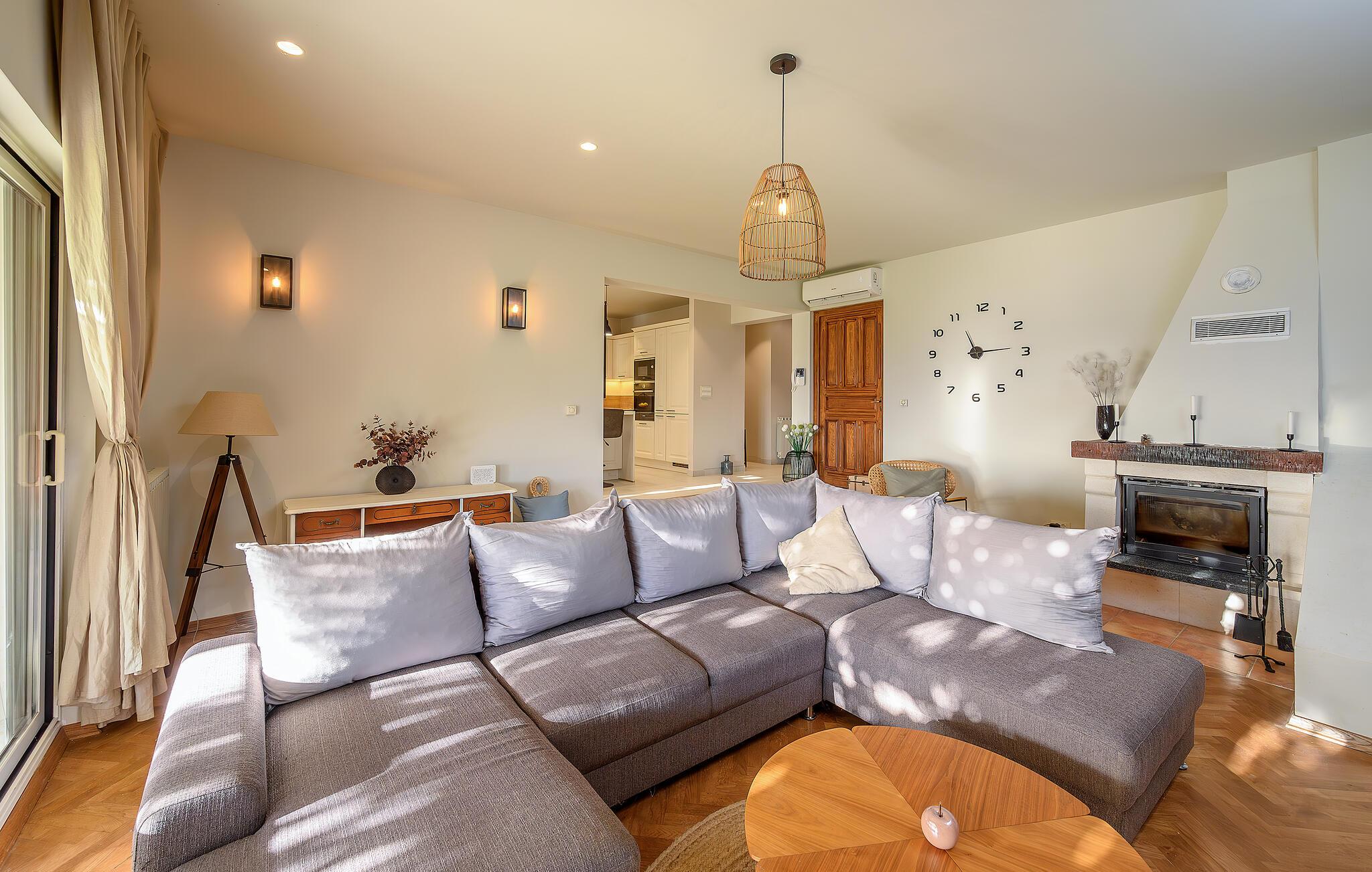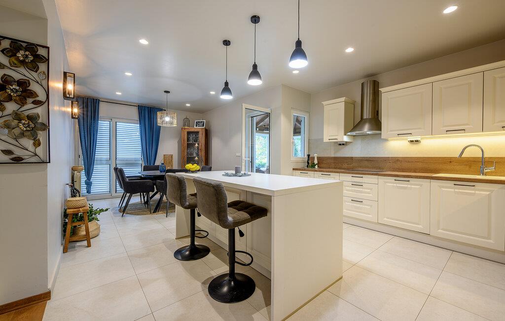 Villaen i Solin giver jer en utrolig oplevelse af det dalmatiske paradis. Beliggende på en bakke tilbyder den panoramisk udsigt over Adriaterhavet, øerne og den fascinerende by Split. I umiddelbar nærhed af denne luksusoase venter der jer smukke strande med krystalklart vand, ideelle til afslapning og solbadning. Også historieinteresserede vil finde deres interesse her, da der kun er få skridt til Diokletianspaladset, et af de mest imponerende romerske bygninger. Den gamle by Salona, det tidligere romerske centrum i Dalmatien under kejser Diokletian, tilbyder jer en unik arkæologisk oplevelse med ruinerne af et amfiteater, bade og et forum. Floden Jadro flyder stille gennem dette område og giver det en naturlig charme med sit klare vand og de grønne landskaber. Floden vil være en oase af ro og afslapning for jer og bidrage til en unik oplevelse, der forbinder historie, kultur og naturskønhed. Nærheden til seværdigheder som Klis-fæstningen og Marjan-skoven samt dagsudflugter til Krka Nationalpark, Plitvice-søerne og meget mere beriger jeres ophold.