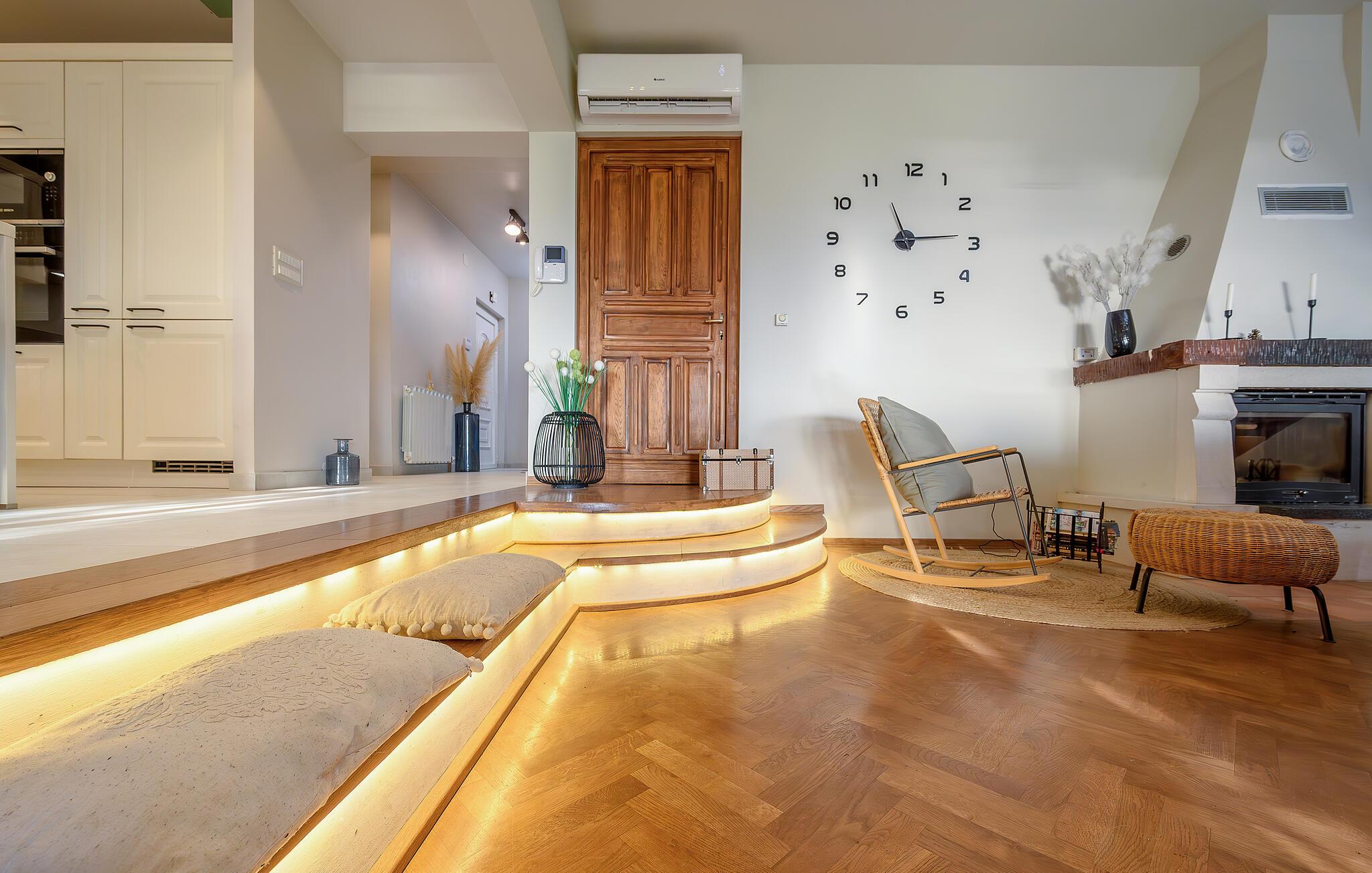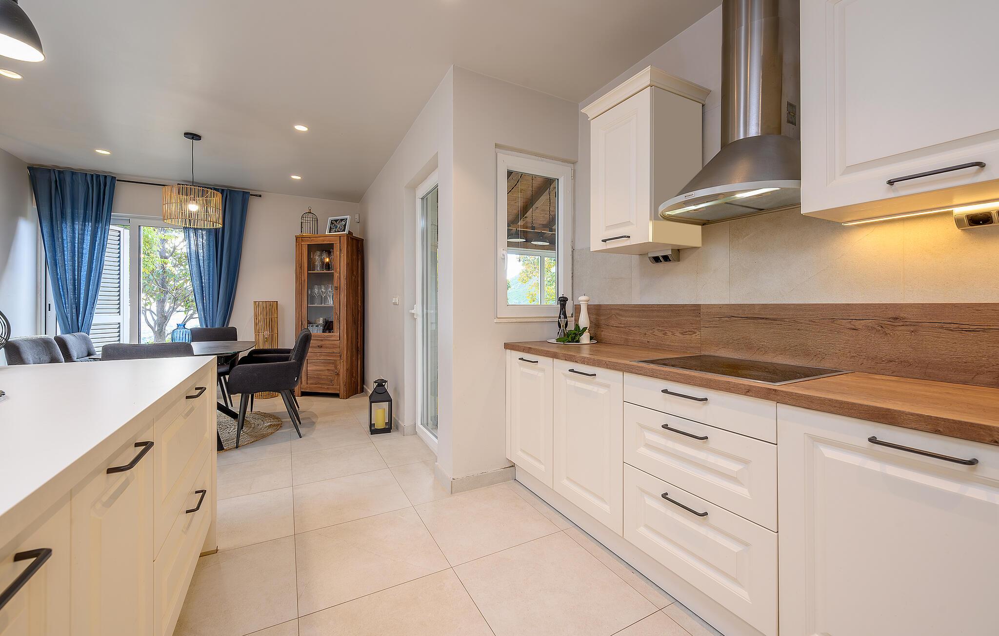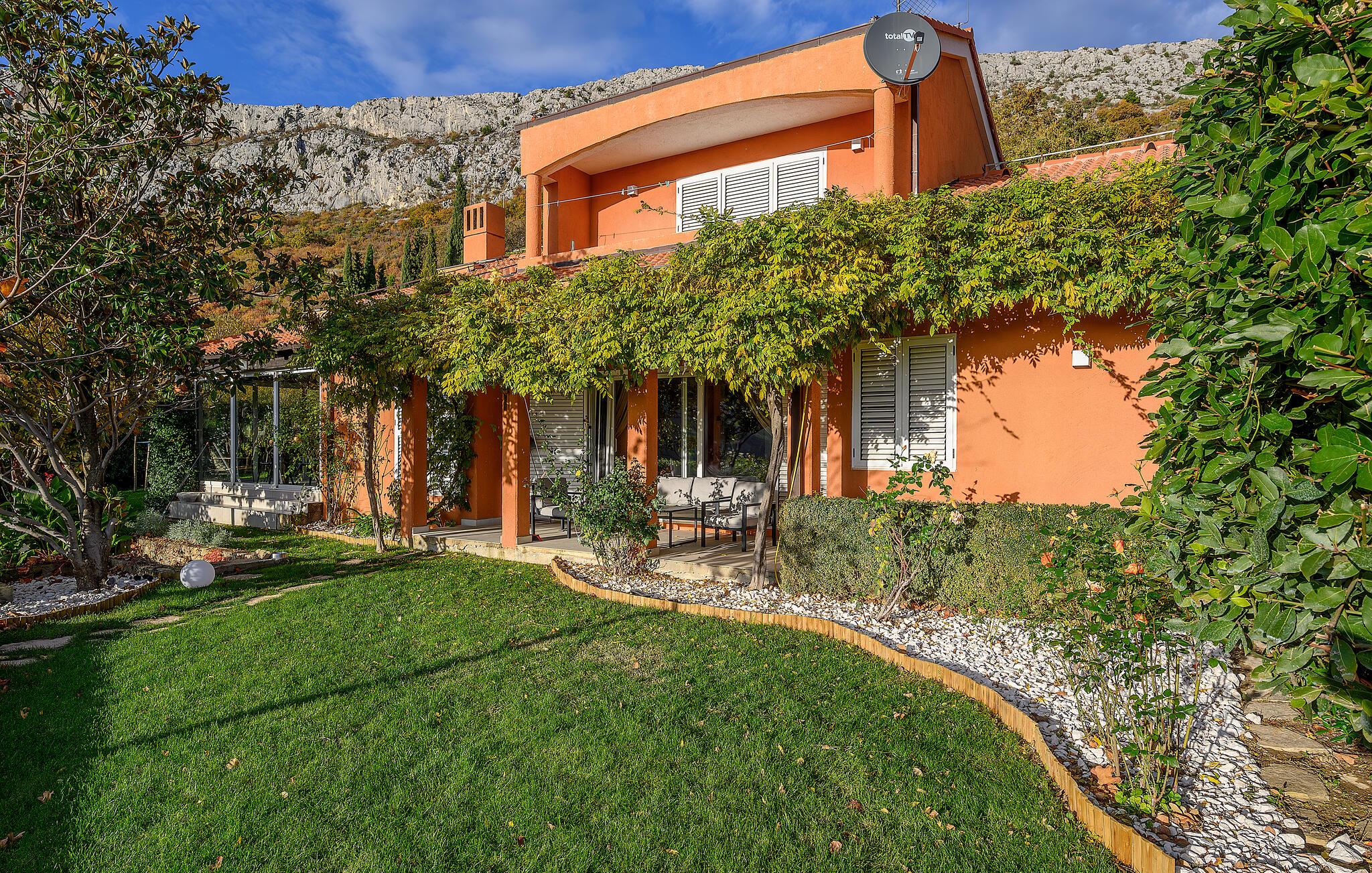 Den luksuriøse villa Euphoria Split, et dalmatisk juvel, tilbyder jer en betagende ferie med en fantastisk udsigt over havet og byen Split. Oplev det perfekte ophold med jeres familie eller vennepar, for det smukke hus opfylder alle ønsker. Nyd det komfortable og hyggelige miljø på to etager og føl jer straks hjemme her. Moderne bekvemmeligheder, en malerisk gårdhave med en spiseplads udendørs og et hovedsoveværelse med terrasse beriger jeres ophold.