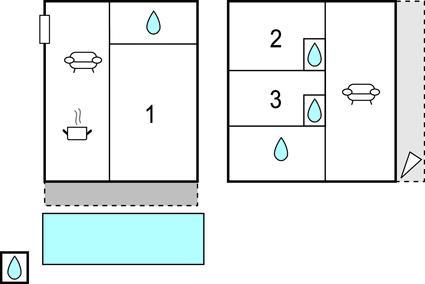 Opholdsstue/køkken 30m2 - 1 Soveplads. (Sofa, madras eller lignende).