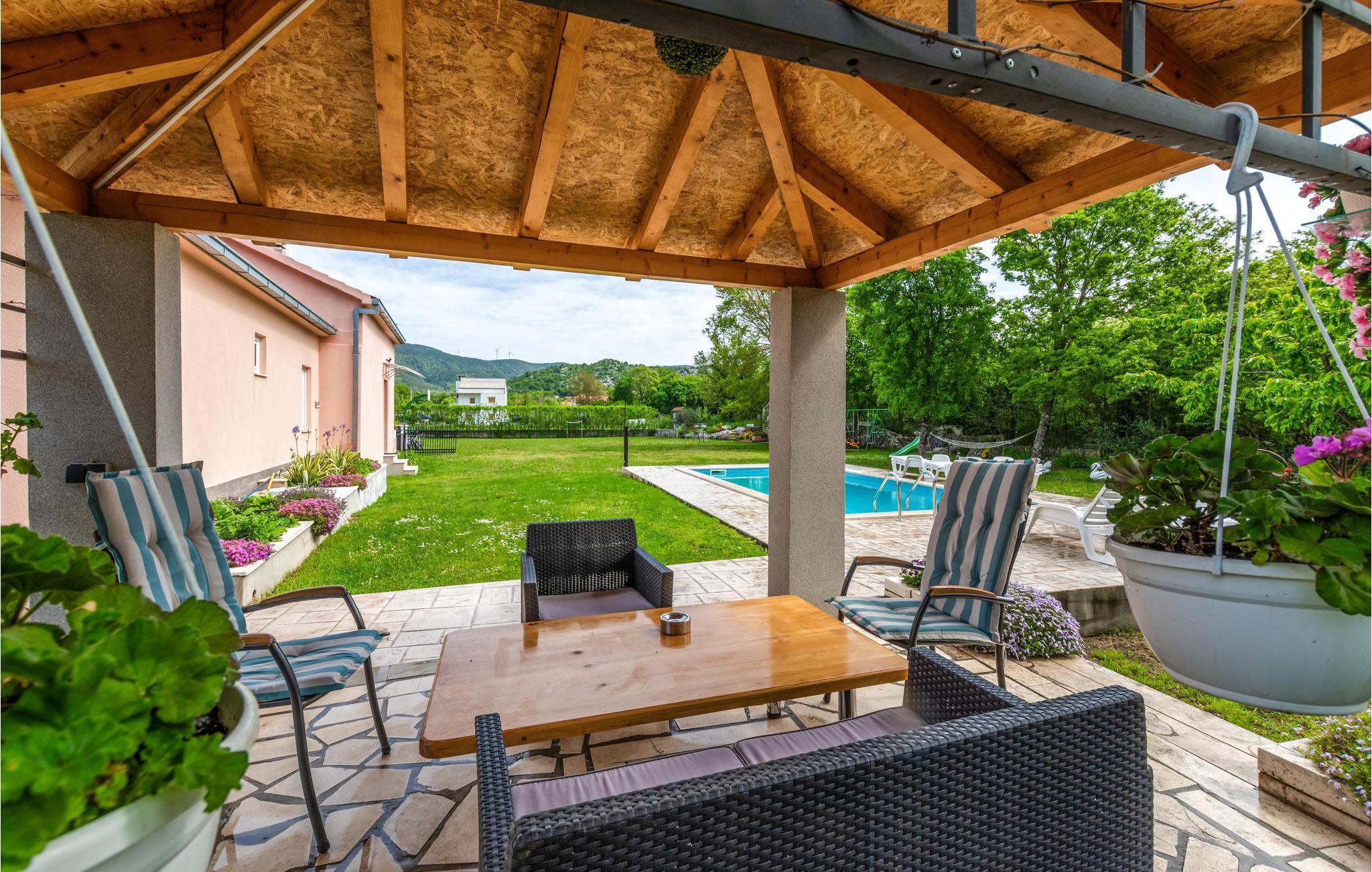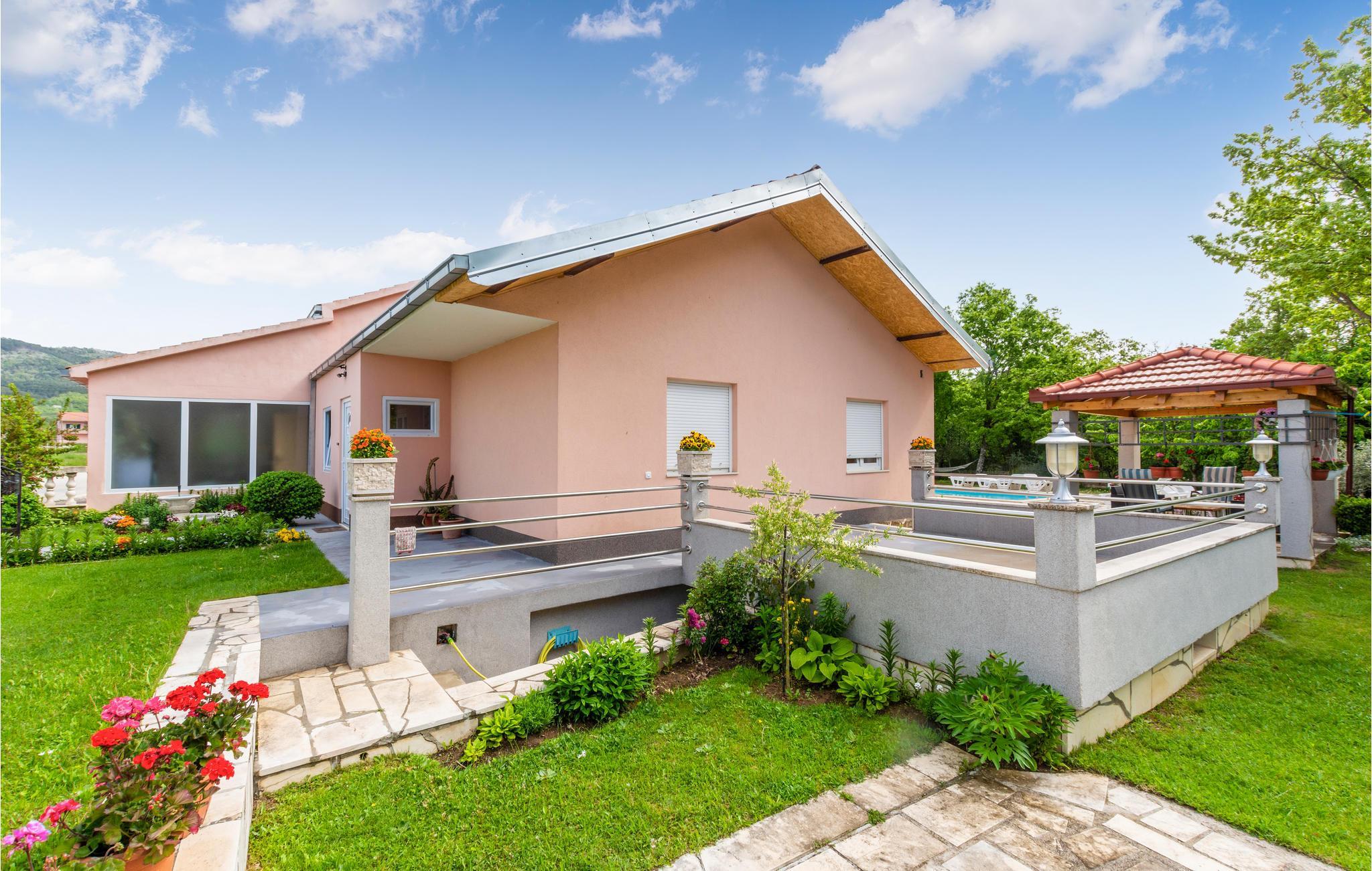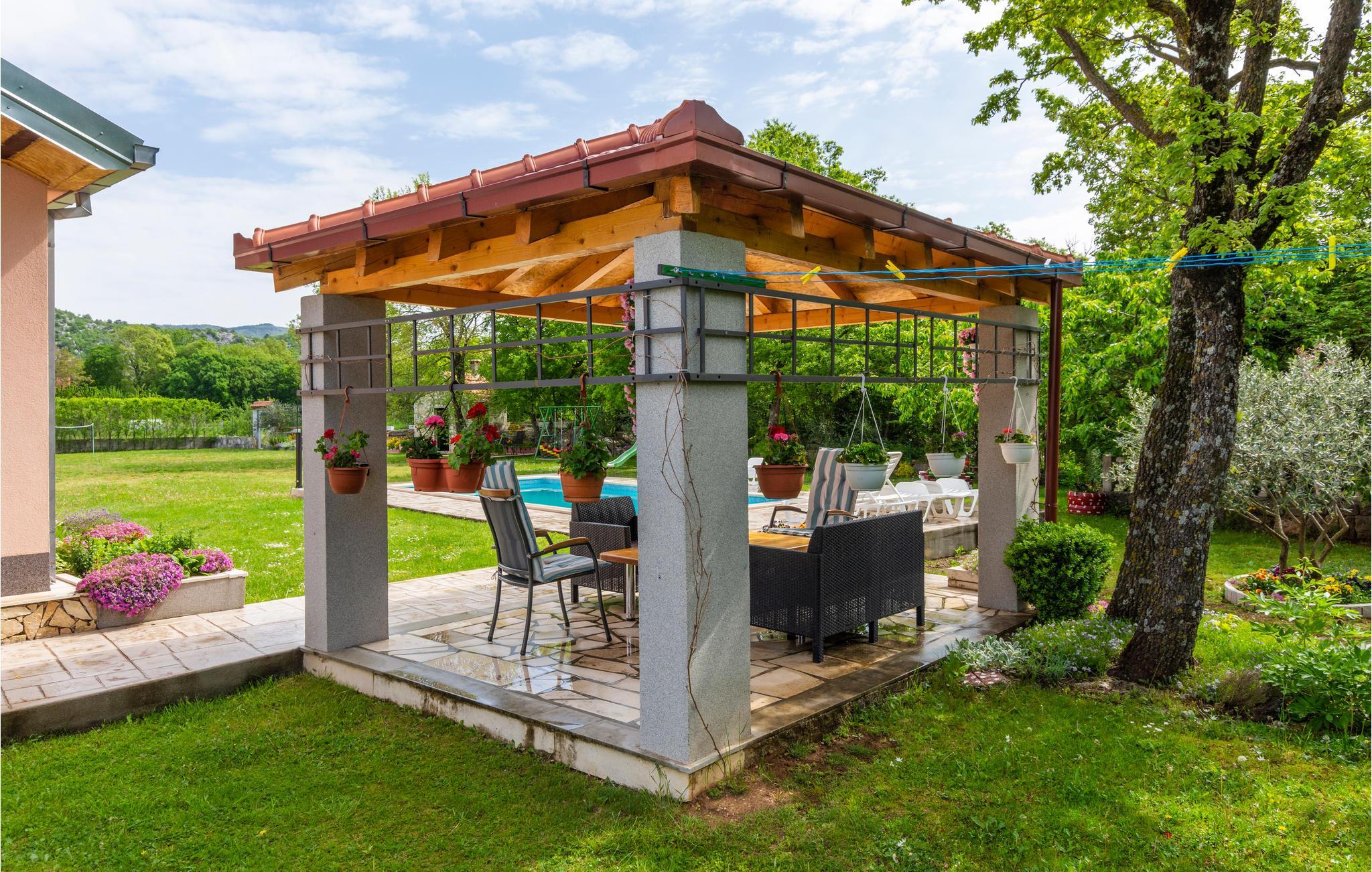 Dette nydelige feriehus med pool er omgivet af blomster, og er ideel til en afslappende ferie langt fra hverdagsstressen. Huset ligger på en stor indhegnet grund, hvor børnene kan lege frit, mens I slapper af ved poolen eller tilbereder lækkerier ved grillen. Opholdsrummene er adskilt fra soveværelserne, og har adgang til haven.
