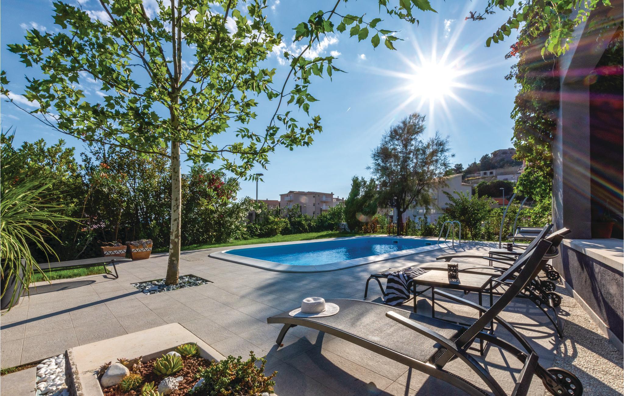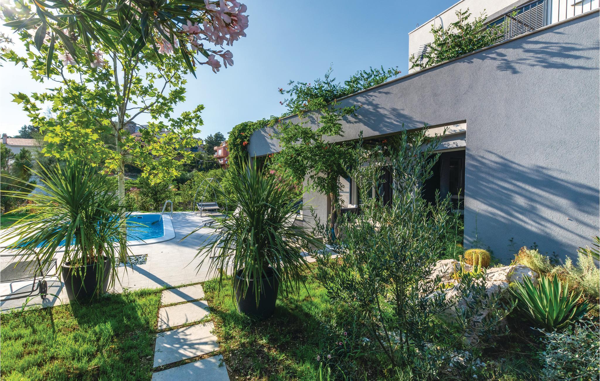 Dette minutiøst indrettede feriehus med en opvarmet pool ligger kun få minutters gang fra stranden og havet i Podstranas rolige omgivelser. En helt perfekt feriebolig, med god plads og komfort indendørs og have med pool og solsenge, frodigt grønt, skønne terrasser med bekvemme møbler og en grill. Kilometerlange skønne kiesstrande med talrige muligheder for at dyrke sport, barer og restauranter lige i nærheden. Berig ferie med en tur i bjergene til byen Gornja Podstrana. Byen Split, med en rig kultur og historie, der er med på UNESCOs verdensarvsliste, ligger kun få minutter væk i bil. Vi anbefaler også at tage på udflugt til de nærliggende øer Brac, Hvar og Vis.