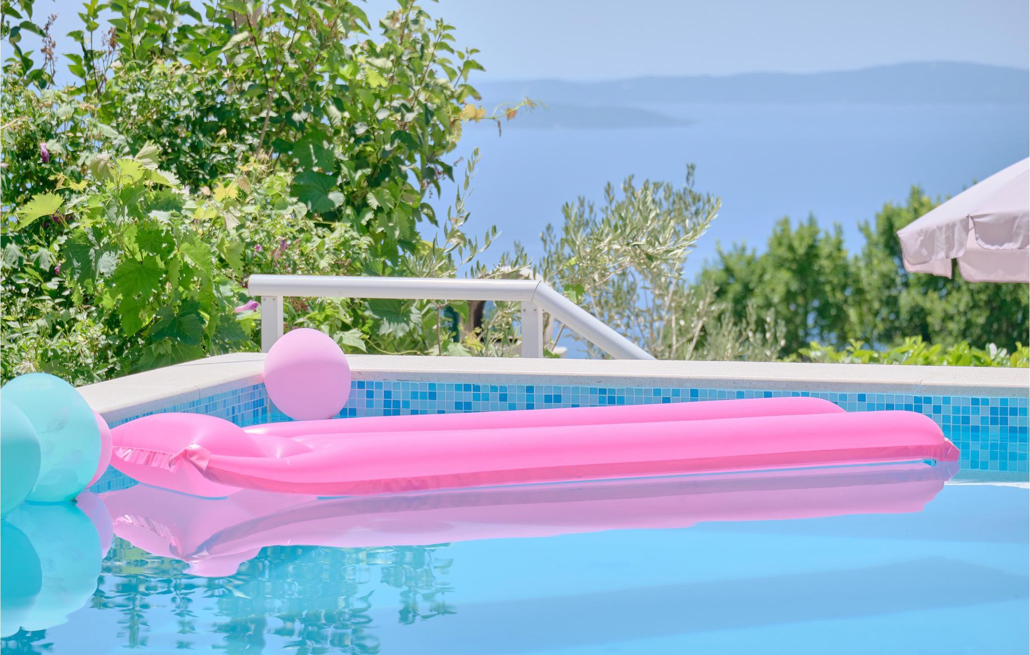 Skønt feriehus, hvor I kan se havet fra poolen.