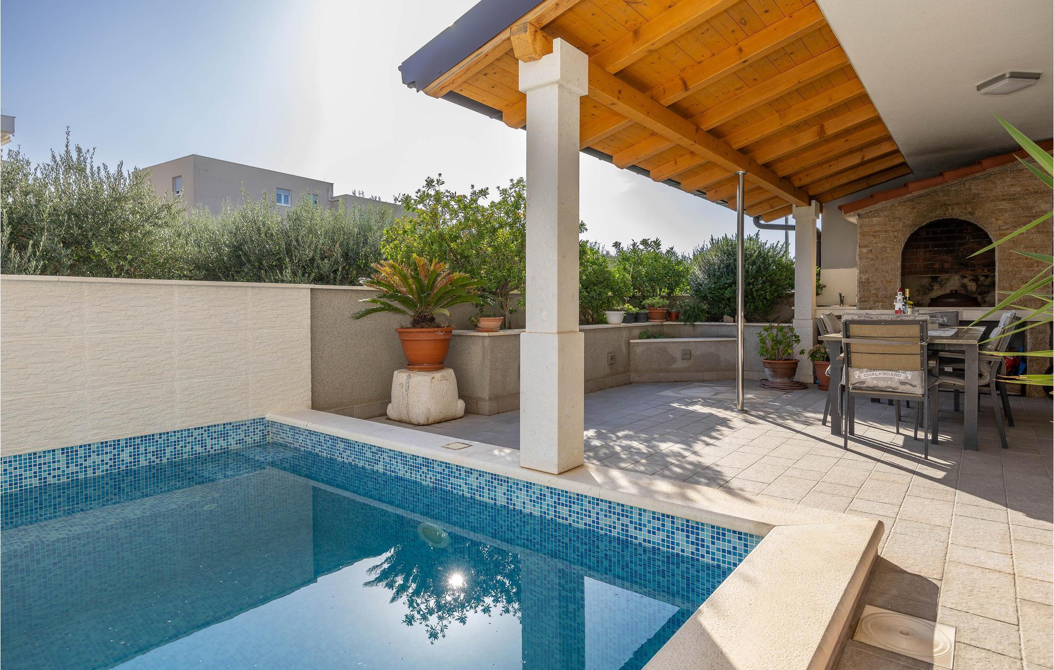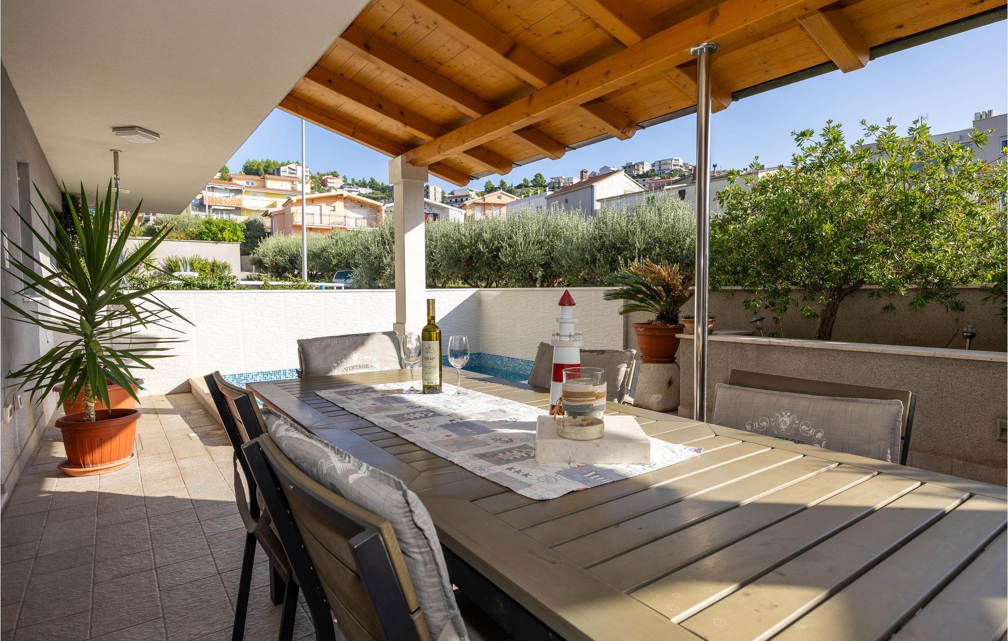 Denne godt udstyrede ferielejlighed, ligger i en rolig del af Podstrana, en by med skønne strande ud til det klare hav – oplagt til afslappede badedage. Lejlighedens to etager er forbundet med indre trappe. I stueplan er der køkken, badeværelse og en stor stue hvorfra der er udgang til terrassen med jeres egen pool, mens der er to soveværelser og badeværelse på første sal. I byen Split er der mange kulturelle og historiske seværdigheder, et interessant natteliv og mange arrangementer om sommeren, som vil sætte prikken over i’et i en skøn ferie. Efter en dejlig aftentur ad havnepromenaden, forkæl jer selv med et lækkert måltid på en af de mange restauranter og afslut med en god kop kaffe eller en drink i en af de mange strandbarer.