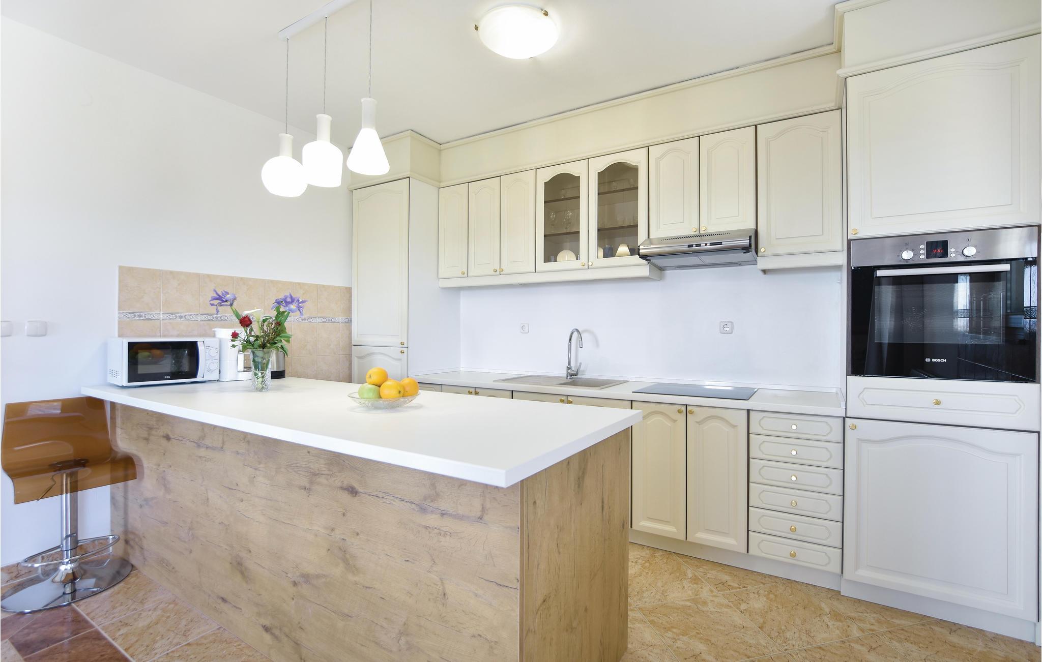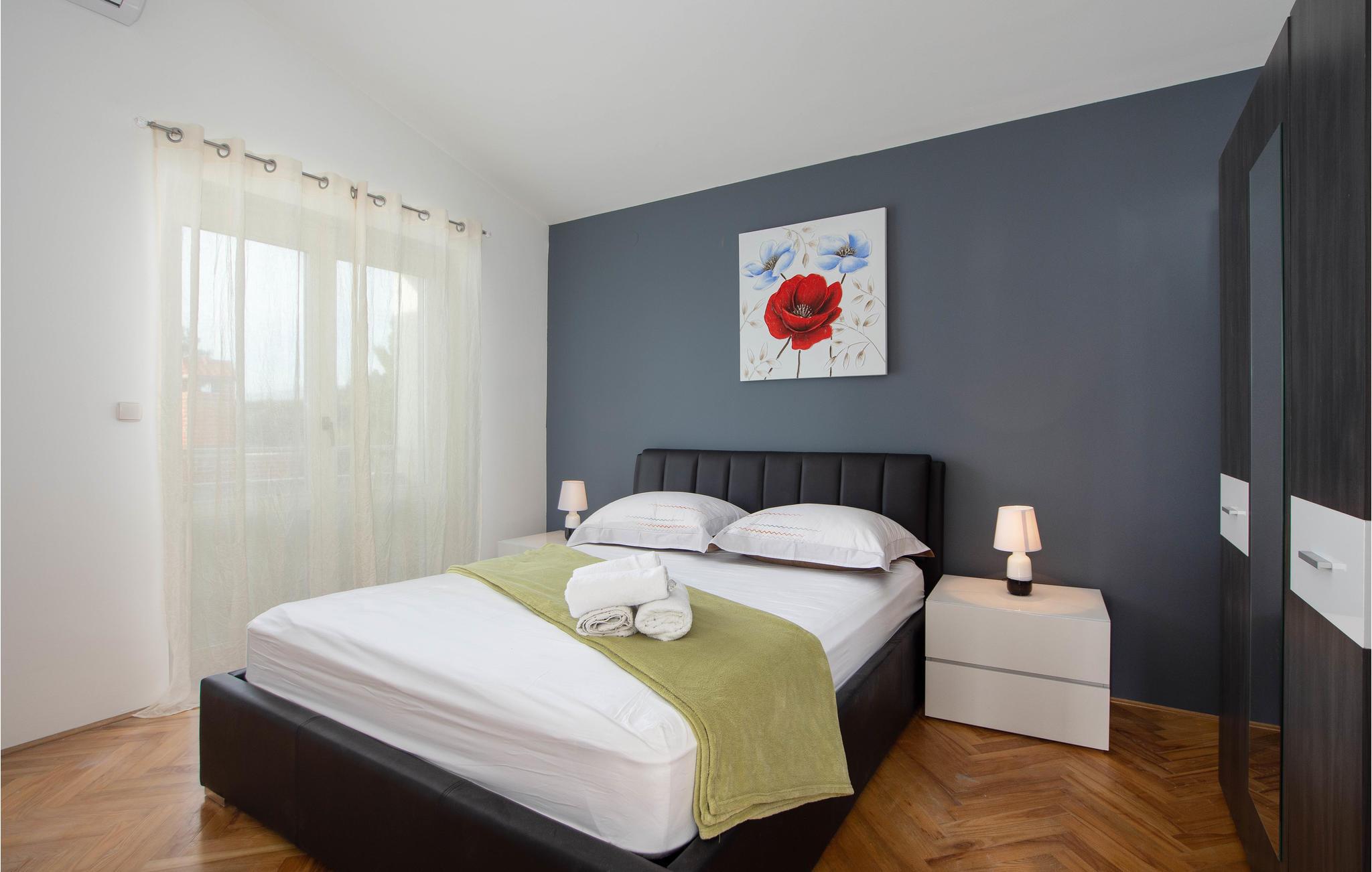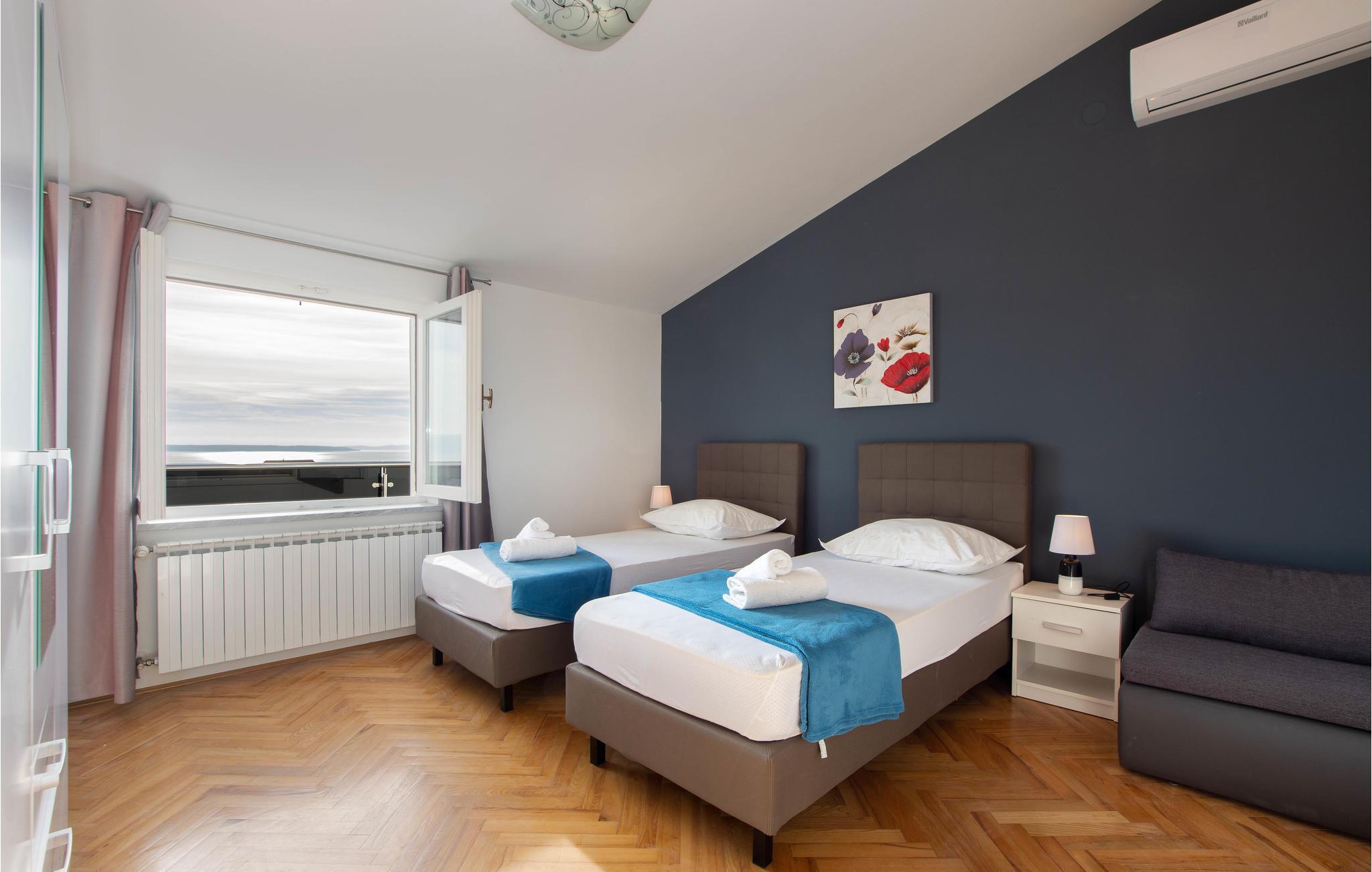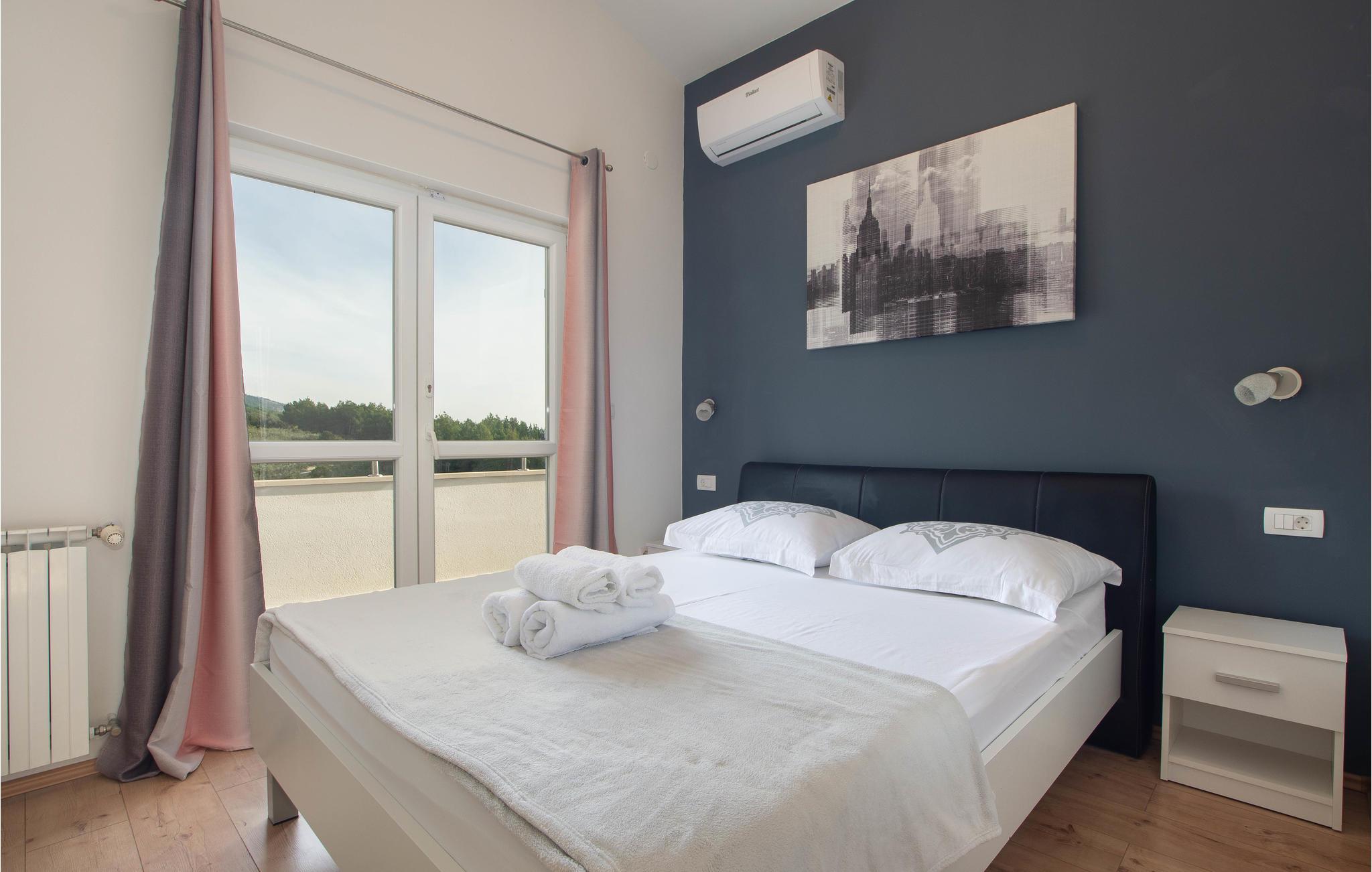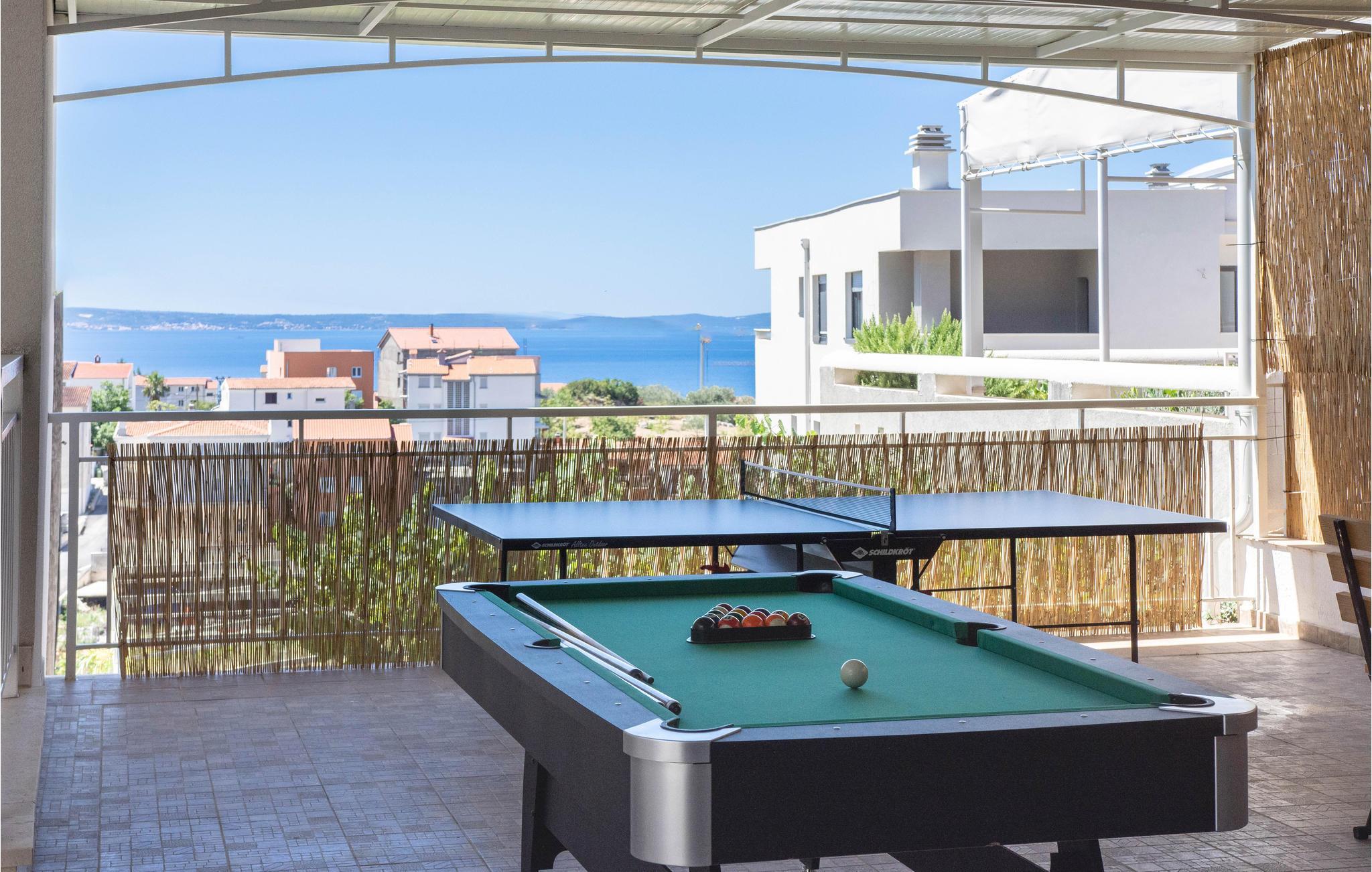 Dette rummelige feriehus ligger i den lille by Podstrana i nærheden af Split. I huset er der to ferielejligheder der er forbundet af indre trapper. Fra terrassen er der panoramaudsigt over havet og øerne. Tag en forfriskende svømmetur i husets pool, hvorfra I også kan nyde de flotte solnedgange. Podstrana er kendt for sine skønne strande og rige kulturarv. Besøg også huset Cindro og ruinerne efter den gamle villa ved Gospe od Siti. I kan også dyrke mange former for vandsport, Beach-Volleyball og tennis.