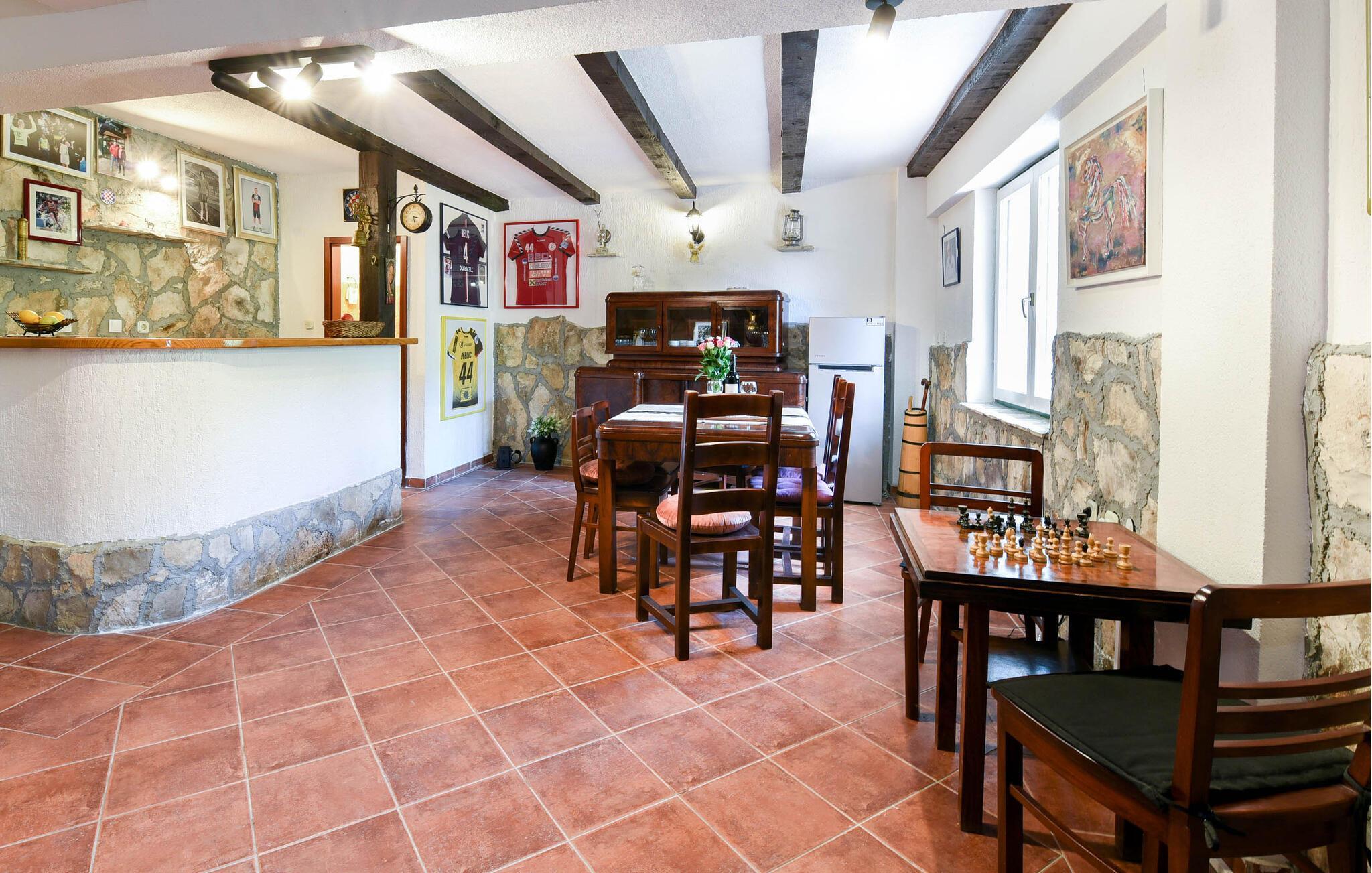 Dette traditionelle sydlandske feriehus er blevet pænt renoveret både indvendig og udvendig. Huset ligger i et roligt område på en bakke 400 meter oppe ved Gornja Podstrana på. Fra terrassen er udsigt til havet, de omliggende øer og flere små kystbyer. Fra huset er der kun 1,5 km til de mange små bugte ved havet. Vi anbefaler jer et besøg på de nærliggende restauranter, hvor I kan smage de lokale specialiteter. I området er der mange cykelruter og vandrestier og ved kysten fantastiske strande og et righoldigt underholdningsudbud.